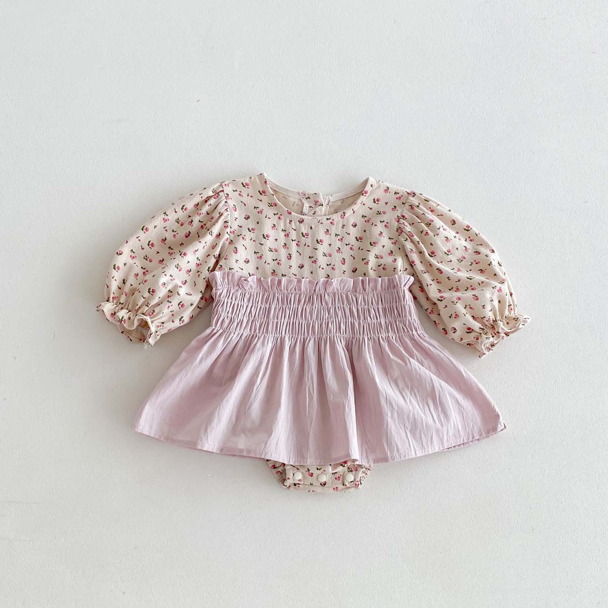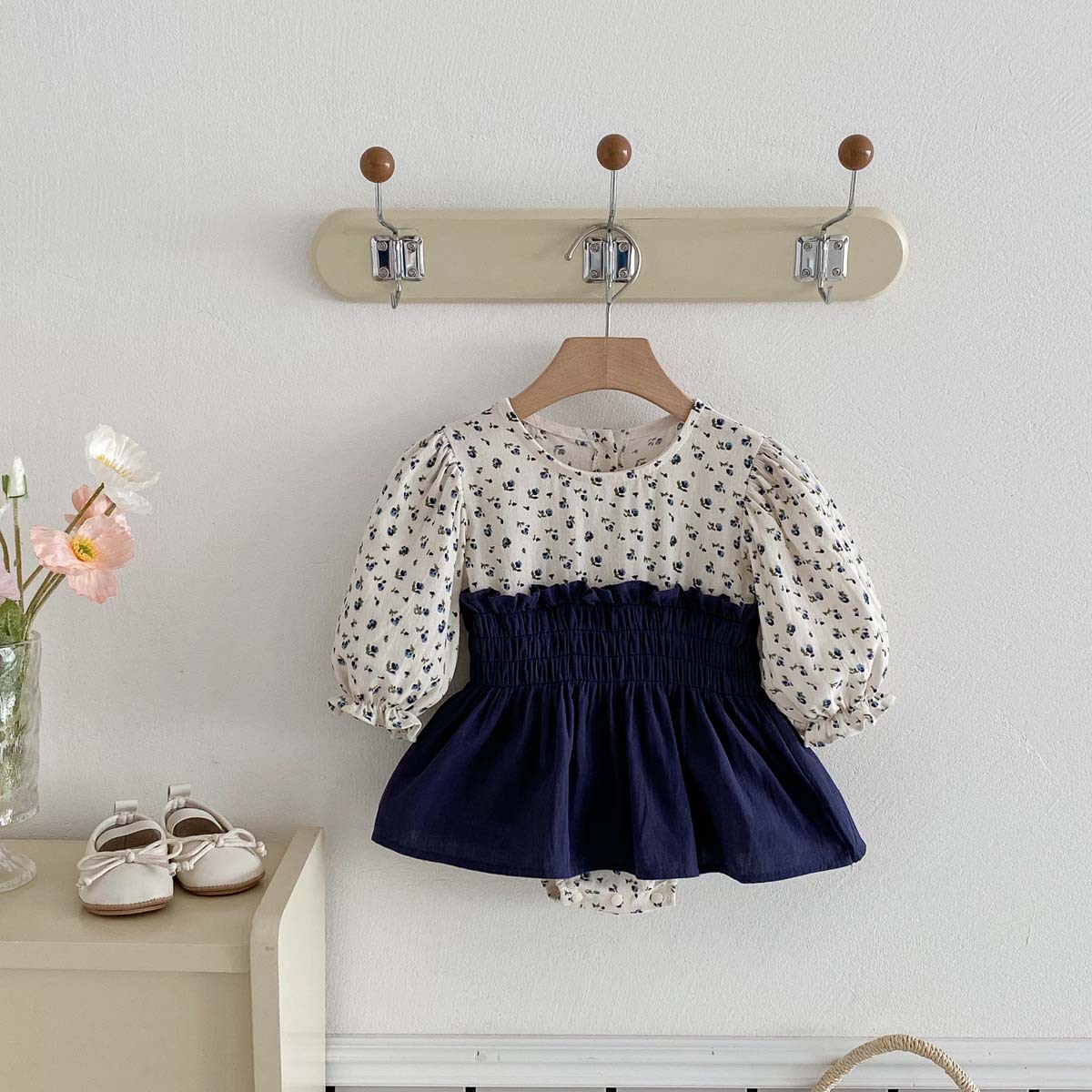여자 가을 새 꽃 긴팔 방귀 포장 하 옷 아기 아기 스타일 라인 원피스 신생아 보름달 옷