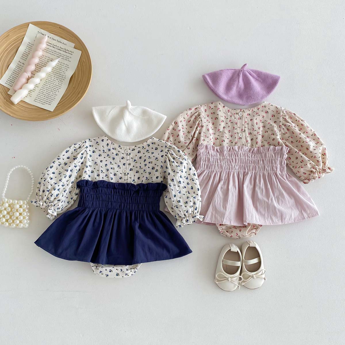 여자 가을 새 꽃 긴팔 방귀 포장 하 옷 아기 아기 스타일 라인 원피스 신생아 보름달 옷스토어 가기