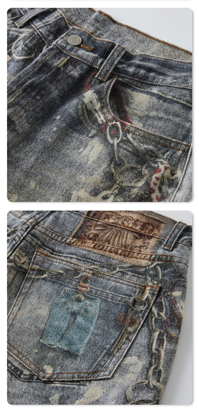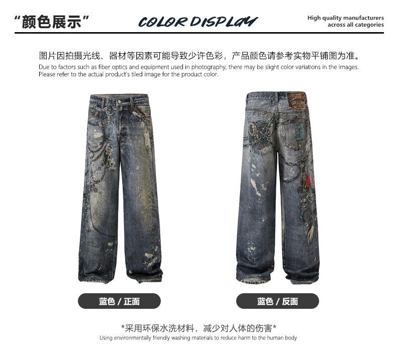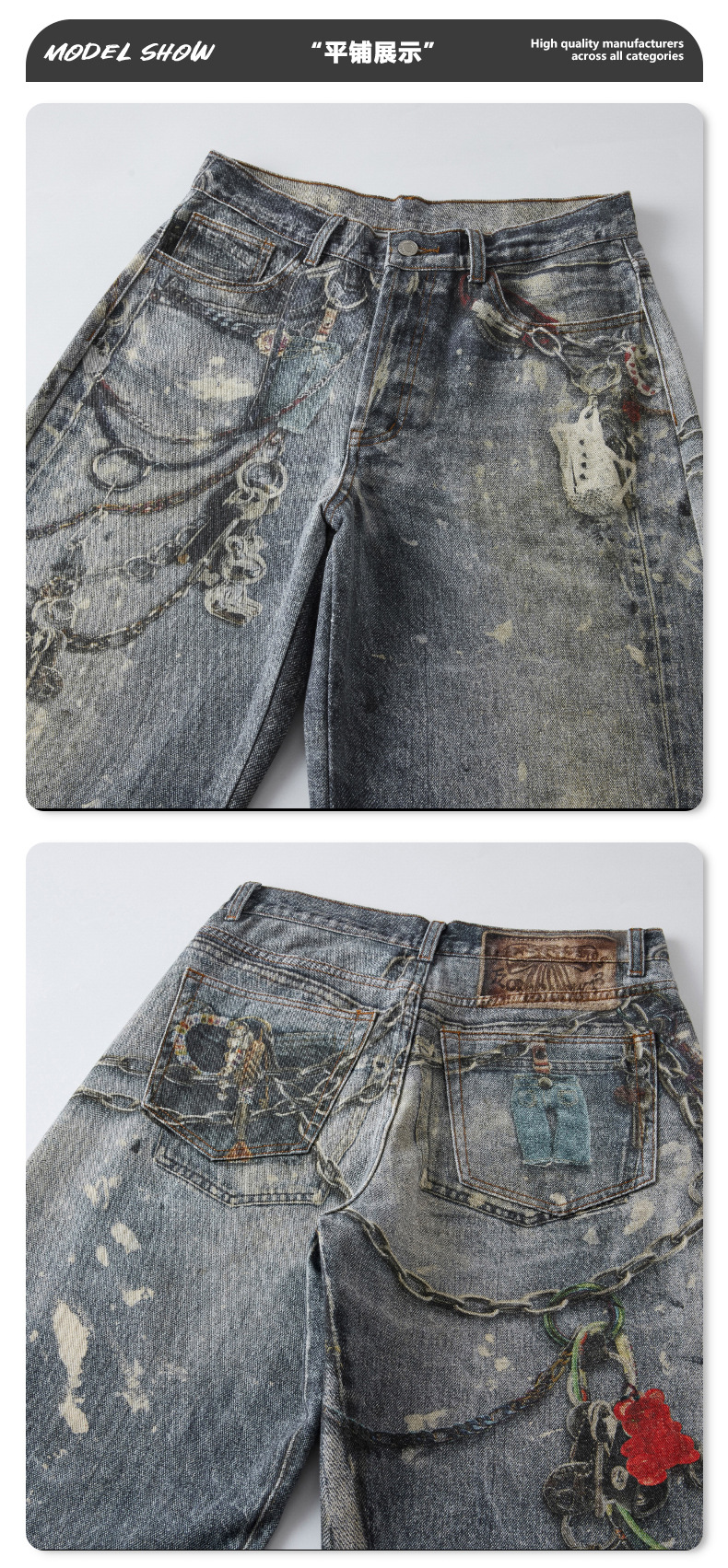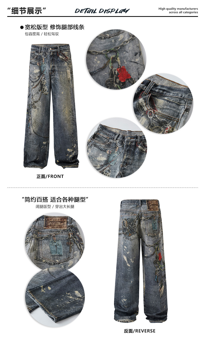JIAMU 가을과 겨울 AC 홈 컷 디지털 인쇄 청바지 남성 헐렁한 느슨한 스트레이트 튜브 성격스토어 가기