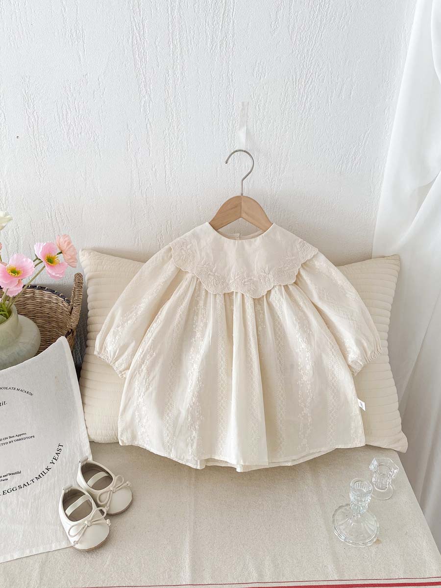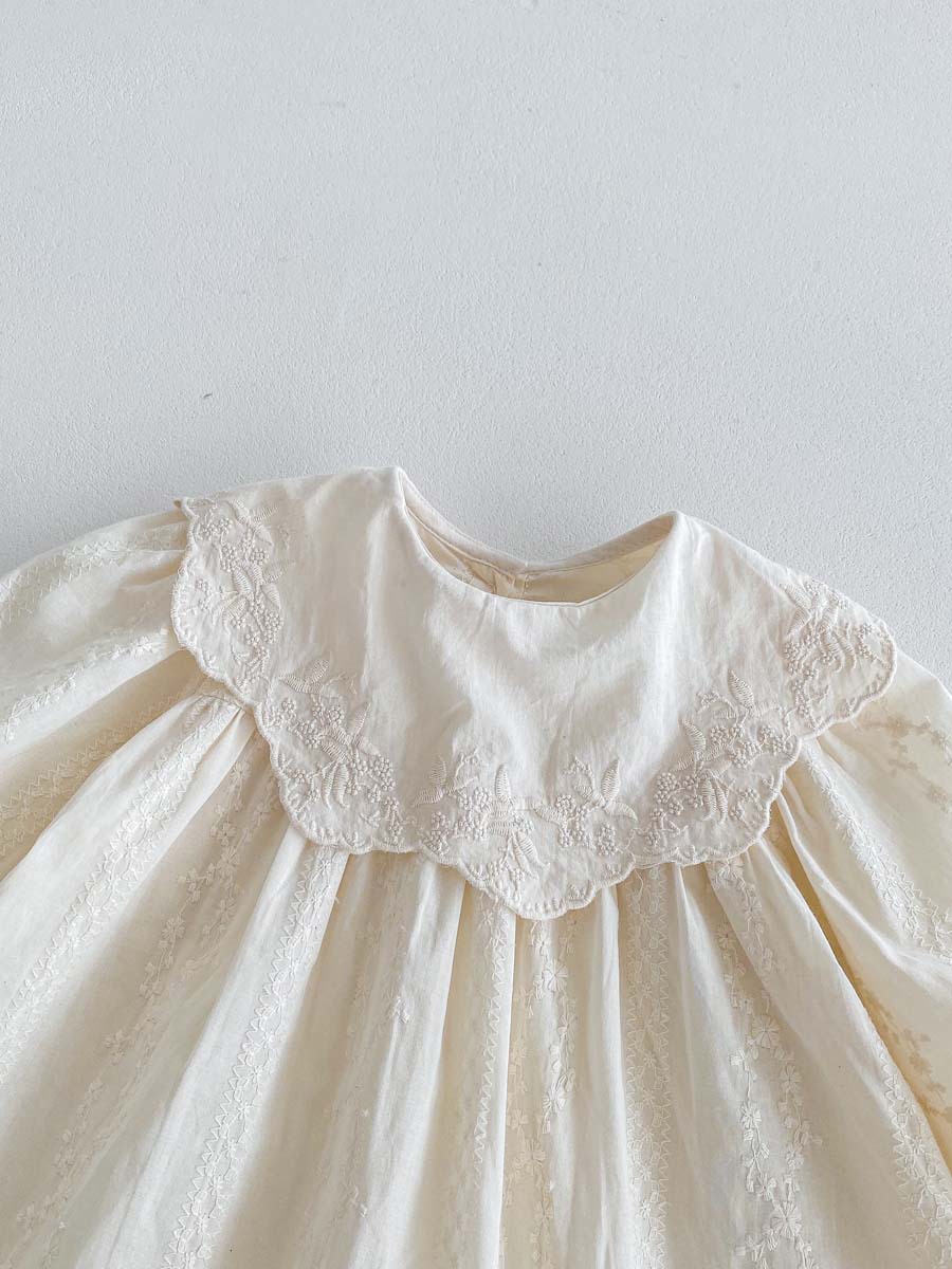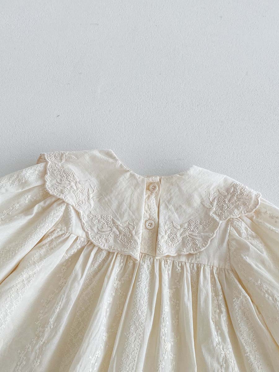 2025 봄 가을 아기옷, 세련된 꽃자수 하렘 스타일 여아용 롱 슬리브 바디수트, 자매 드레스