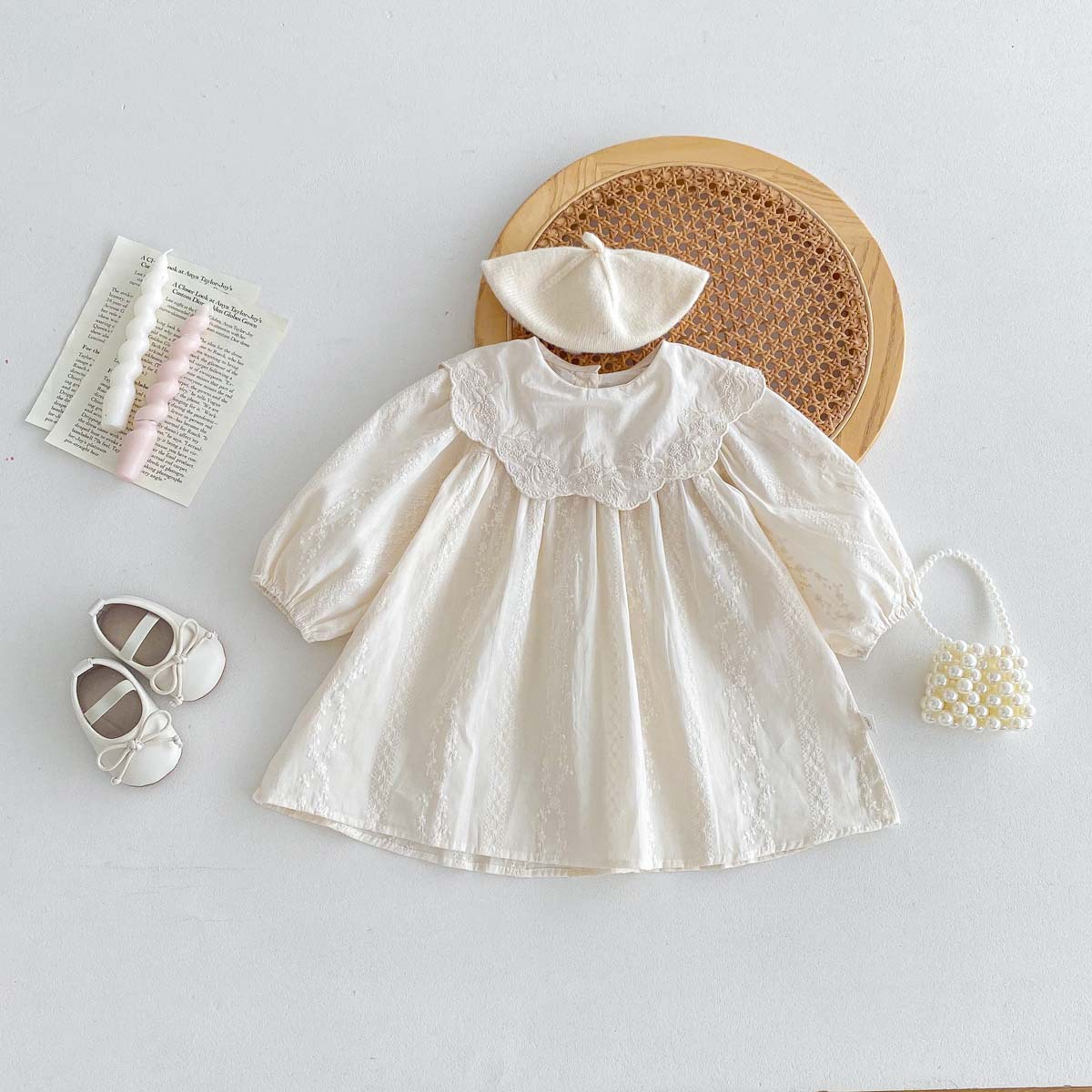 2025 봄 가을 아기옷, 세련된 꽃자수 하렘 스타일 여아용 롱 슬리브 바디수트, 자매 드레스스토어 가기