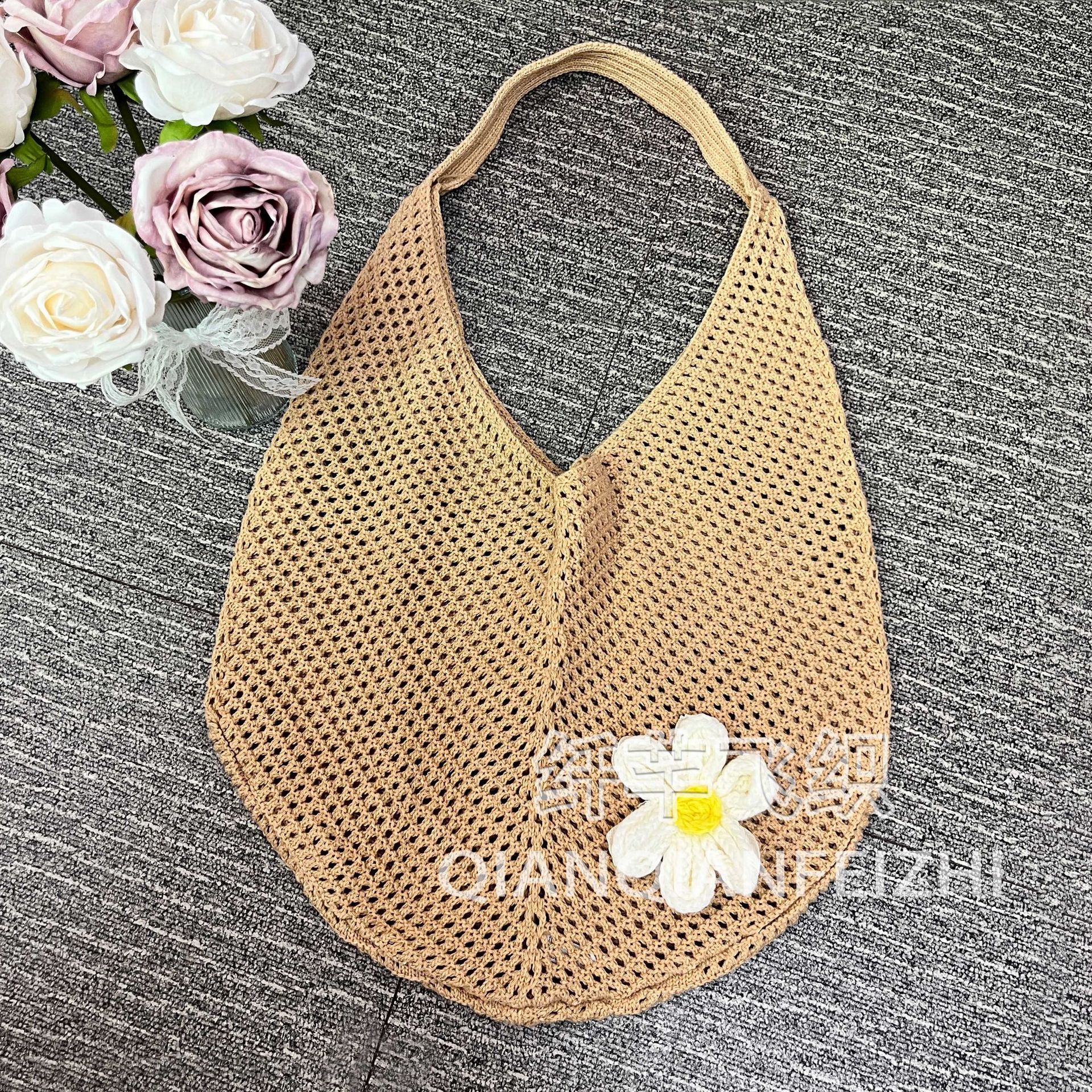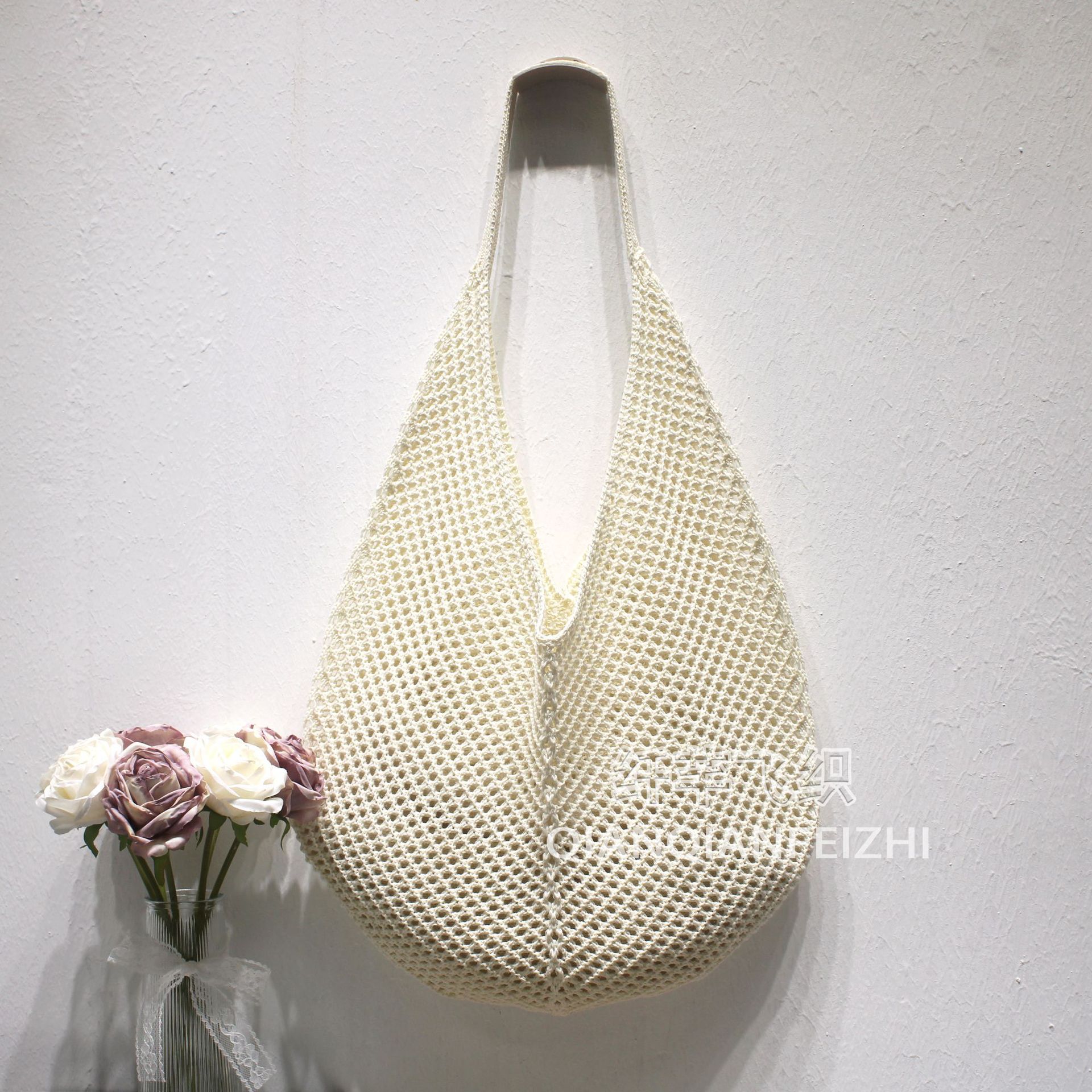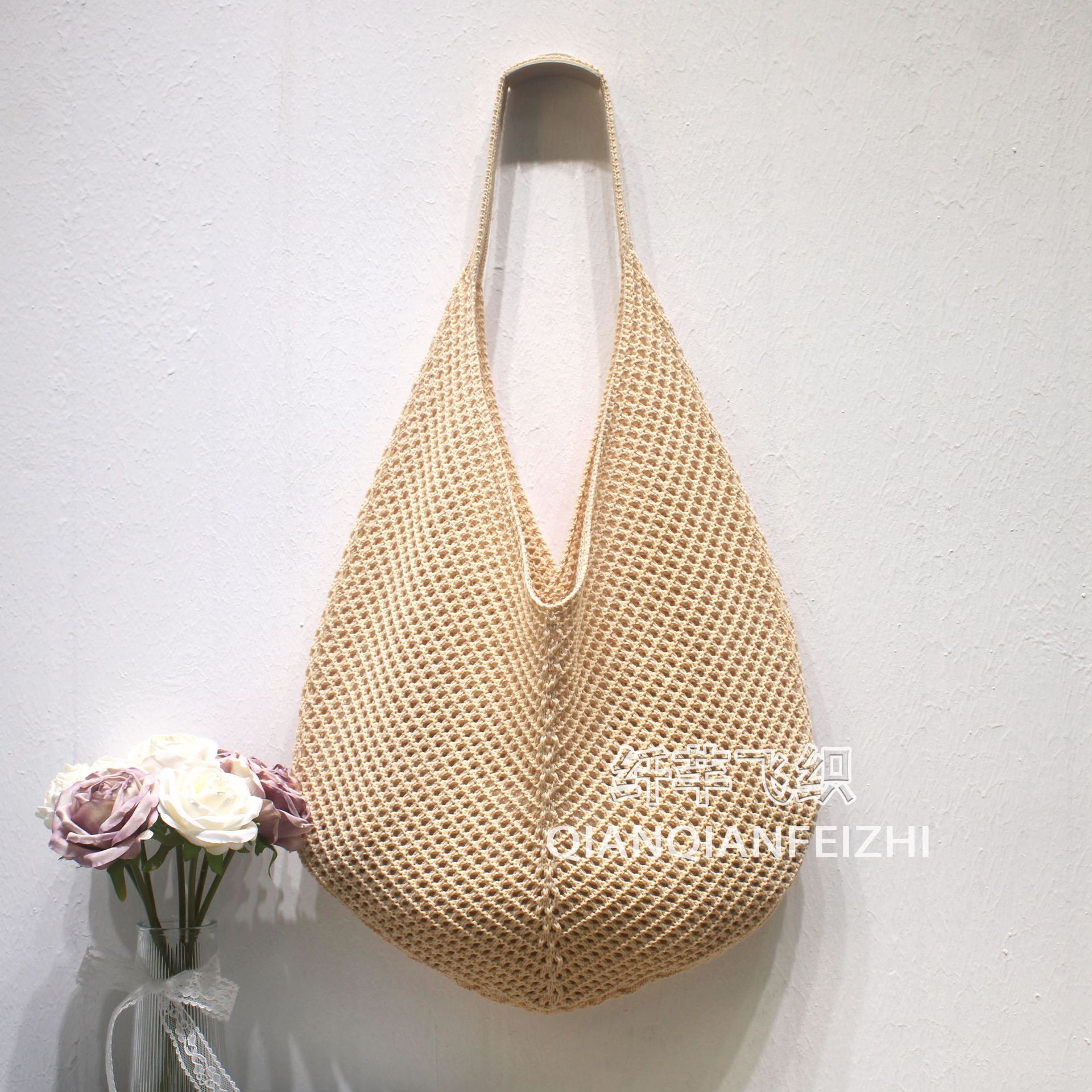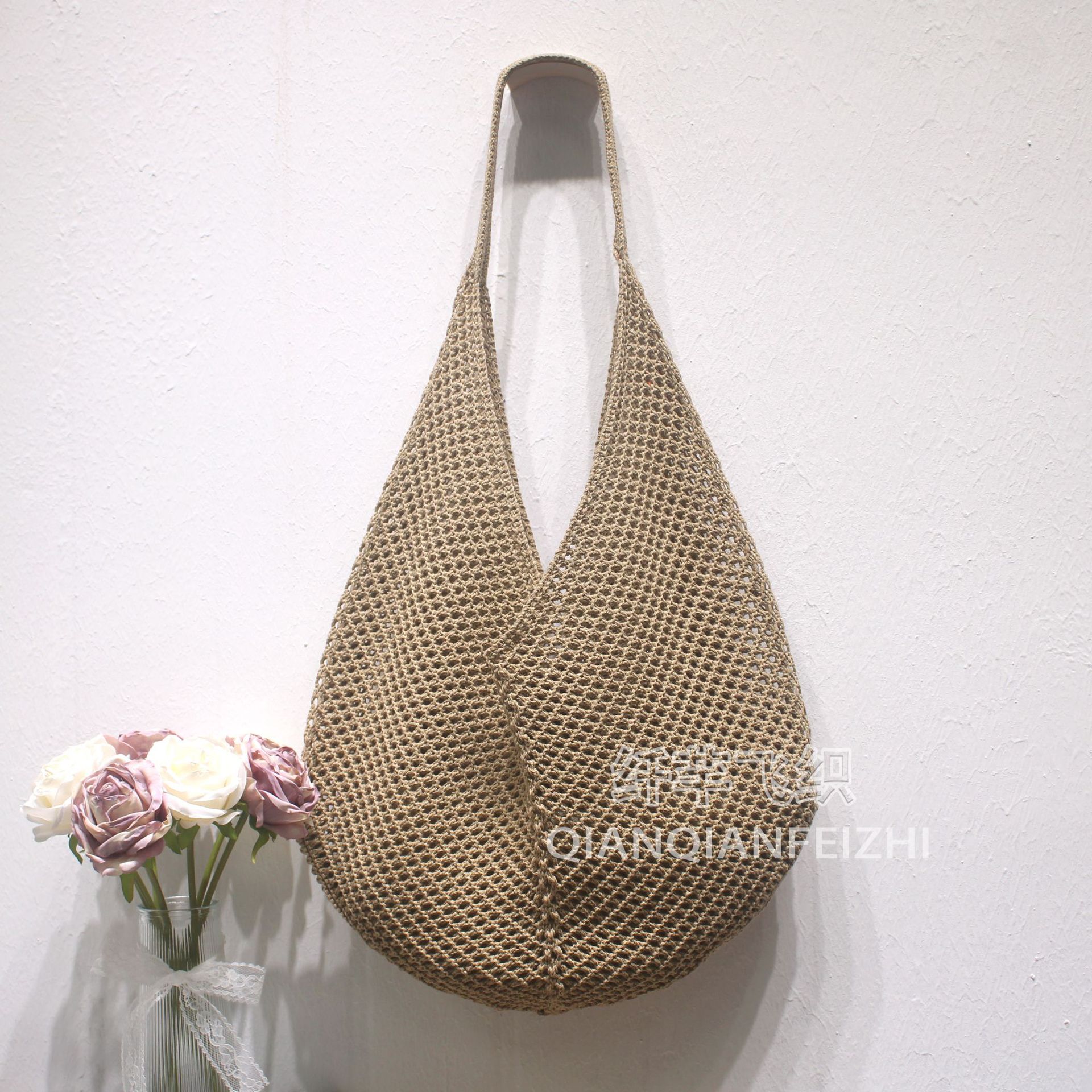 대용량 짠 어깨 속옷 가방 토트 백 여성 새 여름 해변 태국 싼야 휴가 니트 백스토어 가기