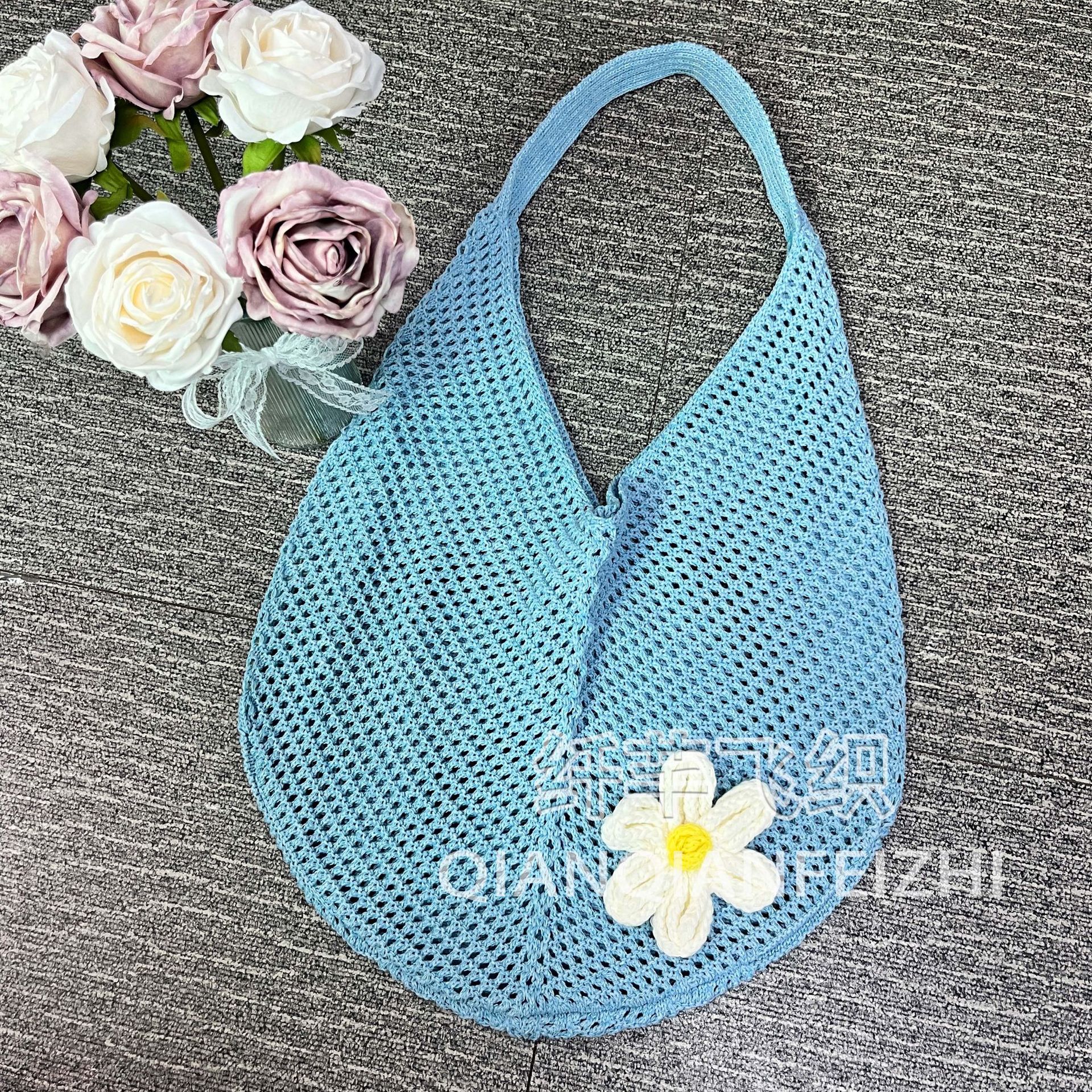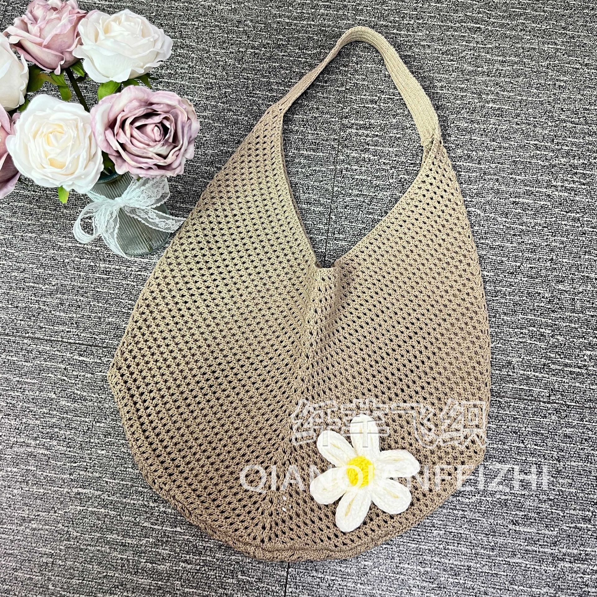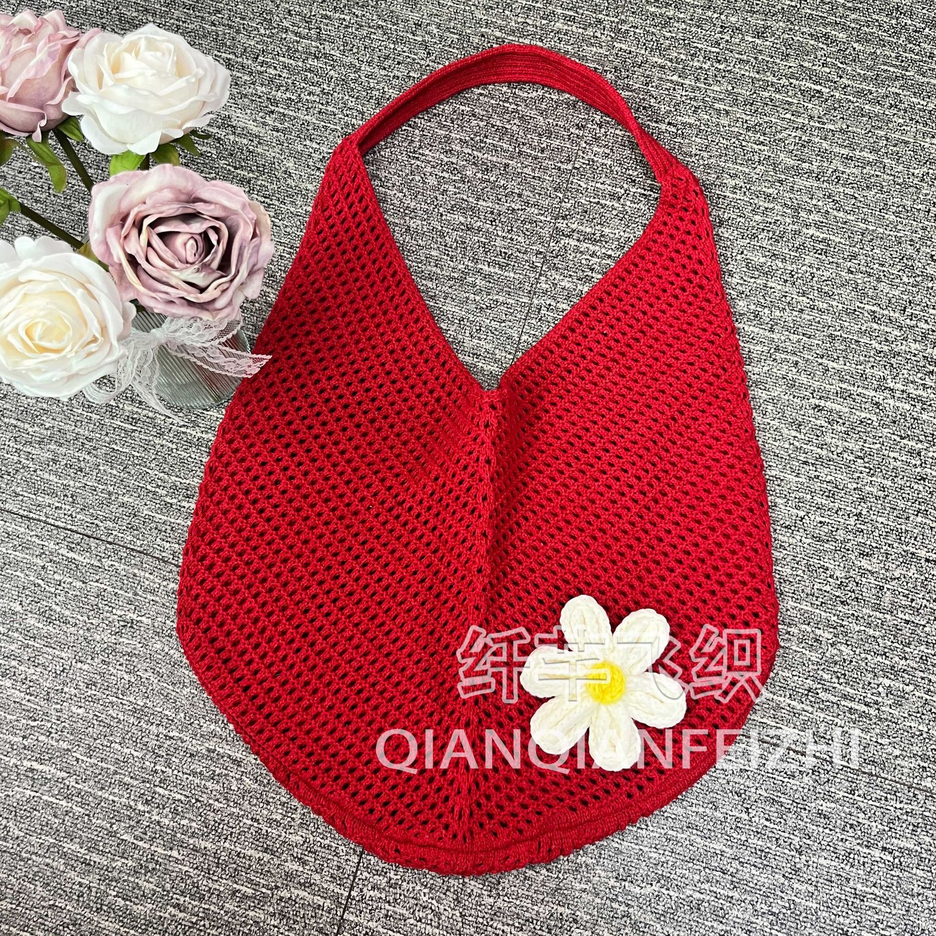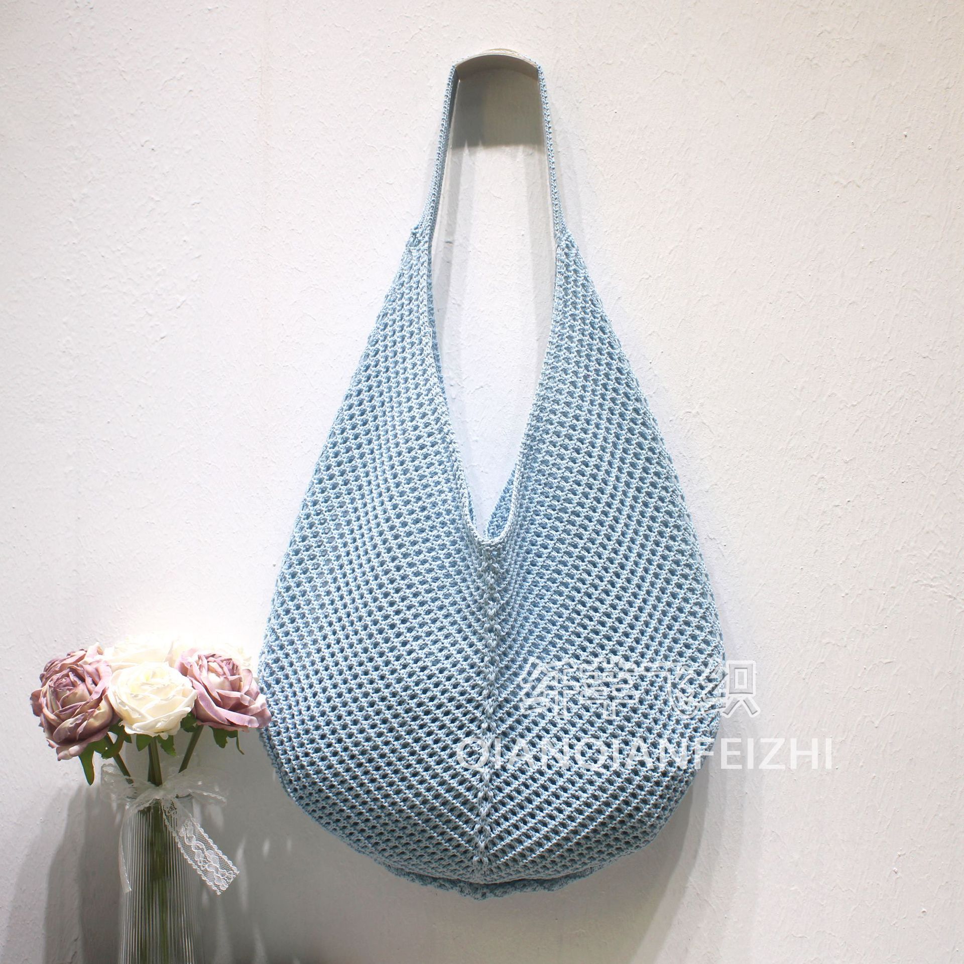 대용량 짠 어깨 속옷 가방 토트 백 여성 새 여름 해변 태국 싼야 휴가 니트 백스토어 가기