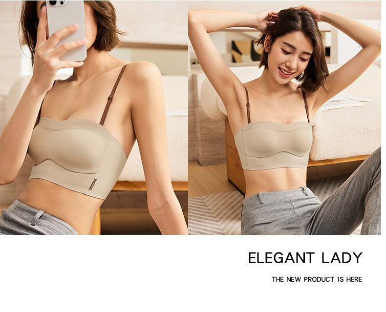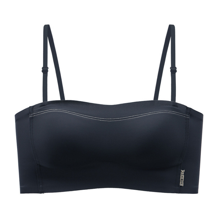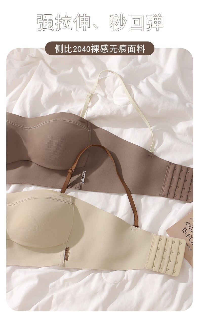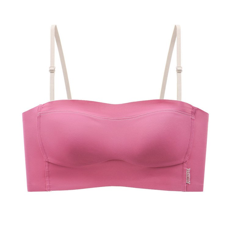 6060纯色简约风撞色抹胸一体式内衣轻薄显小防走光裹胸隐形文胸罩