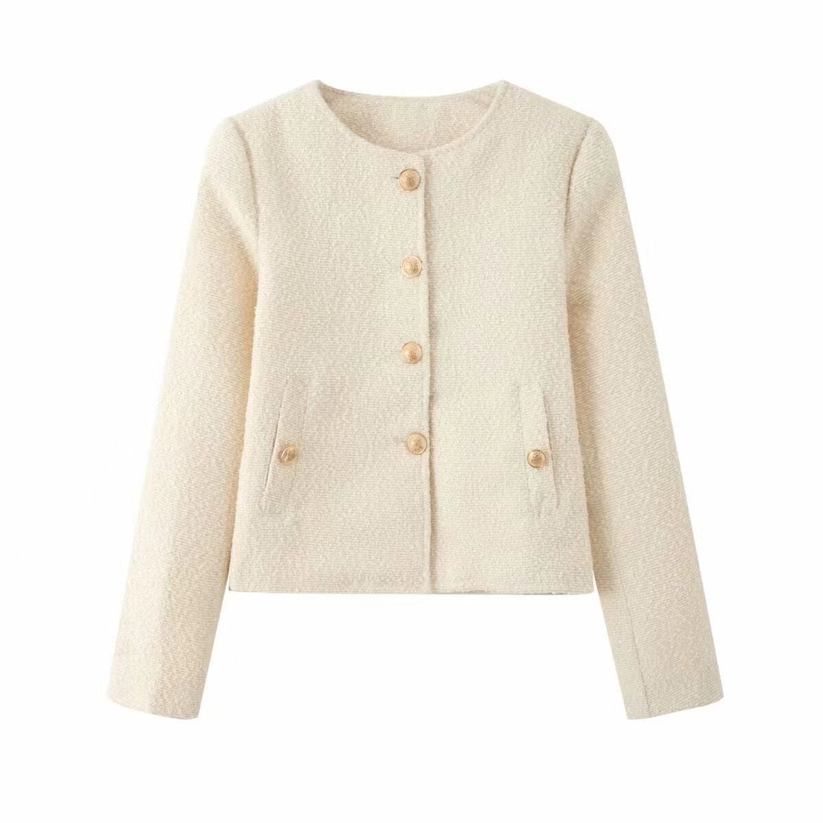 2024 가을과 겨울 새로운 여성 의류 질감 가을 다용도 라운드 넥 짧은 재킷 코트