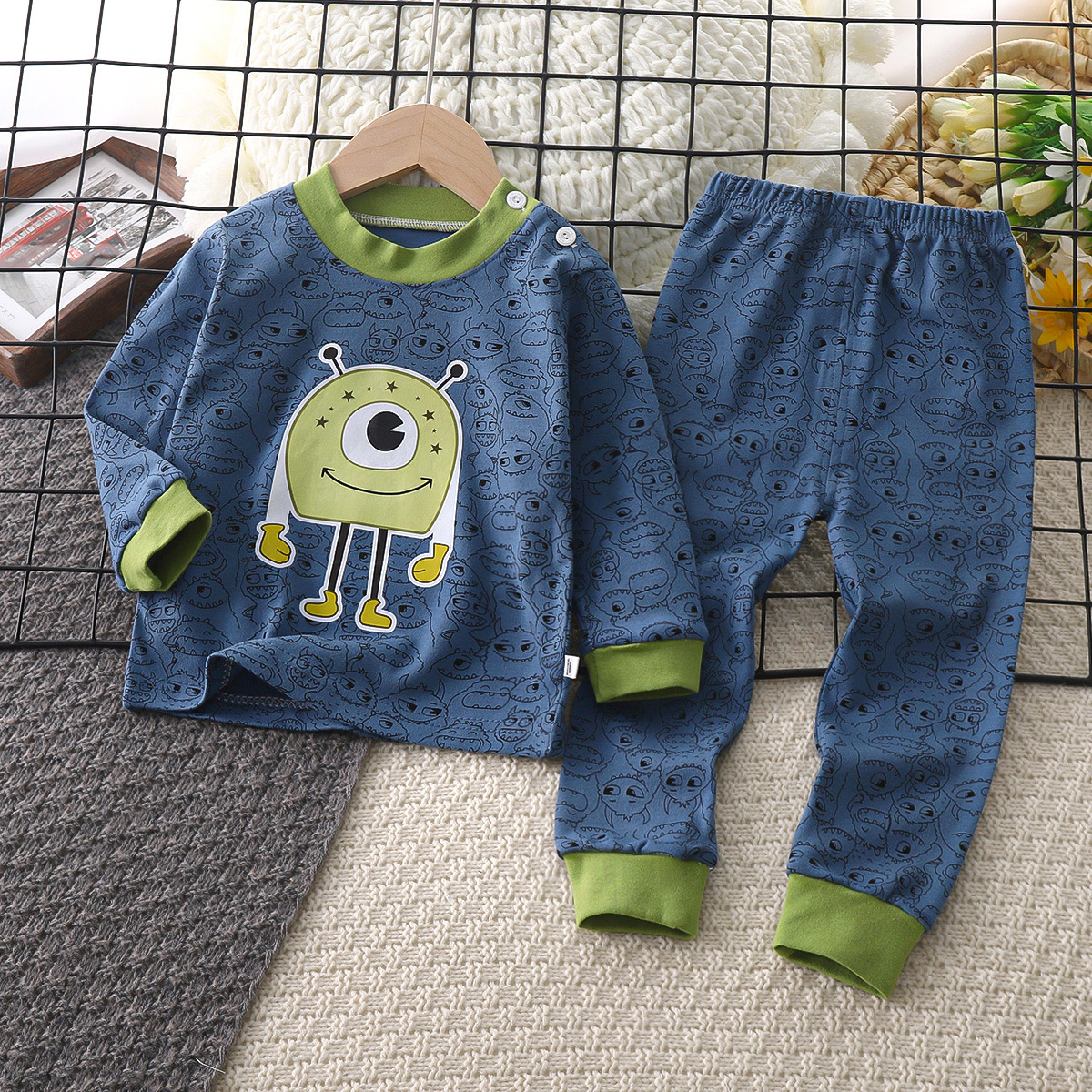 어린이 속옷 세트 순면 남아 가을 잠옷 여아 가을옷 가을바지 홈웨어 아동복 도매 만화스토어 가기