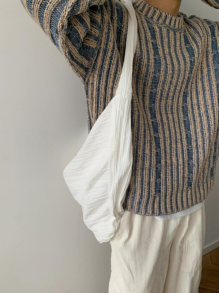 클렌핏 보이즈 하이 엔드 스웨터 가을과 겨울 한국 스타일 레트로 콘트라스트 컬러 라운드 넥 캐주얼 니트 스웨터스토어 가기