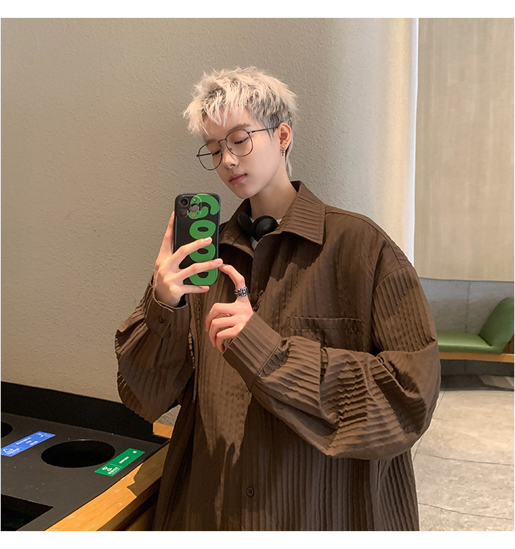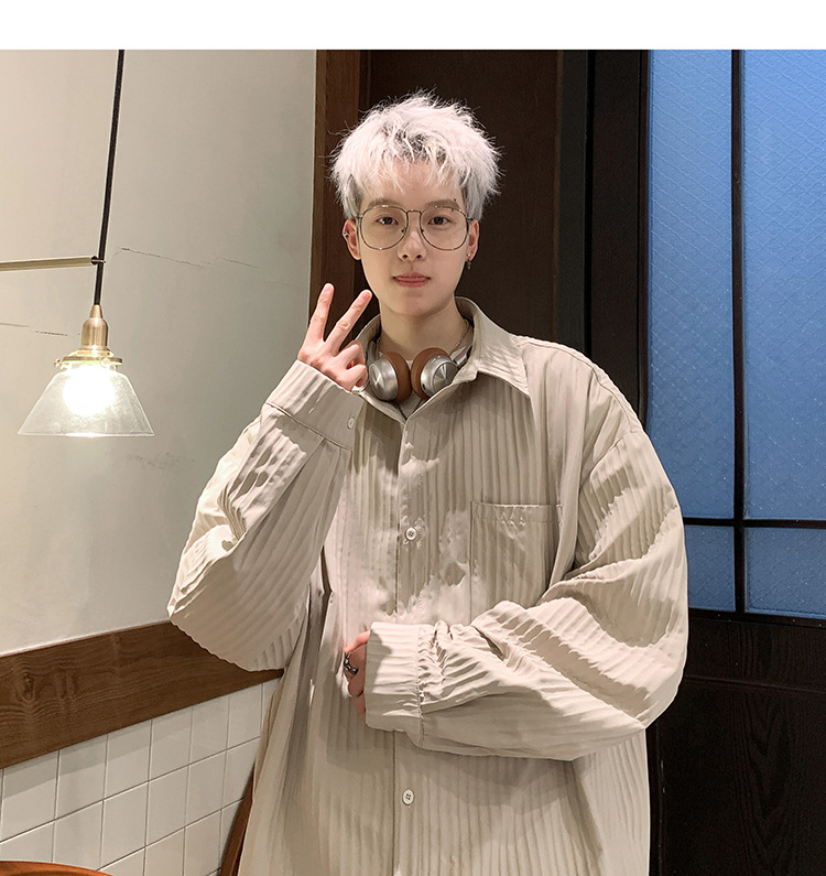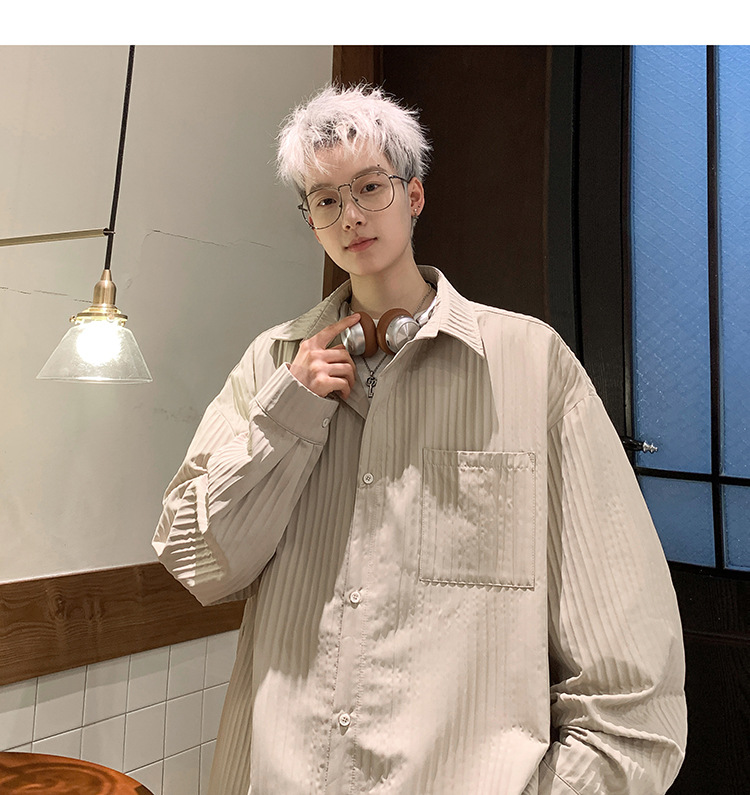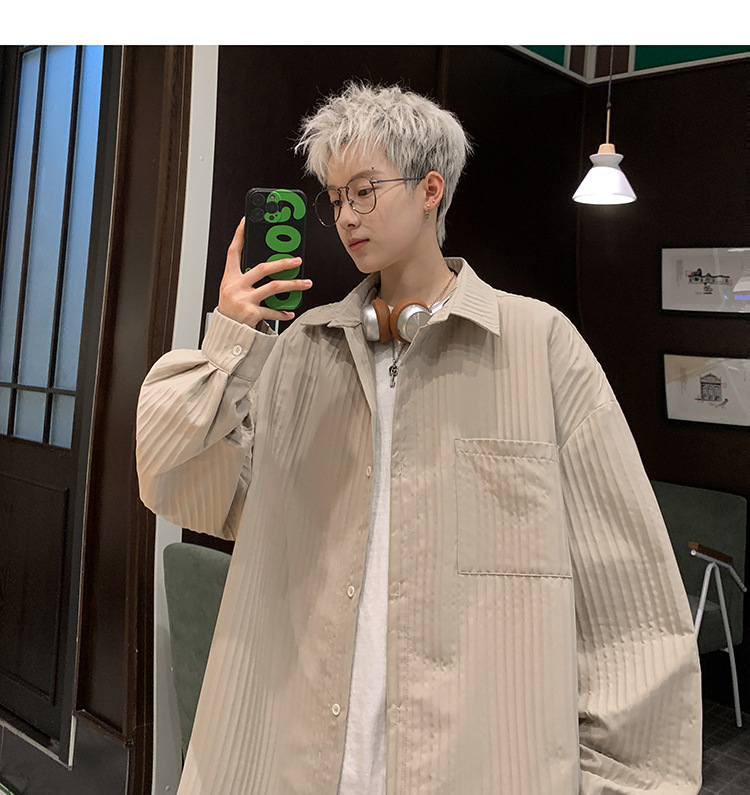 수직 스트라이프 봄 셔츠 남자의 긴팔 2024 새로운 빈티지 캐주얼 레트로 트렌디 브랜드 루즈 셔츠 재킷