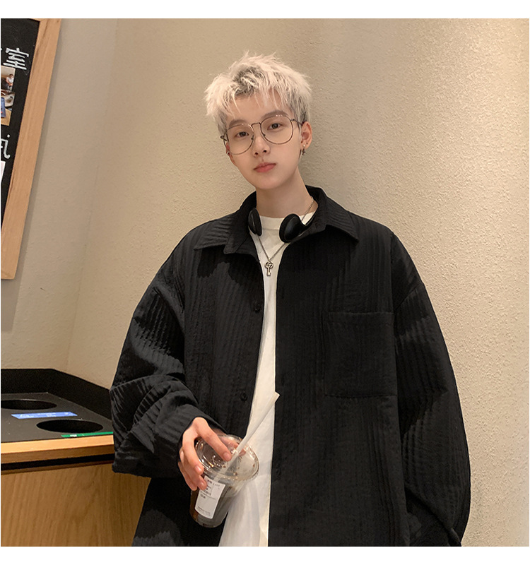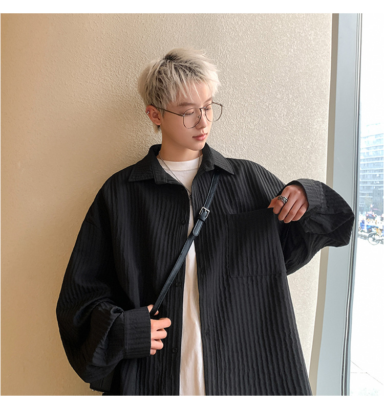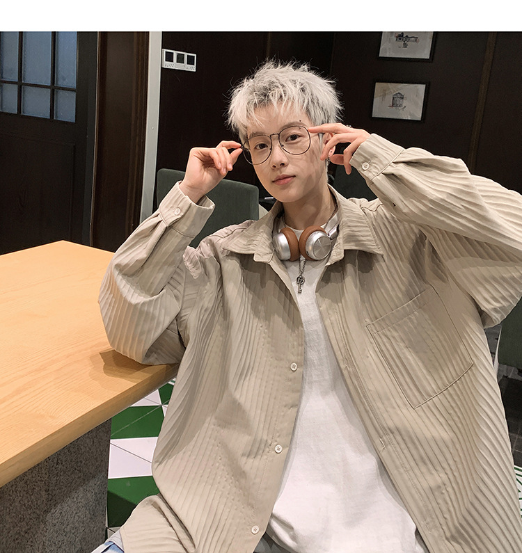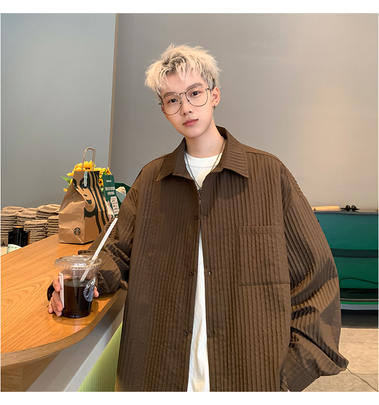 수직 스트라이프 봄 셔츠 남자의 긴팔 2024 새로운 빈티지 캐주얼 레트로 트렌디 브랜드 루즈 셔츠 재킷스토어 가기