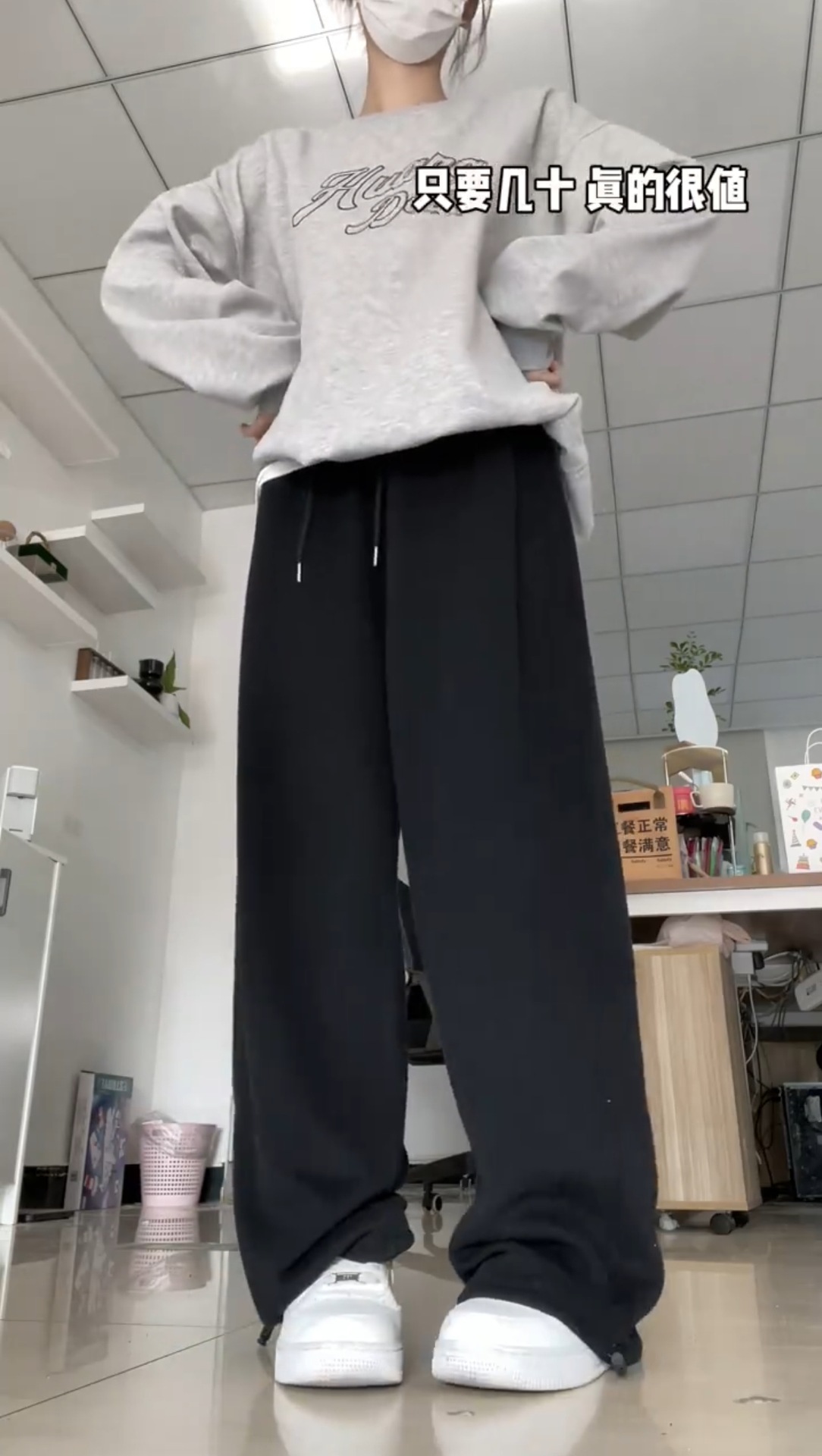 화이트 그레이 미국 스포츠 바지 여자 2024 가을 새로운 하이 스트리트 느슨한 넓은 다리 바지 캐주얼 발 발가락 운동복 바지스토어 가기