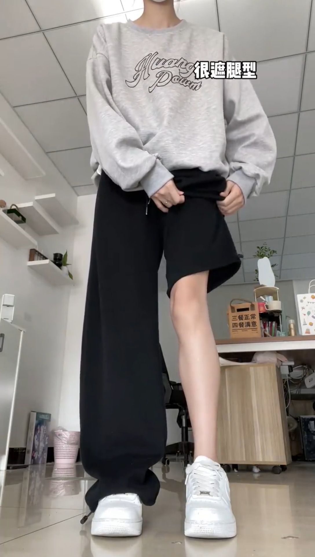 화이트 그레이 미국 스포츠 바지 여자 2024 가을 새로운 하이 스트리트 느슨한 넓은 다리 바지 캐주얼 발 발가락 운동복 바지