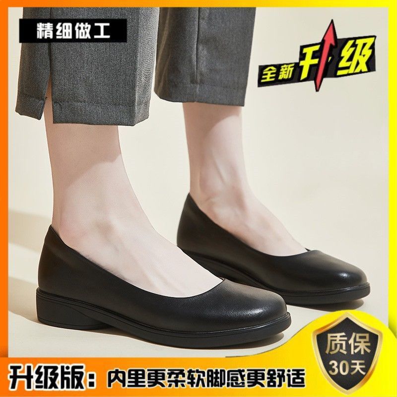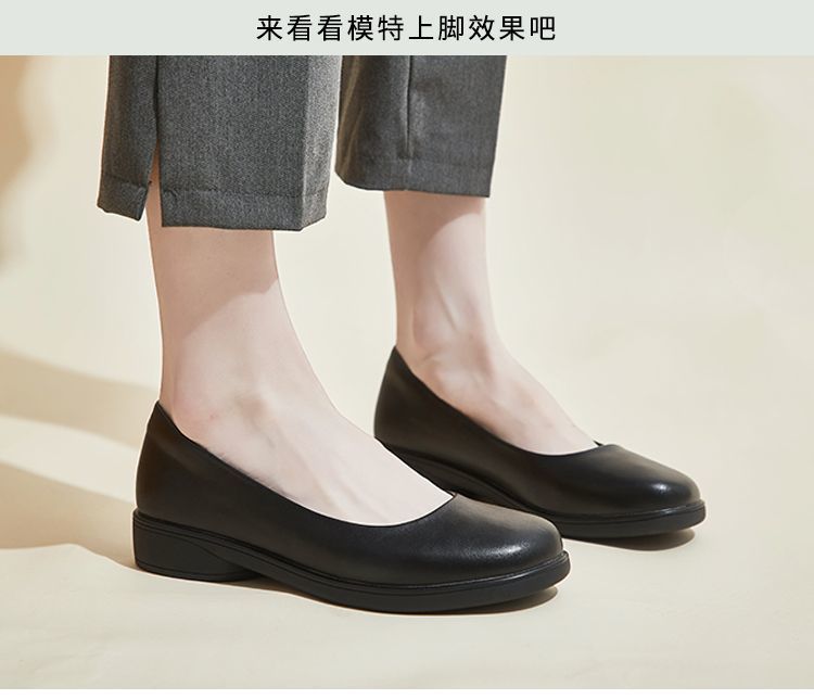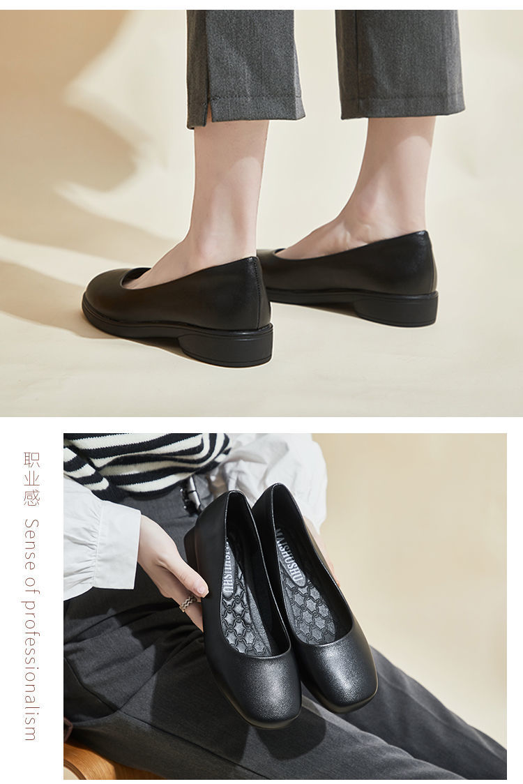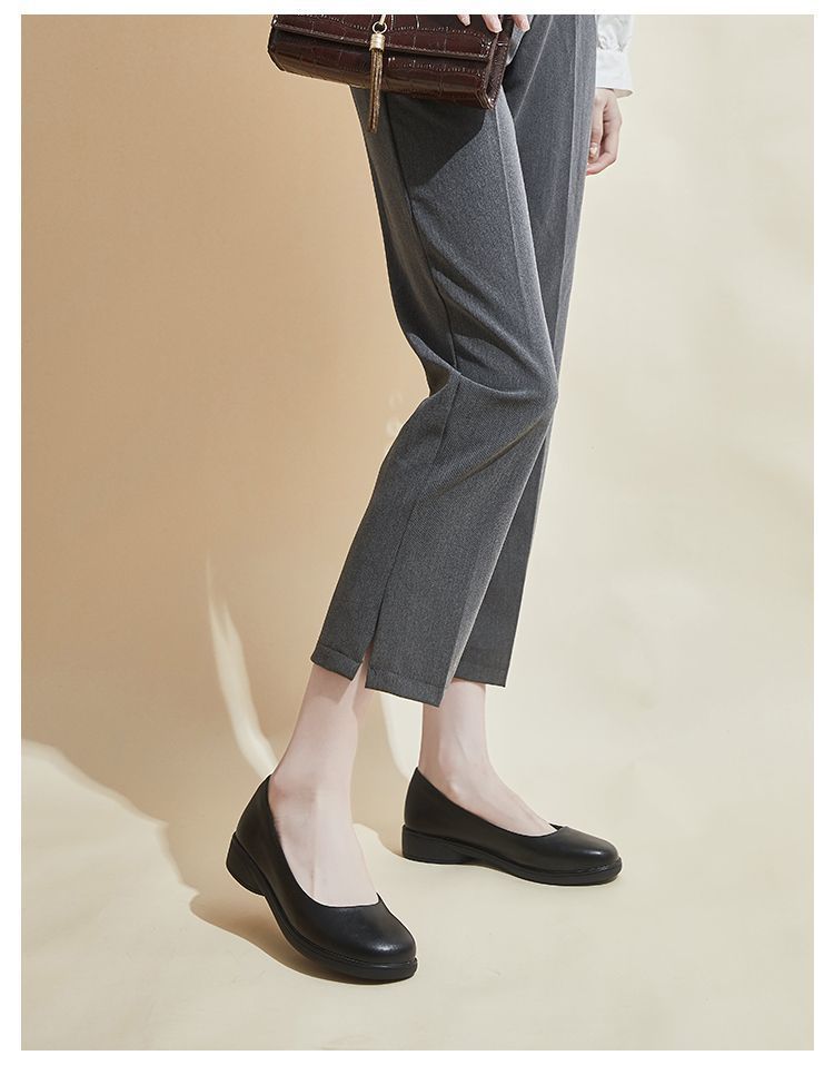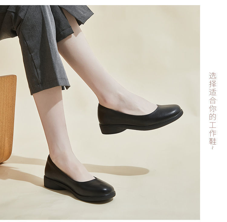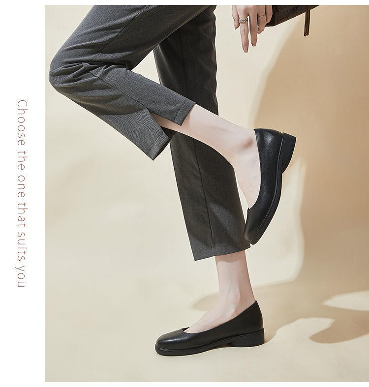 화이트 라운드 헤드 로우 힐 cm 두꺼운 여성 얕은 입 가죽 신발 플랫 블랙 여성 싱글 신발 소프트 하단 편안한 작업스토어 가기