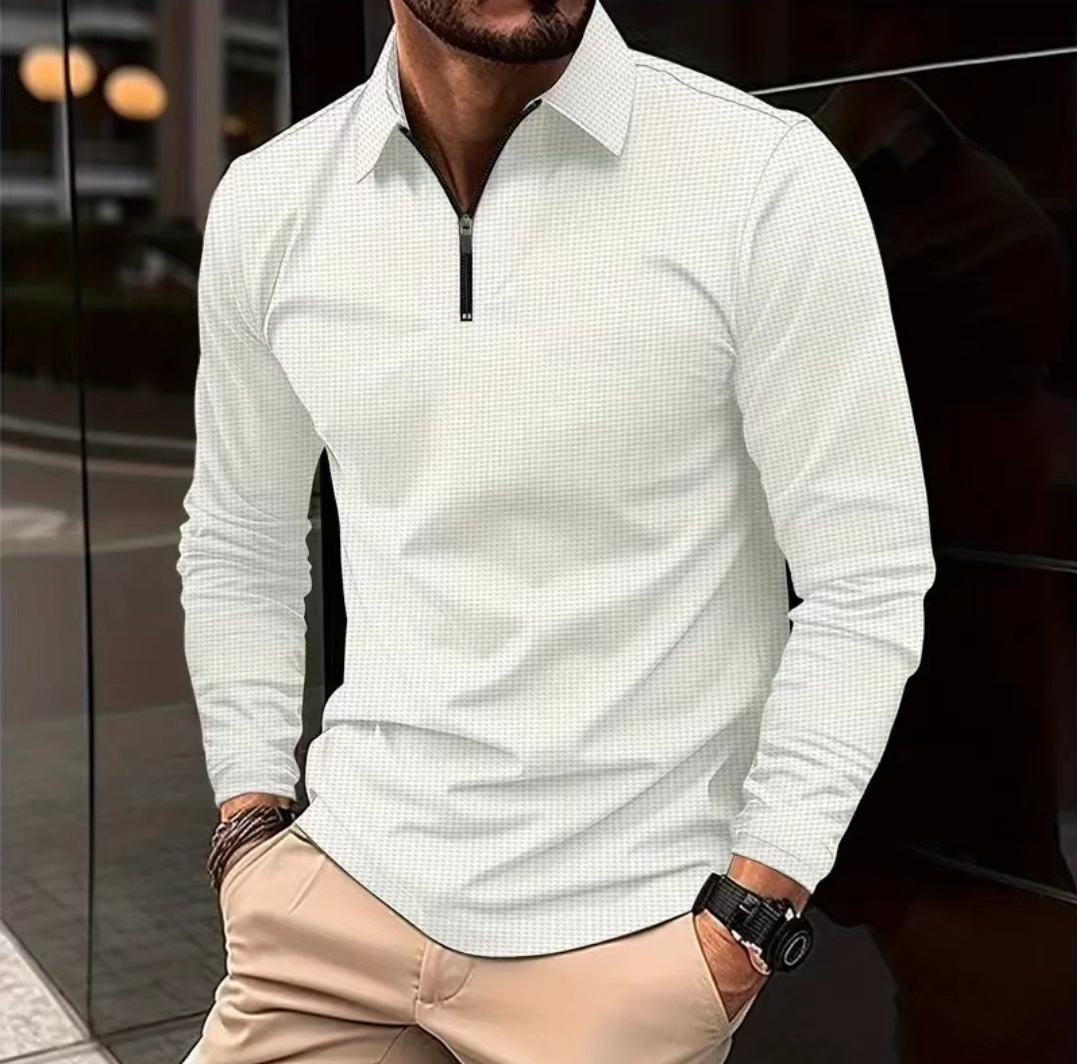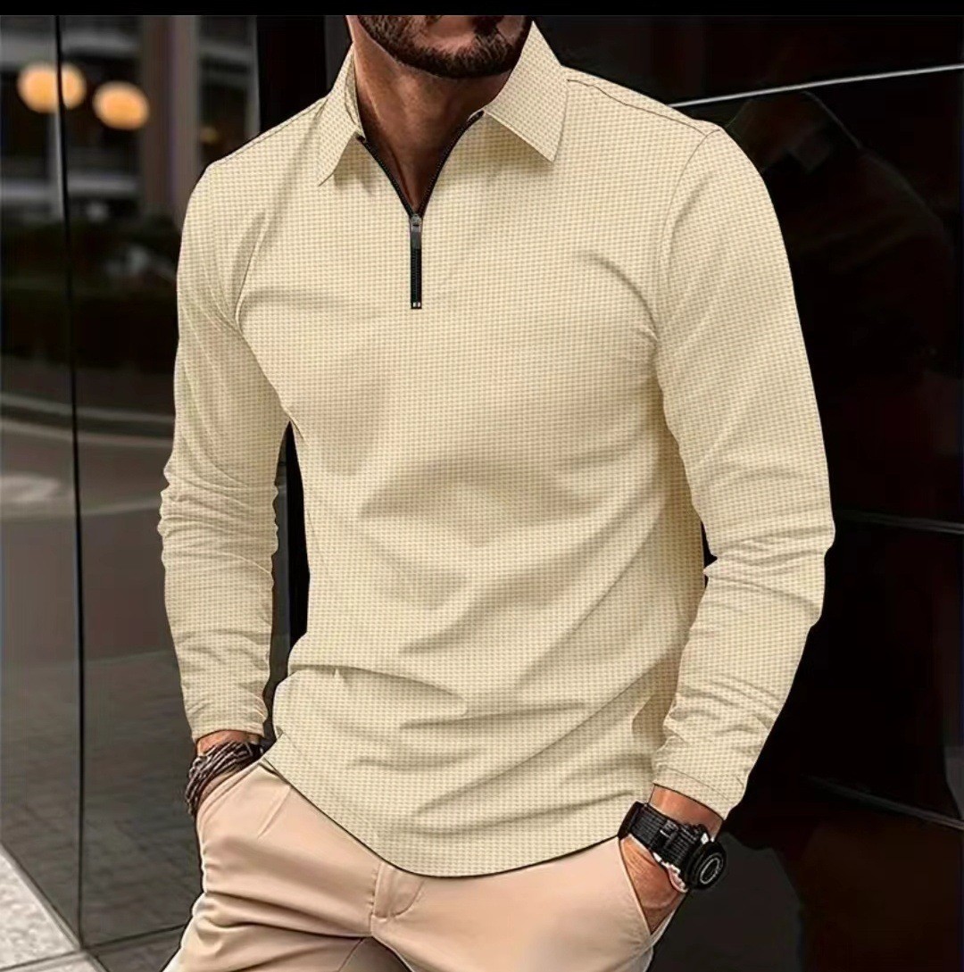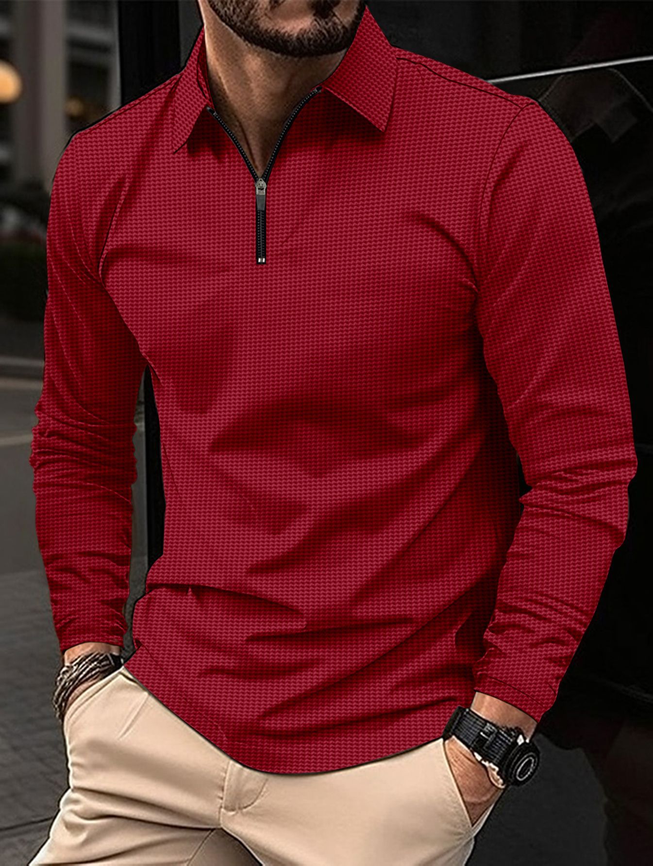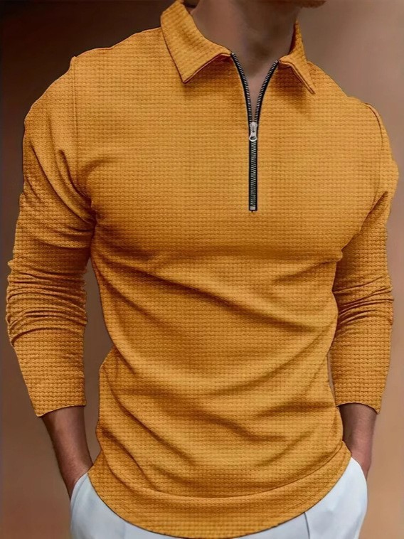 긴 소매 와플 편안한 폴로 셔츠 유럽과 미국 남자 플러스 사이즈 여름 남자의 얇은 단색 긴 소매스토어 가기