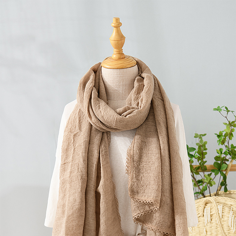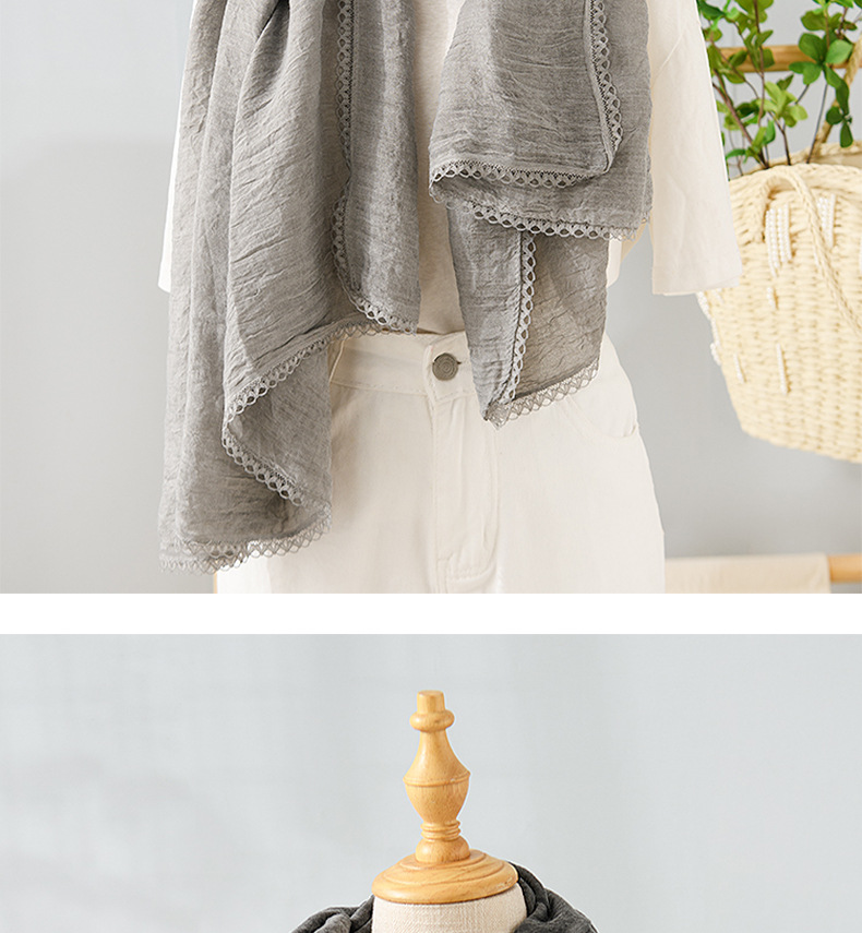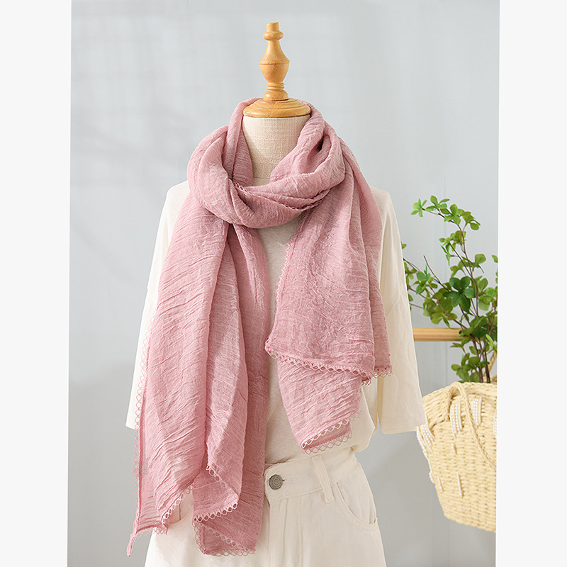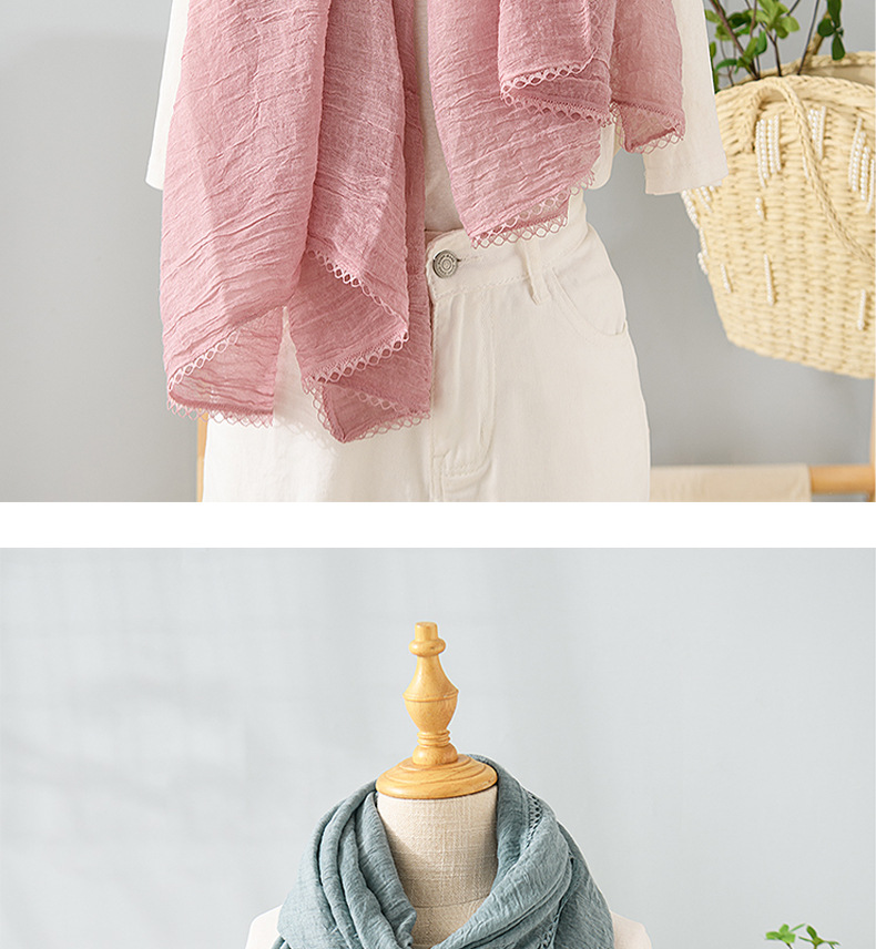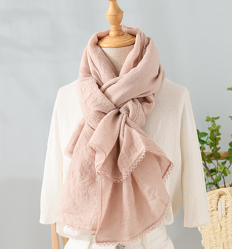 여성의 봄과 가을 스카프 하이 엔드 스타일 새로운 솔리드 컬러 스카프 레이스 스카프 여름 얇은 목도리