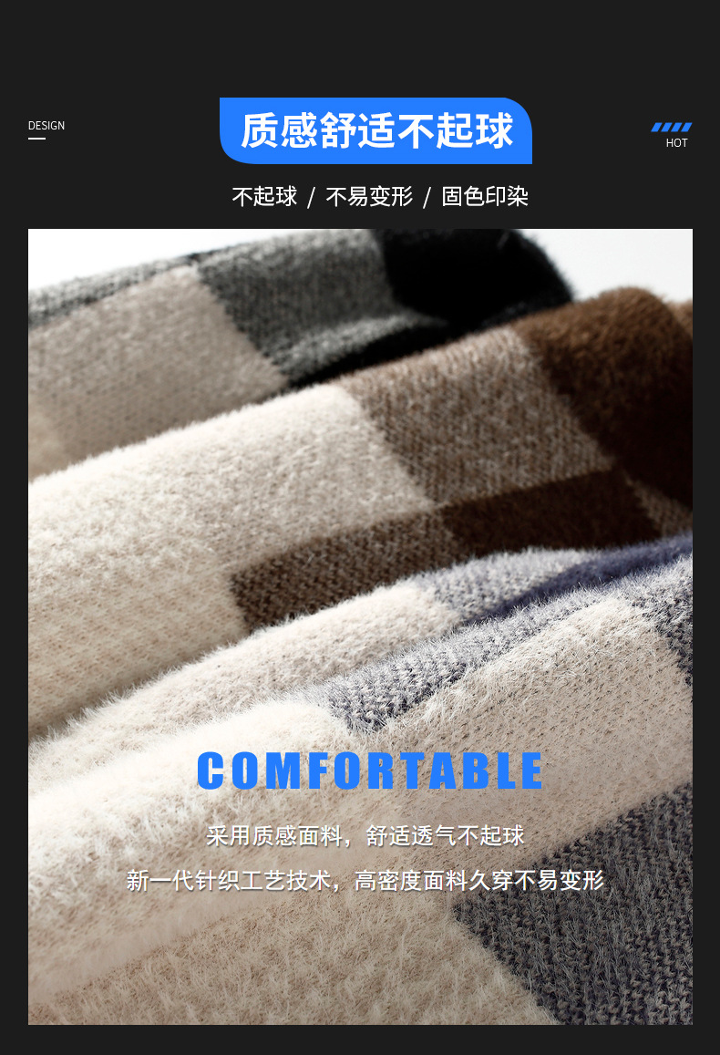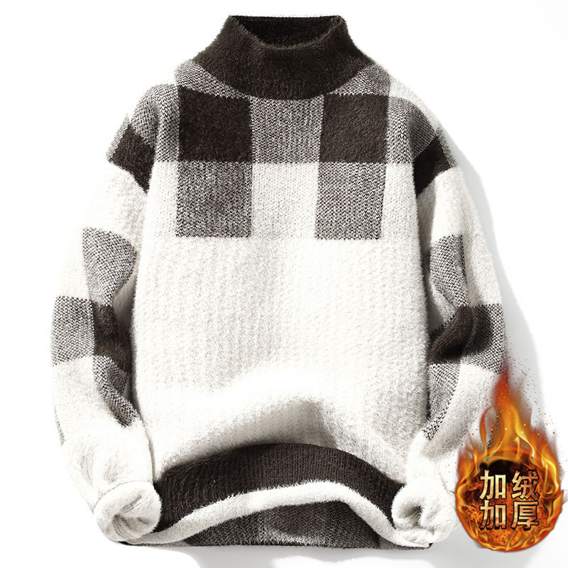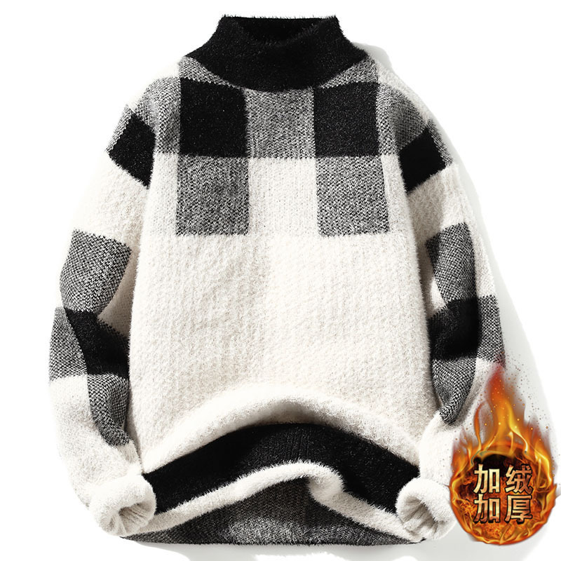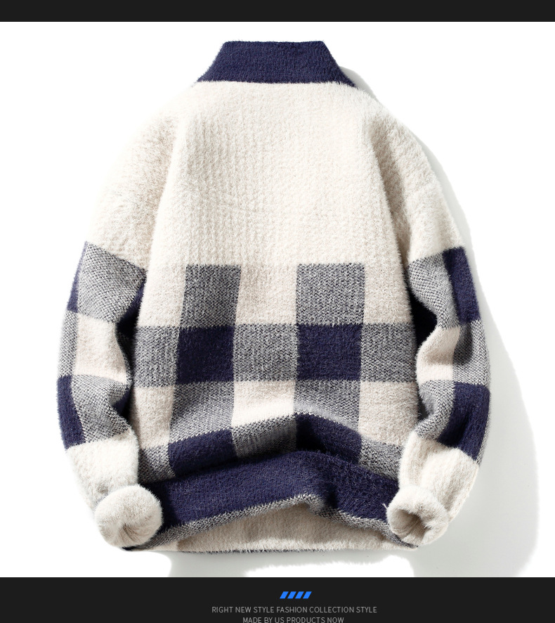 가을과 겨울 새로운 격자 무늬 캐주얼 트렌디 남성용 터틀넥 스웨터 모방 밍크 벨벳 니트 스웨터 따뜻한 학생베이스스토어 가기