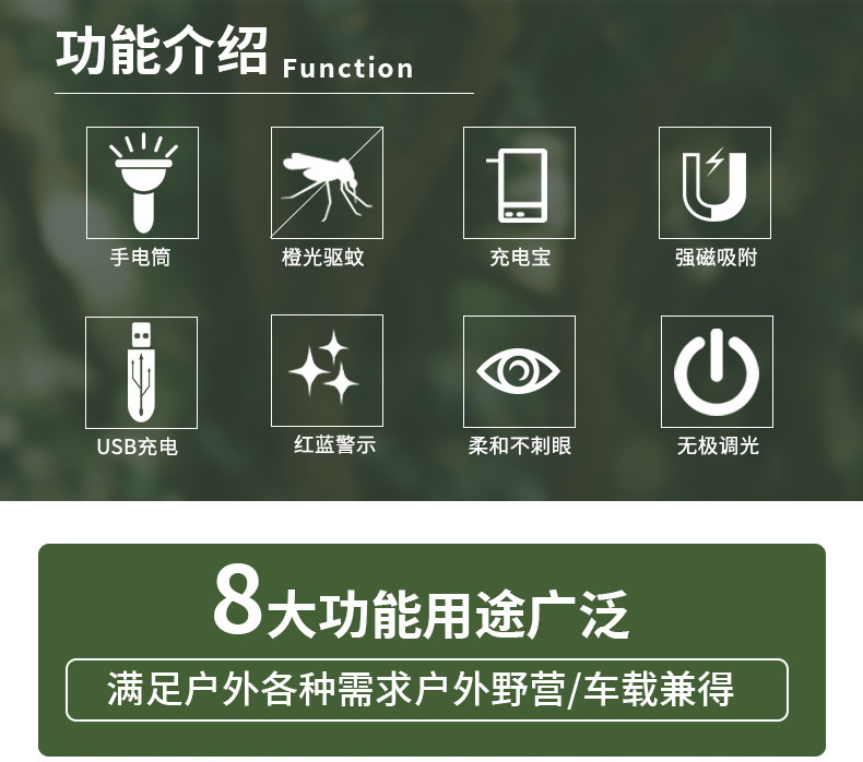 새로운 충전식 야외 방수 캠핑 램프 조명 캠프 텐트 슈퍼 긴 내구성 캠핑 램프 모기 방충제 램프 교수형스토어 가기
