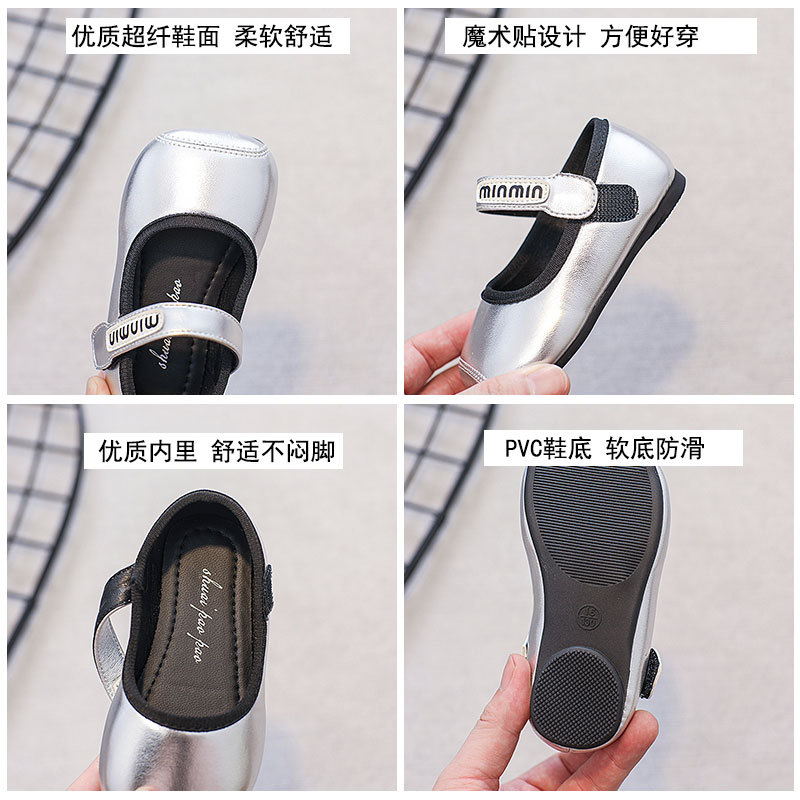 소녀의 작은 가죽 신발 유행 올매치 어린이 한국 스타일 싱글 레이어 신발 편안한 유행 소녀 광장 발가락 벨크로 공주 신발스토어 가기