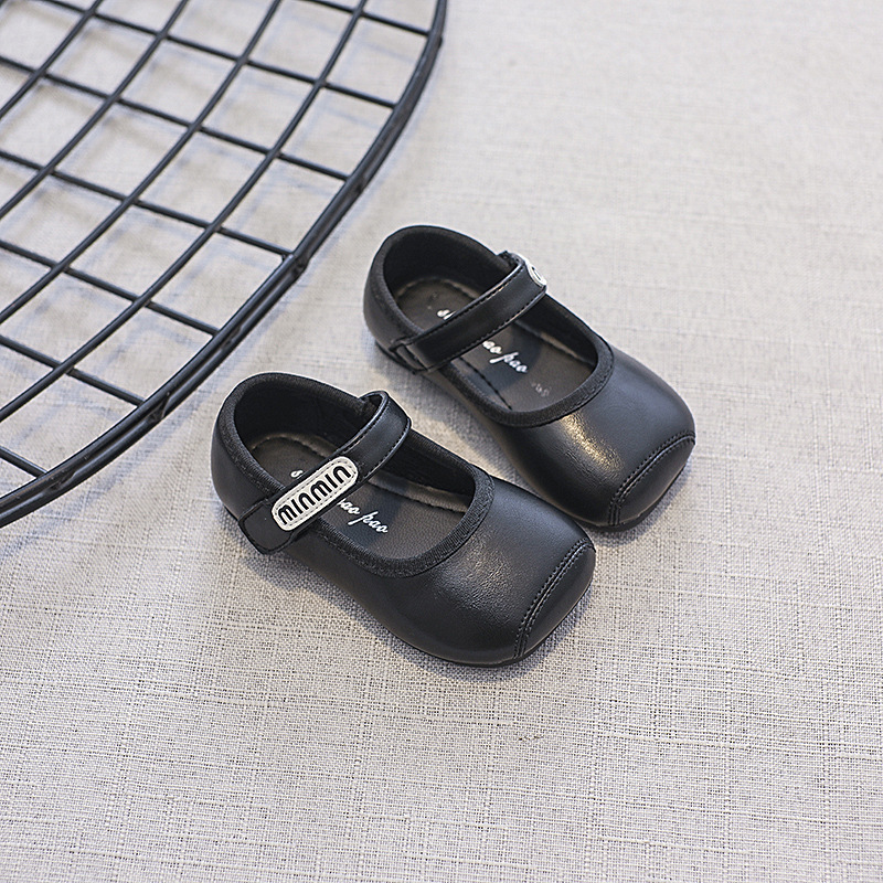 소녀의 작은 가죽 신발 유행 올매치 어린이 한국 스타일 싱글 레이어 신발 편안한 유행 소녀 광장 발가락 벨크로 공주 신발