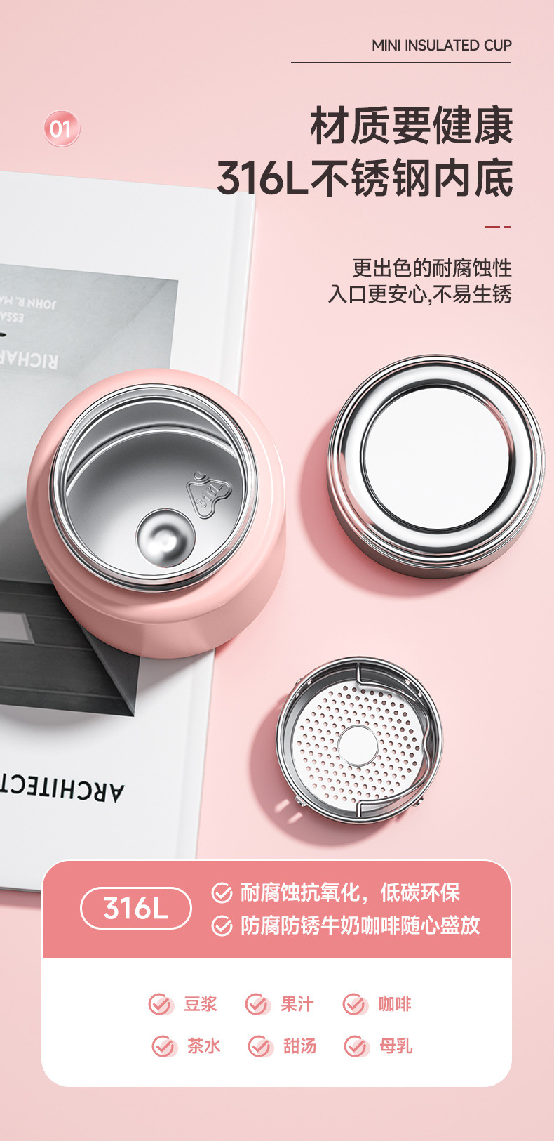 미니 보온병 컵 316 스테인레스 스틸 여성용 작은 컵 휴대용 간단한 컵 소녀의 포켓 컵 조각