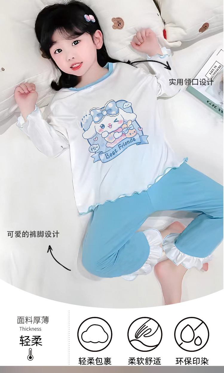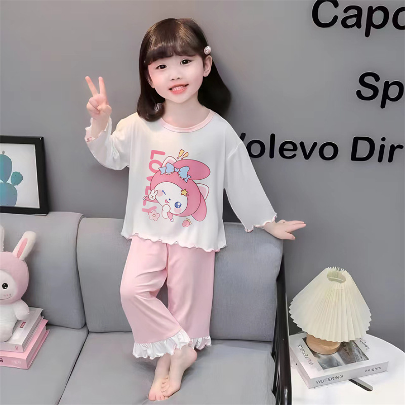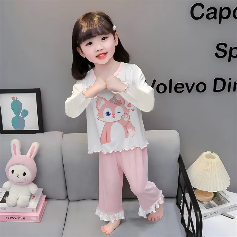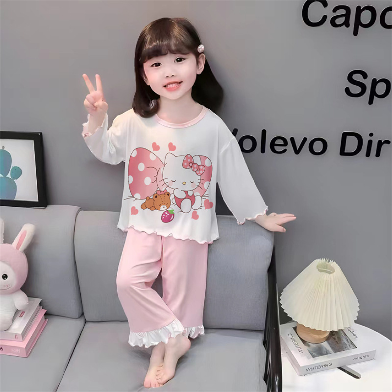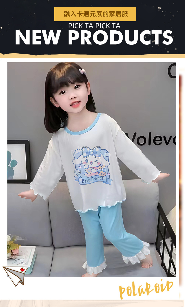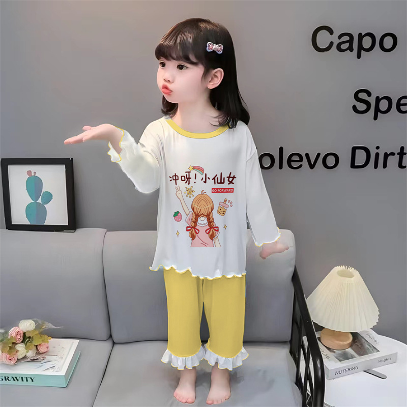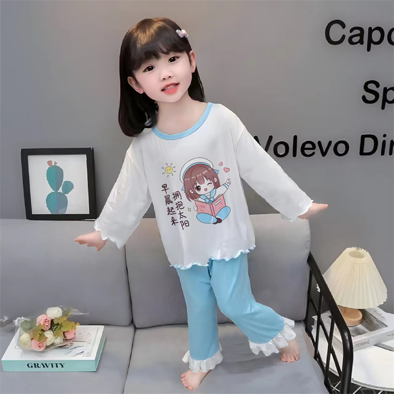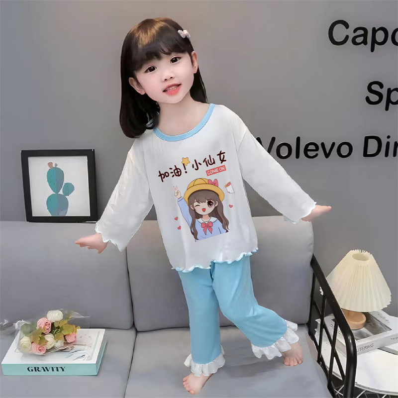 잠옷 소녀 여름 얇은 긴 소매 만화 Merleti 소녀 공주 아기 세트 어린이 집 옷 봄과 가을스토어 가기