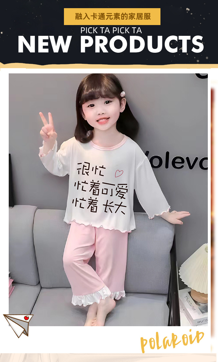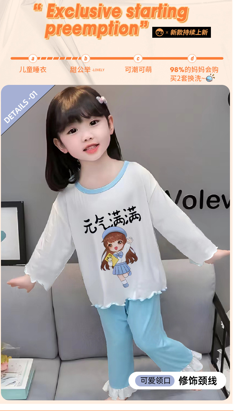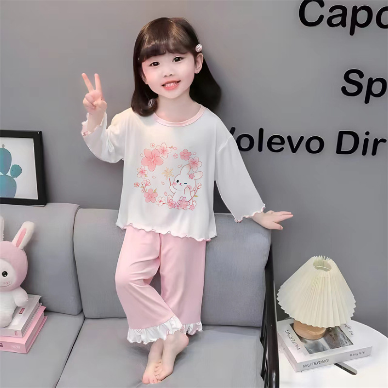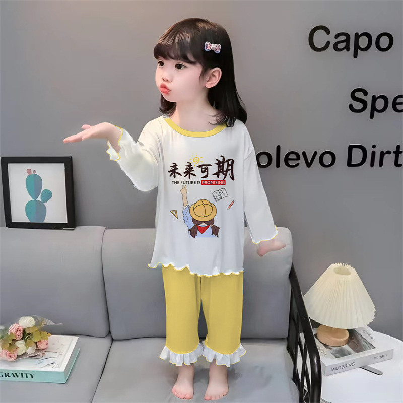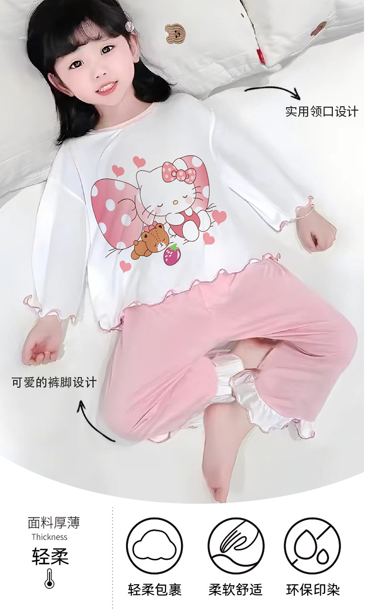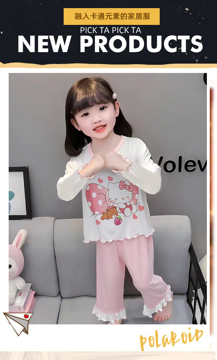 잠옷 소녀 여름 얇은 긴 소매 만화 Merleti 소녀 공주 아기 세트 어린이 집 옷 봄과 가을스토어 가기