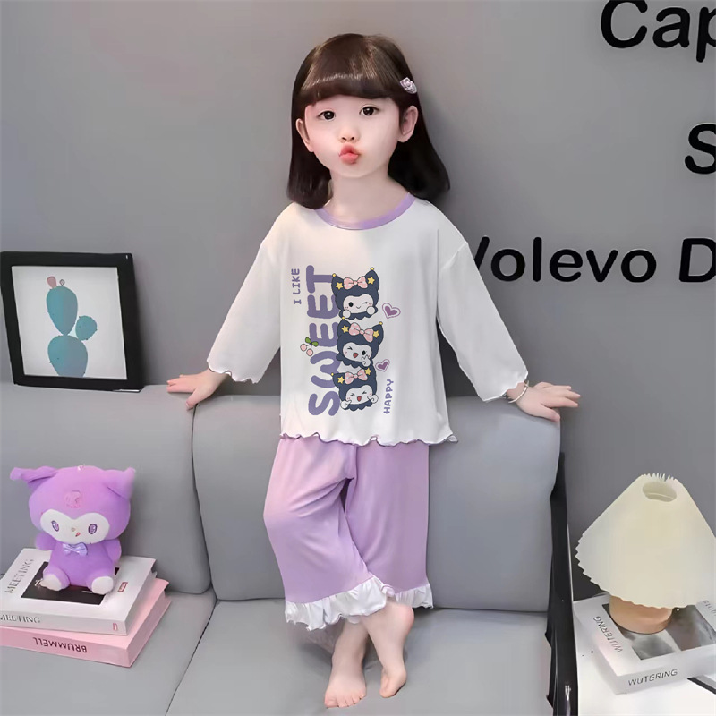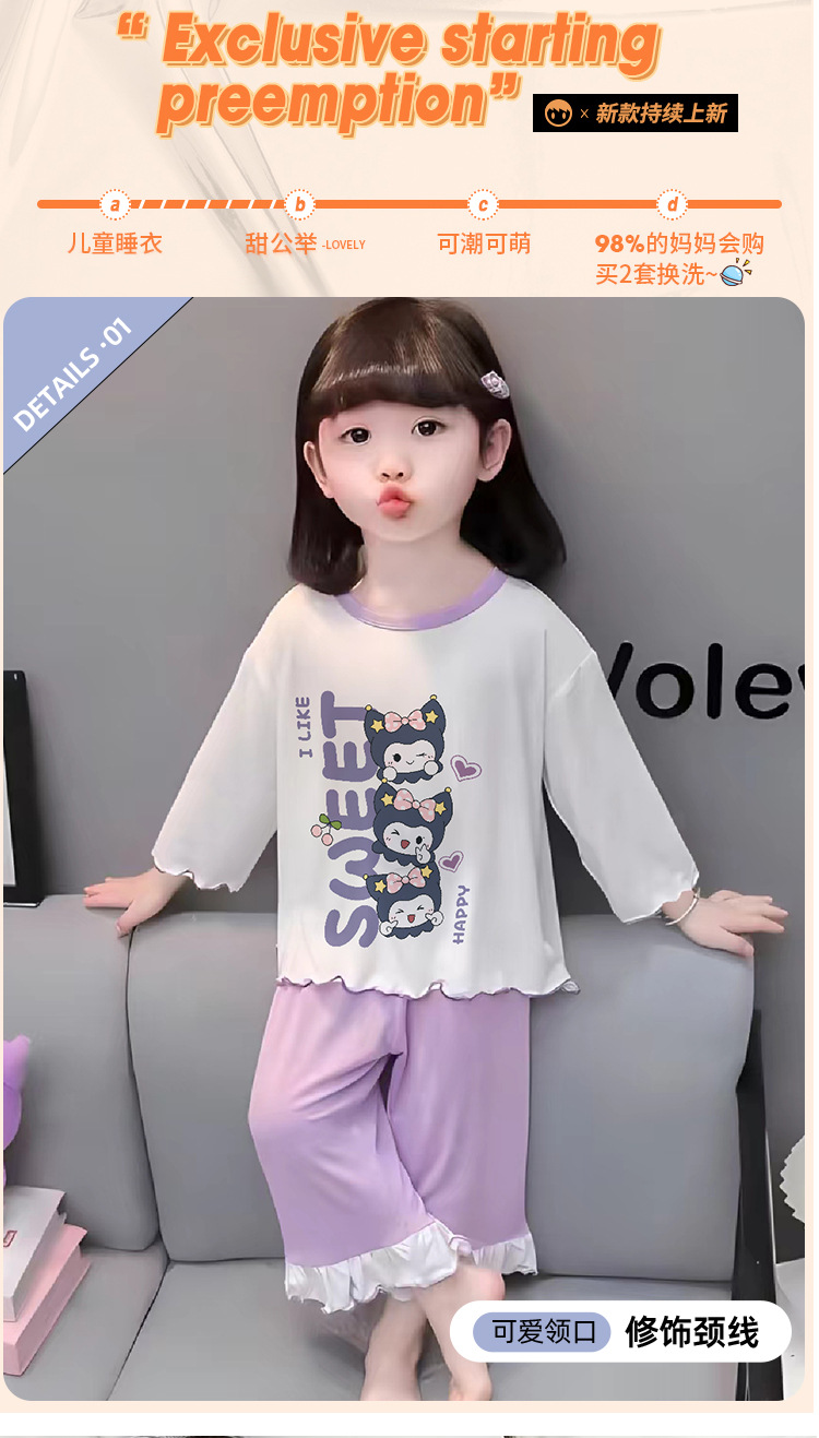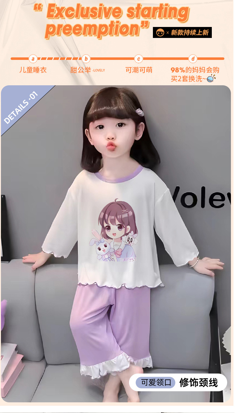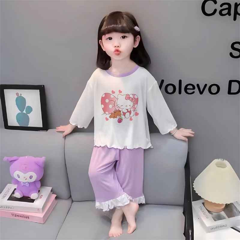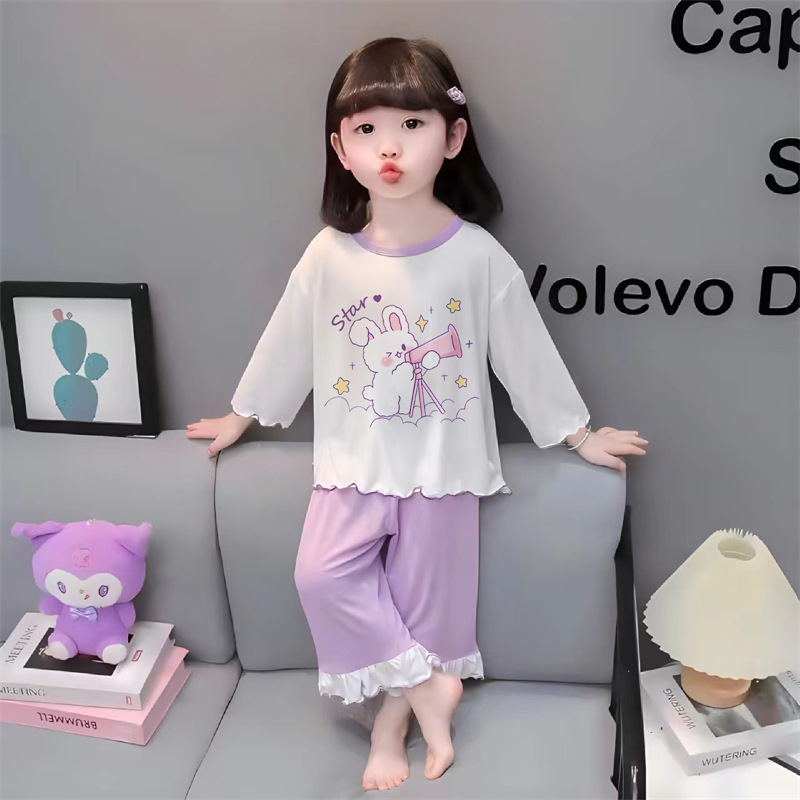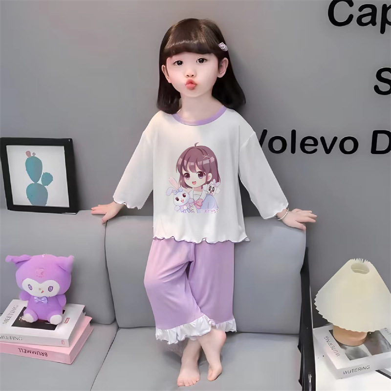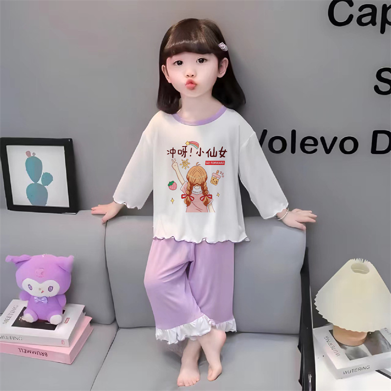 잠옷 소녀 여름 얇은 긴 소매 만화 Merleti 소녀 공주 아기 세트 어린이 집 옷 봄과 가을스토어 가기