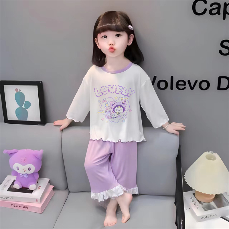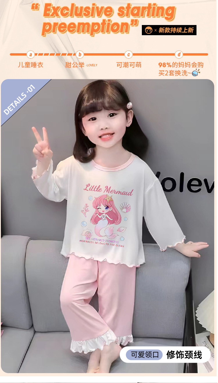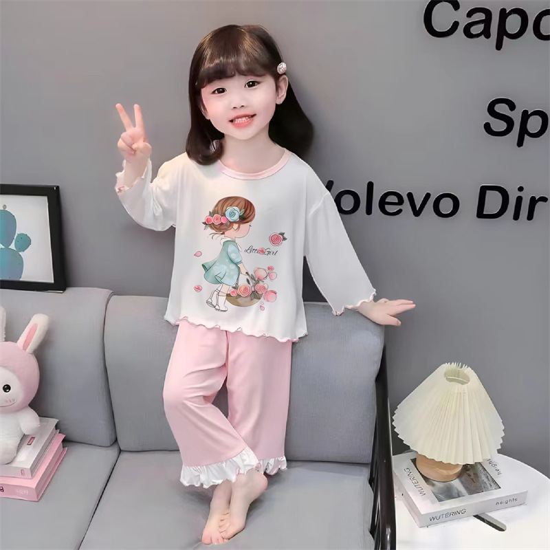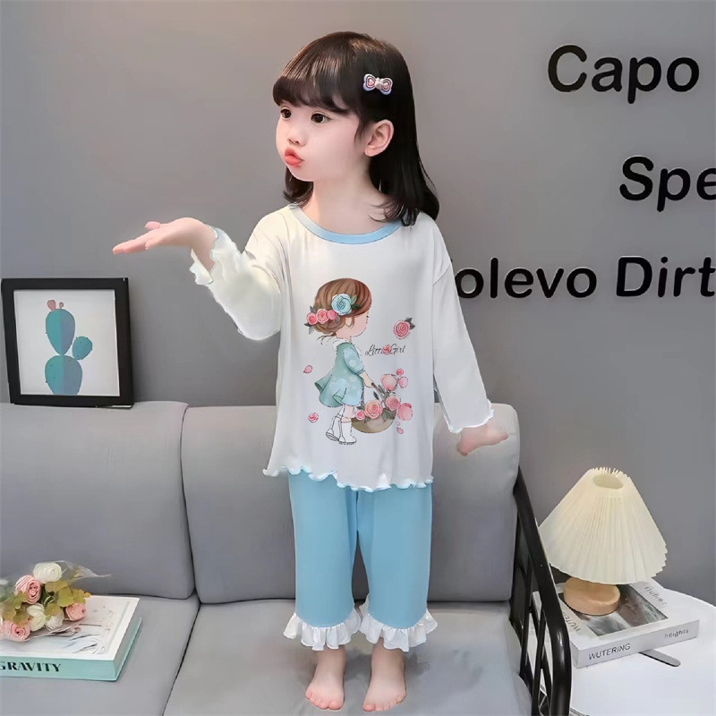 잠옷 소녀 여름 얇은 긴 소매 만화 Merleti 소녀 공주 아기 세트 어린이 집 옷 봄과 가을