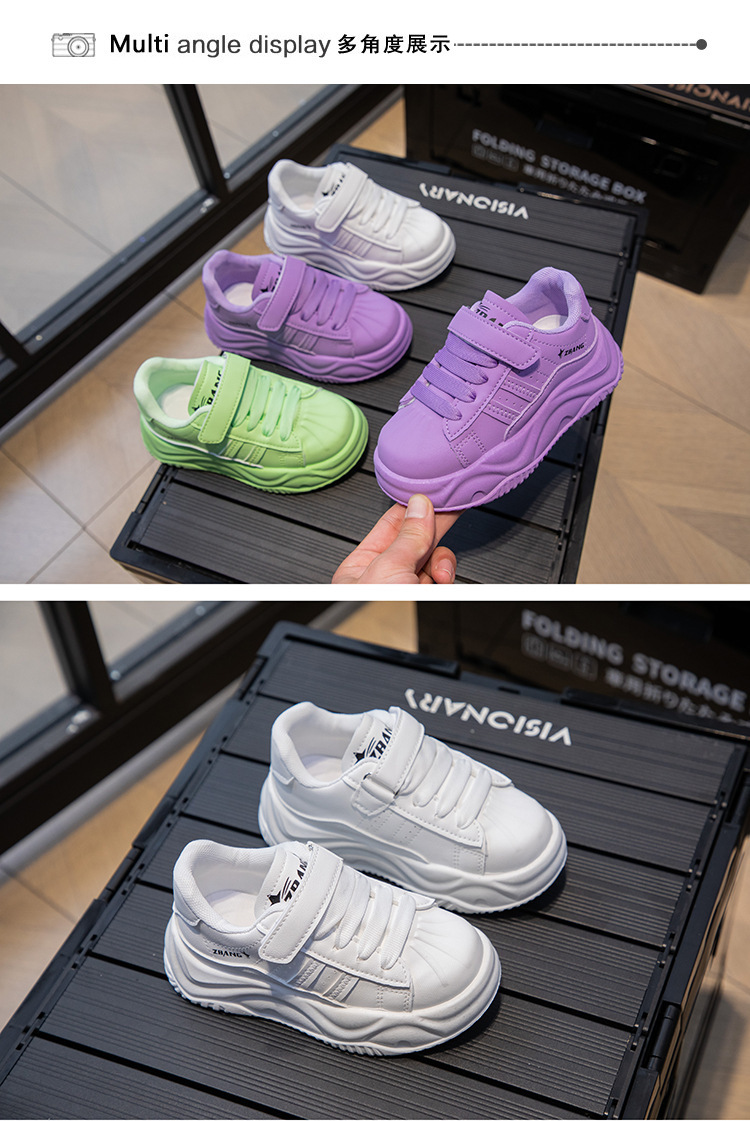 어린이 신발 여성 2025 봄과 가을 새로운 캐주얼 싱글 레이어 신발 틈새 스포츠 플랫폼 빵 신발 어린이 올 매치 화이트 신발
