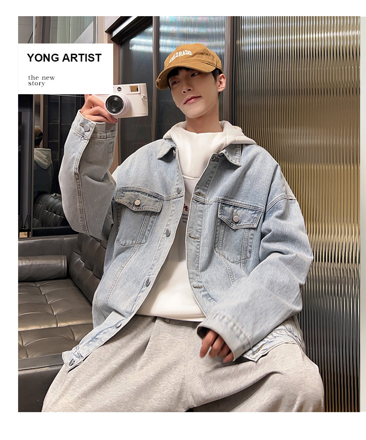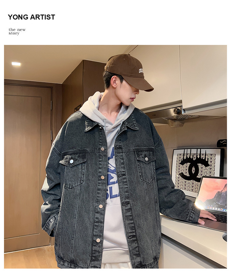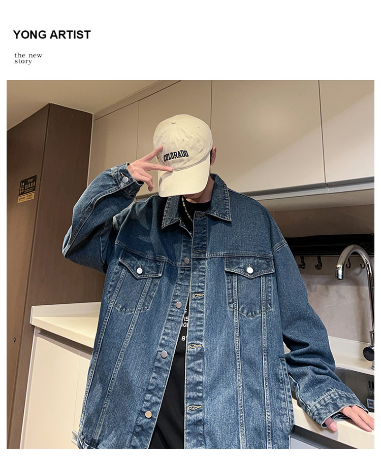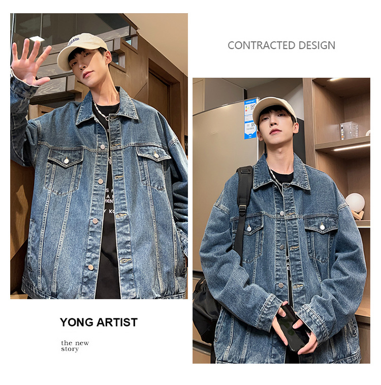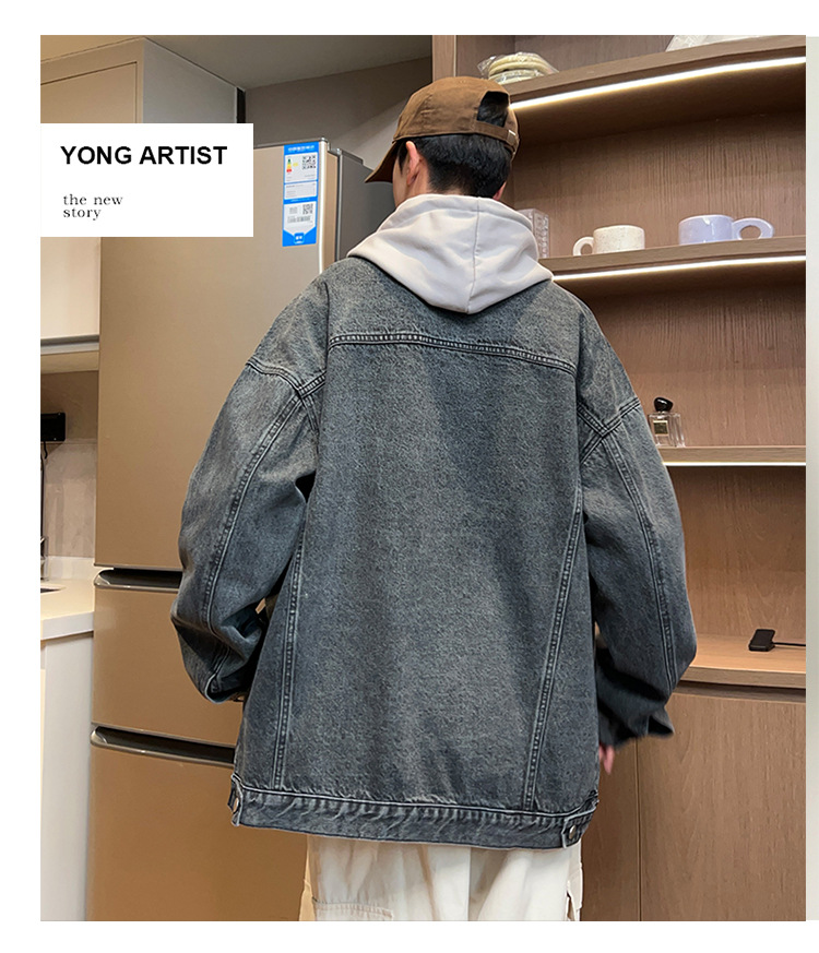 밍지 | 2024 가을/겨울 새로운 느슨한 세탁 데님 재킷 남자 홍콩 스타일 레트로 패션 브랜드 조커 재킷스토어 가기