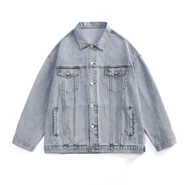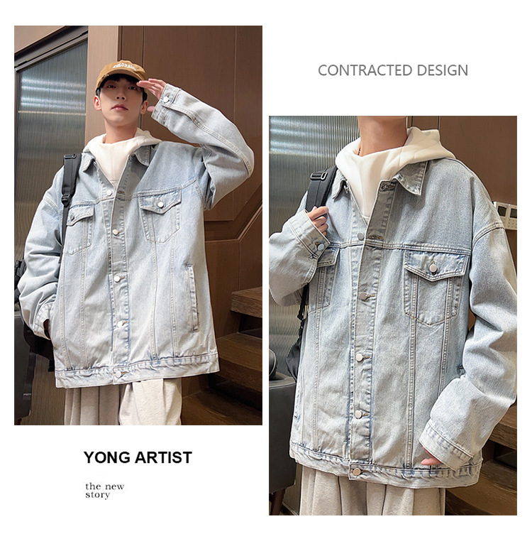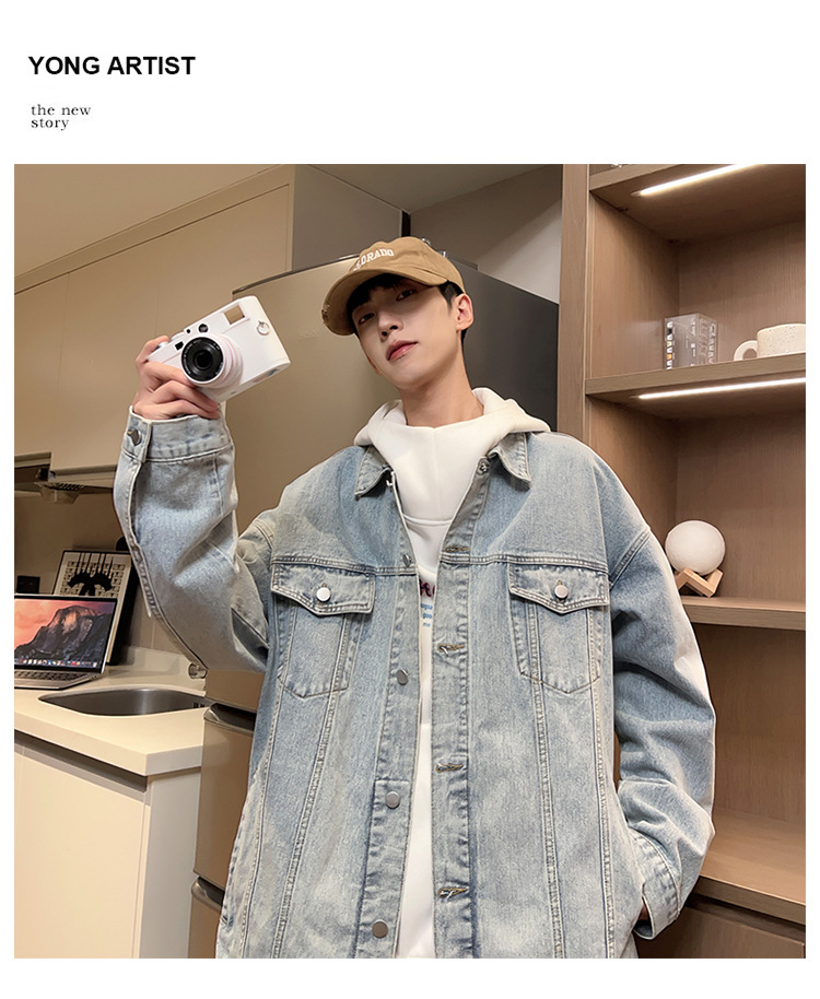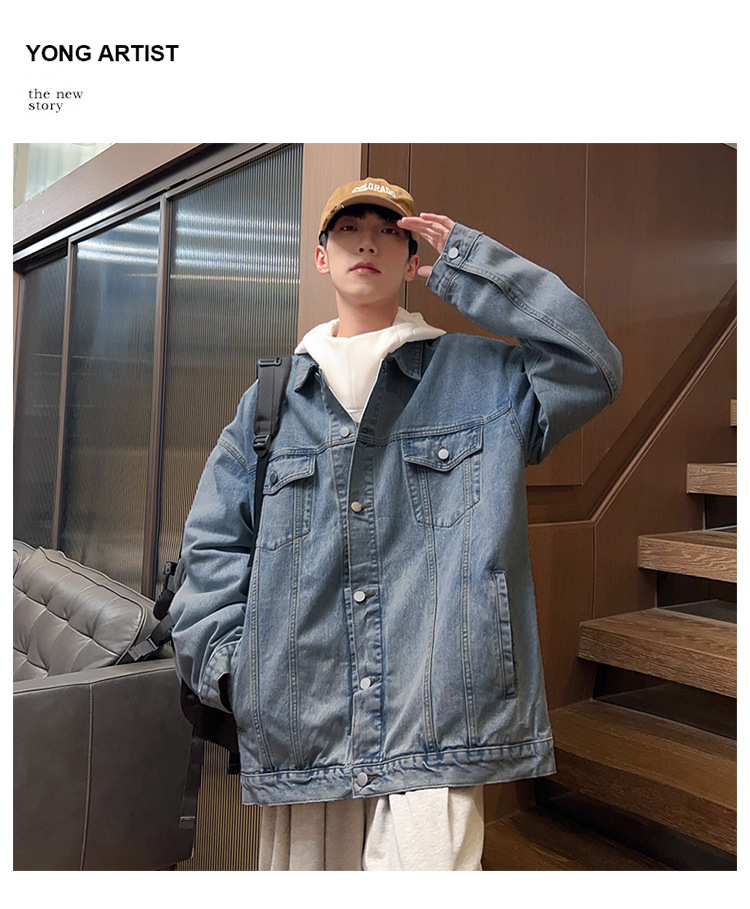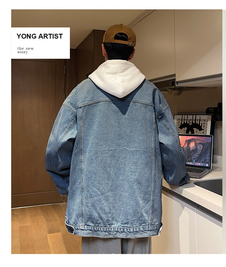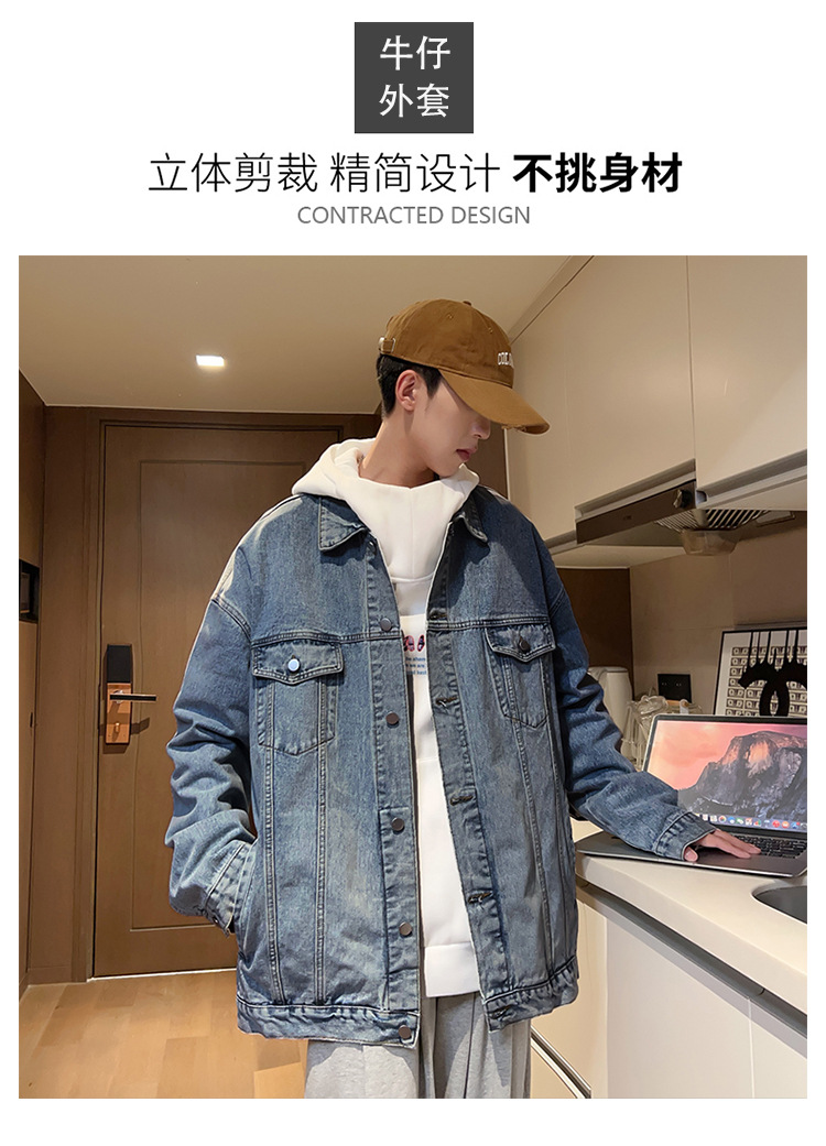 밍지 | 2024 가을/겨울 새로운 느슨한 세탁 데님 재킷 남자 홍콩 스타일 레트로 패션 브랜드 조커 재킷스토어 가기