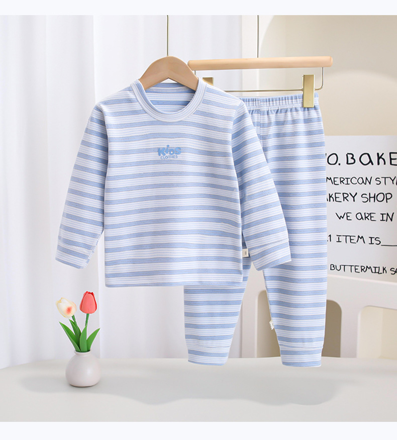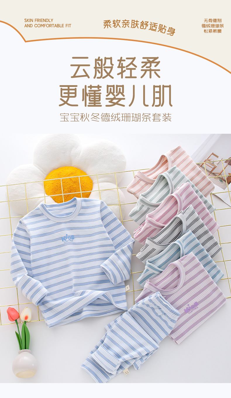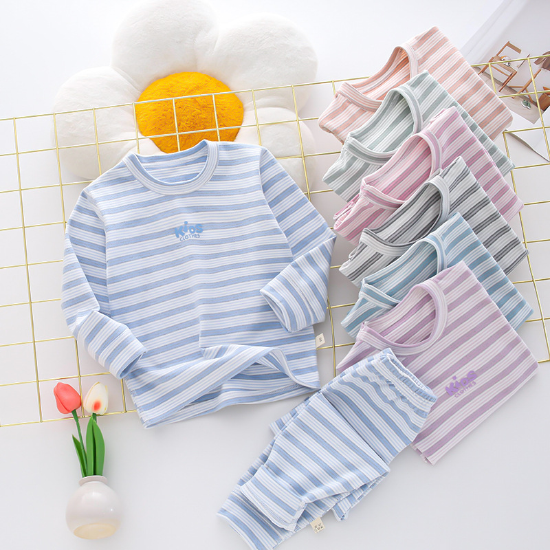 소년 소녀 가을과 겨울 새로운 산호 줄무늬 어린이 열 속옷 세트 가을 옷 가을 바지 잠옷스토어 가기