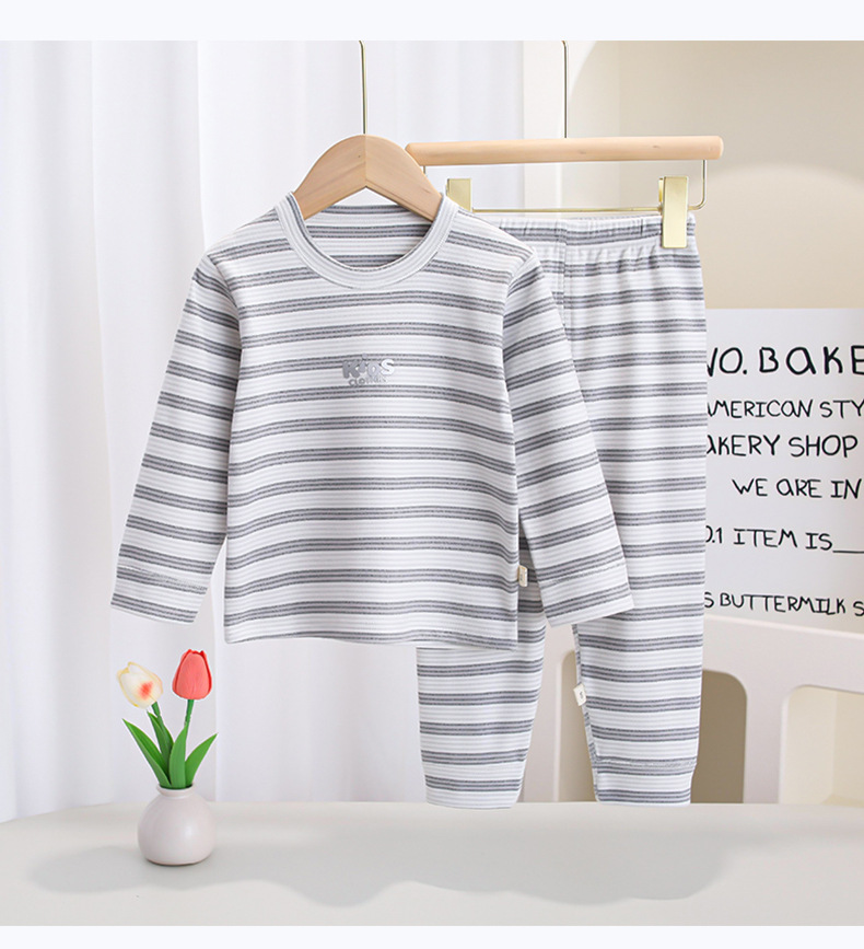 소년 소녀 가을과 겨울 새로운 산호 줄무늬 어린이 열 속옷 세트 가을 옷 가을 바지 잠옷
