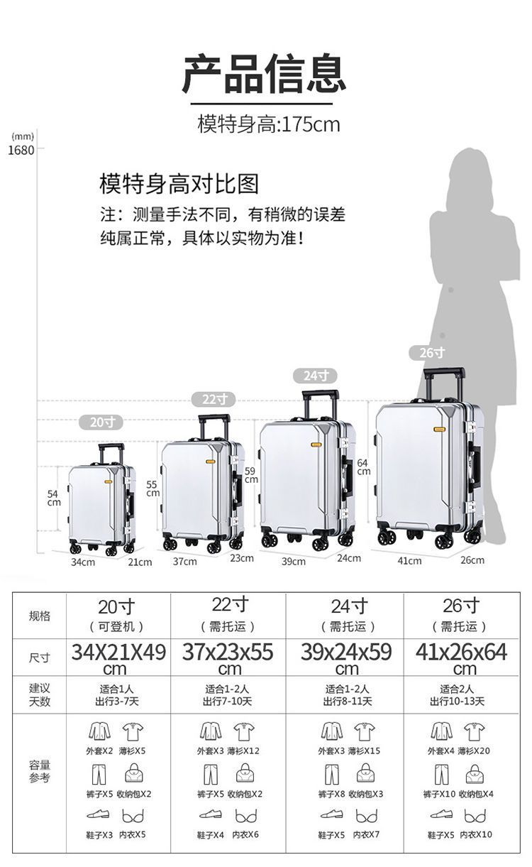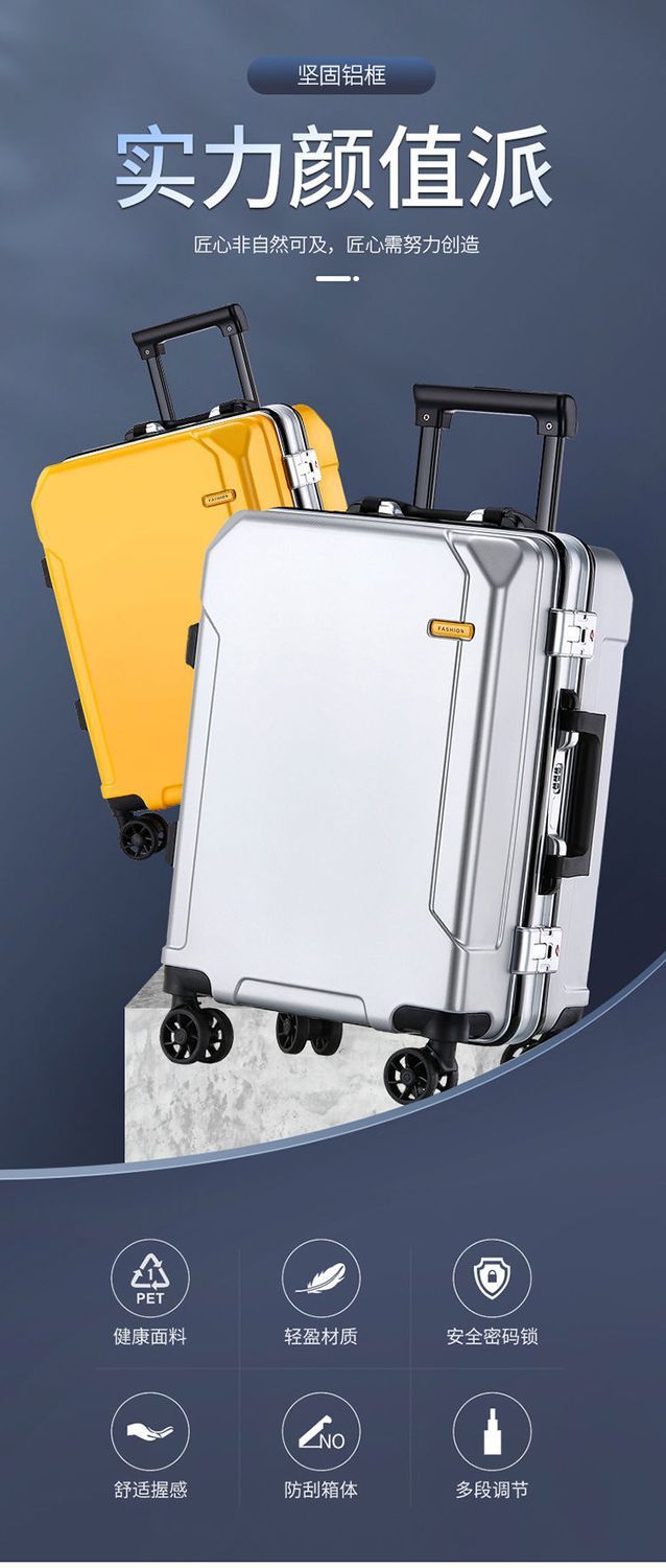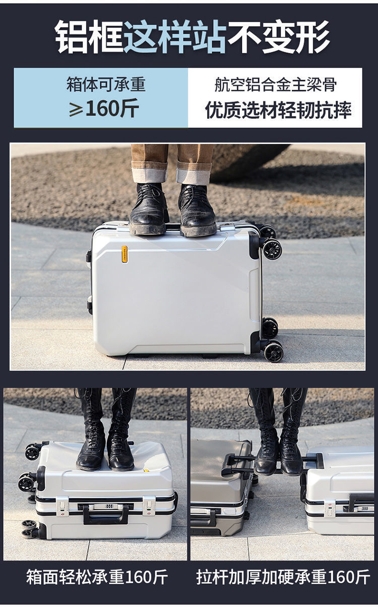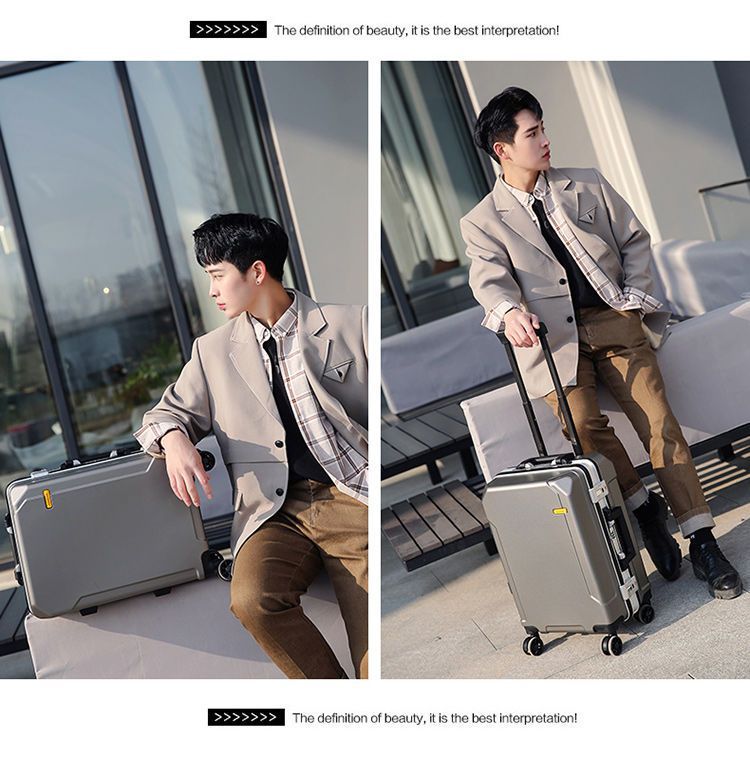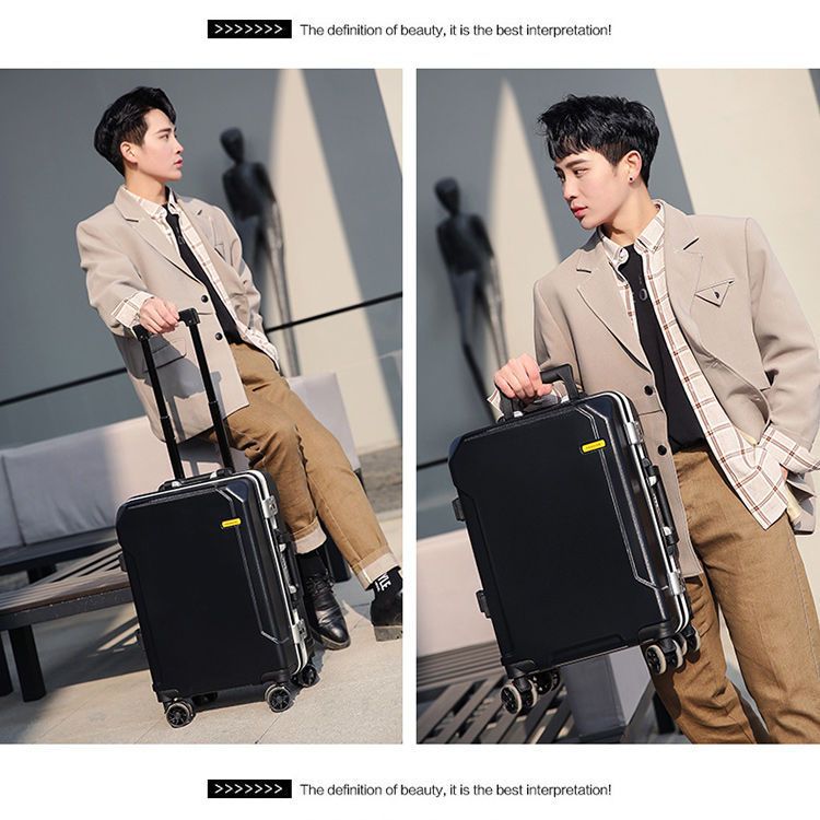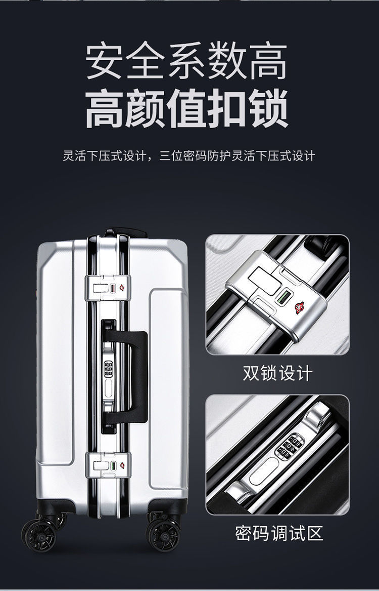 강력한 수하물 케이스 남성의 대용량 암호 상자 학생의 유니버설 휠 가방 여성 새로운 알루미늄 프레임 트롤리 케이스