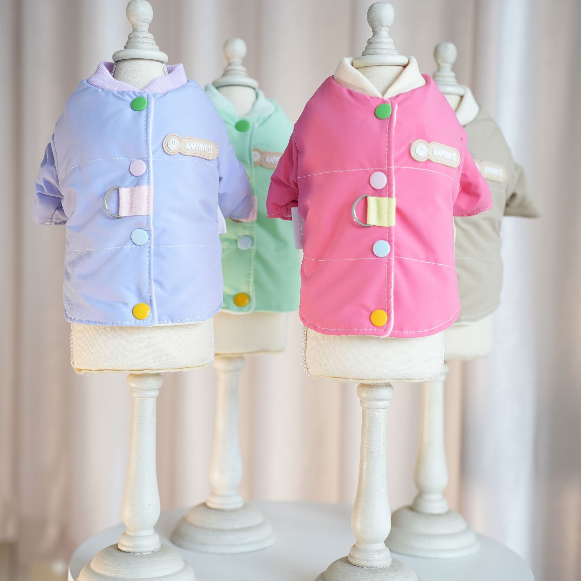 롤리팝 개 옷 다채로운 버클 백 오픈 코튼 옷 두 다리 옷 충전 방풍 캐주얼 코기 빅시 팬더 고양이 옷스토어 가기