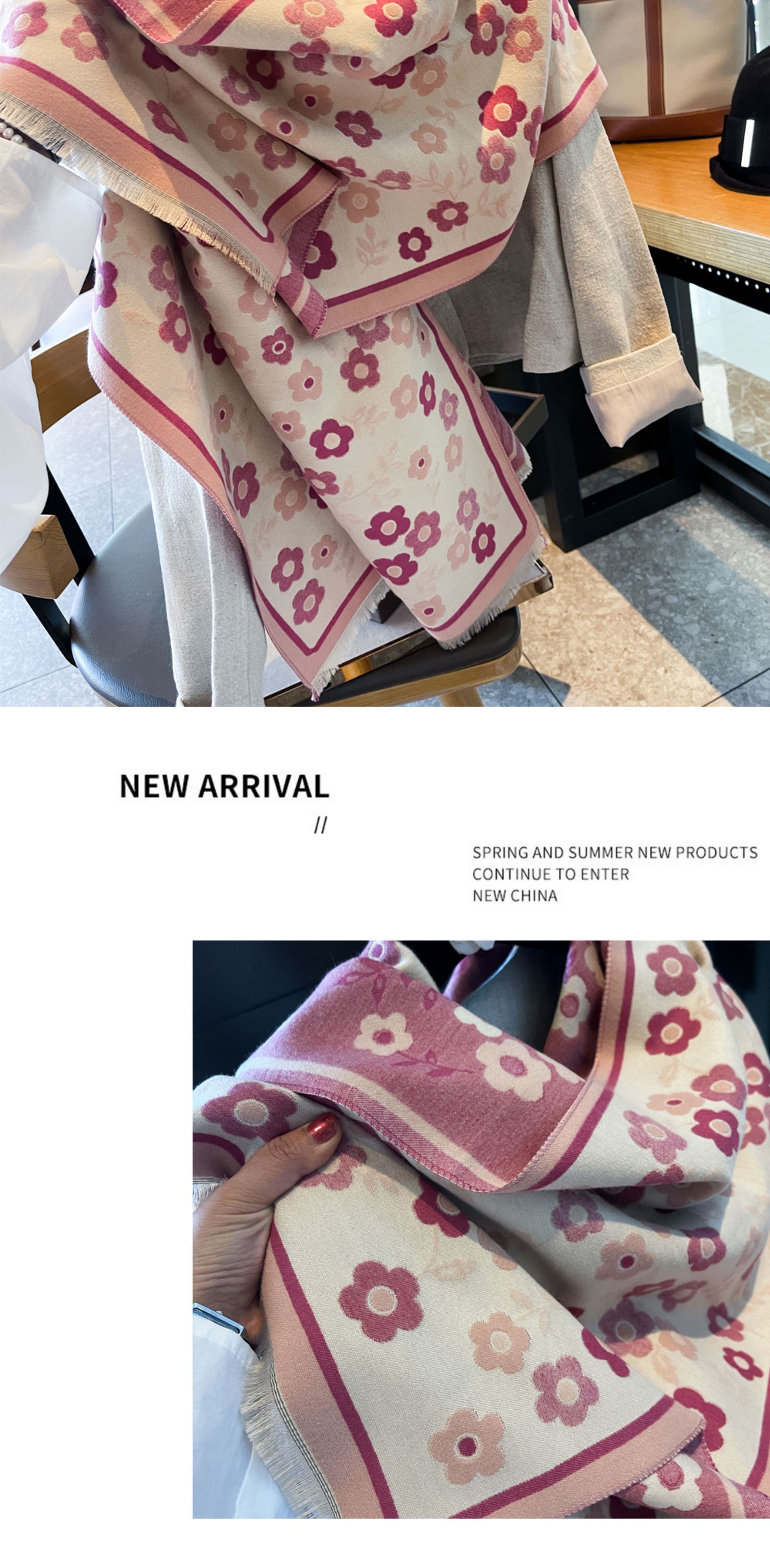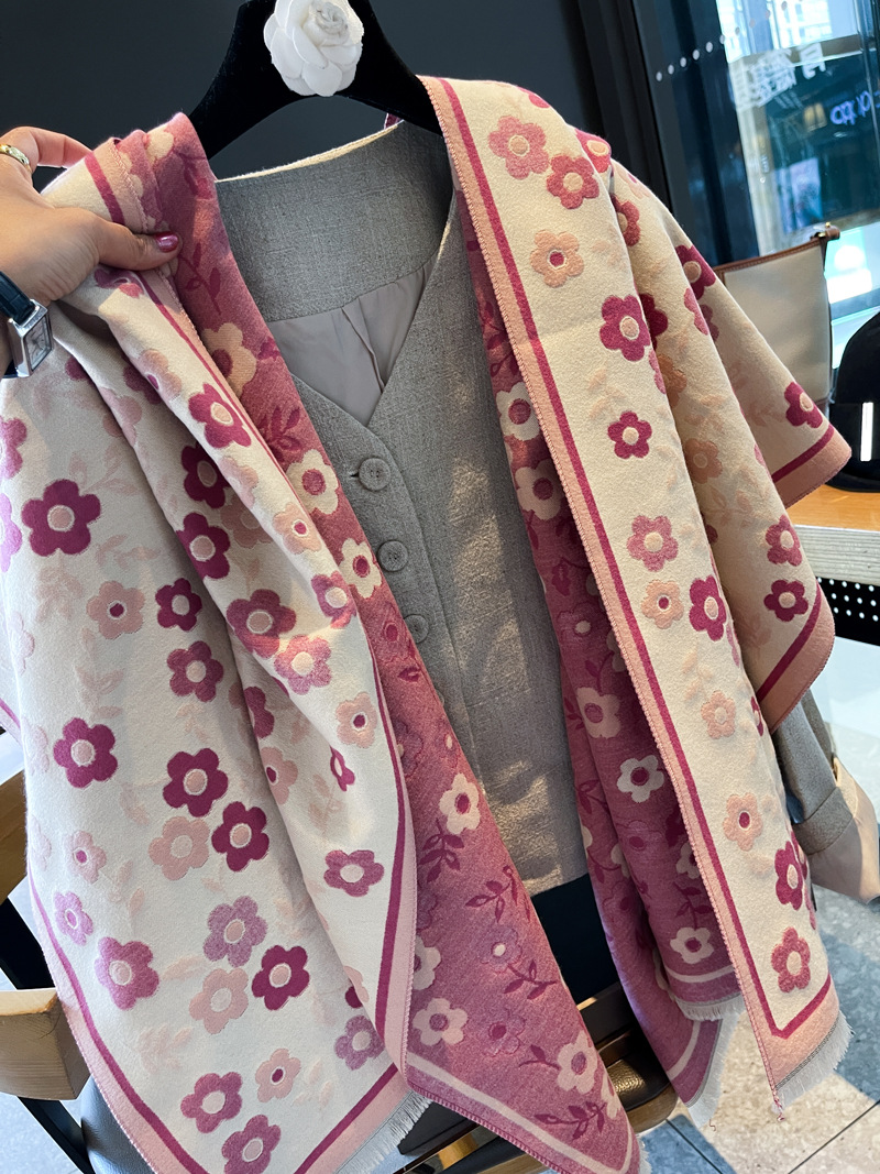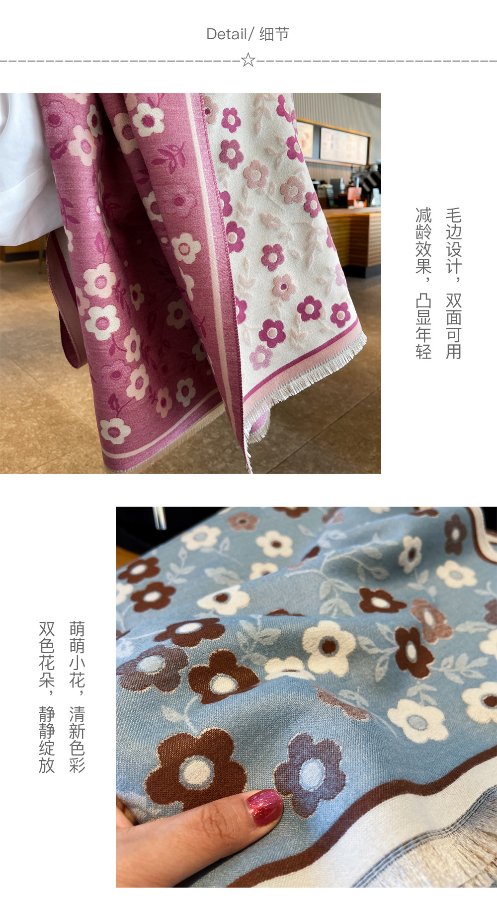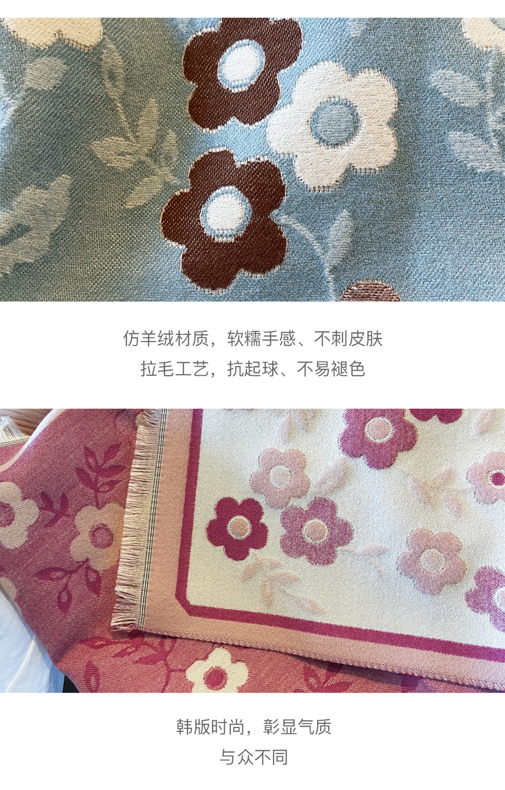 甜美萌萌小花秋冬季双面仿羊绒围巾女加厚保暖大披肩百搭学生围脖
