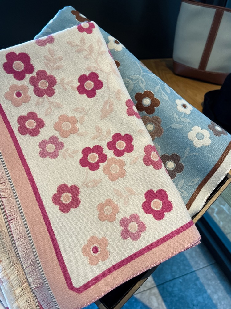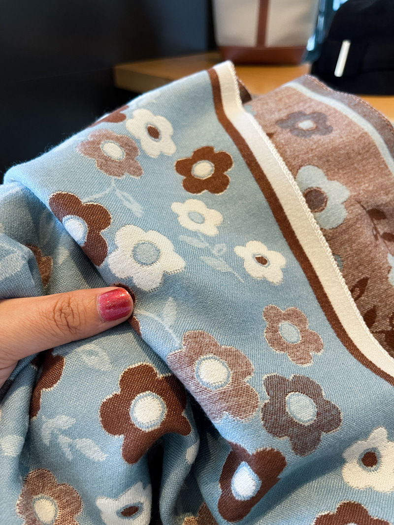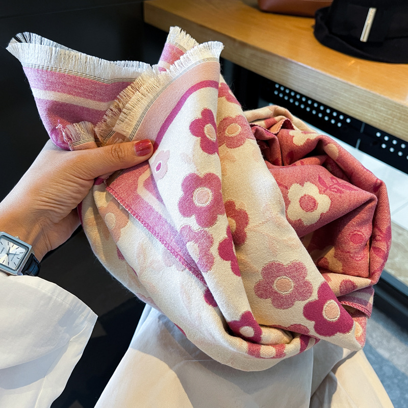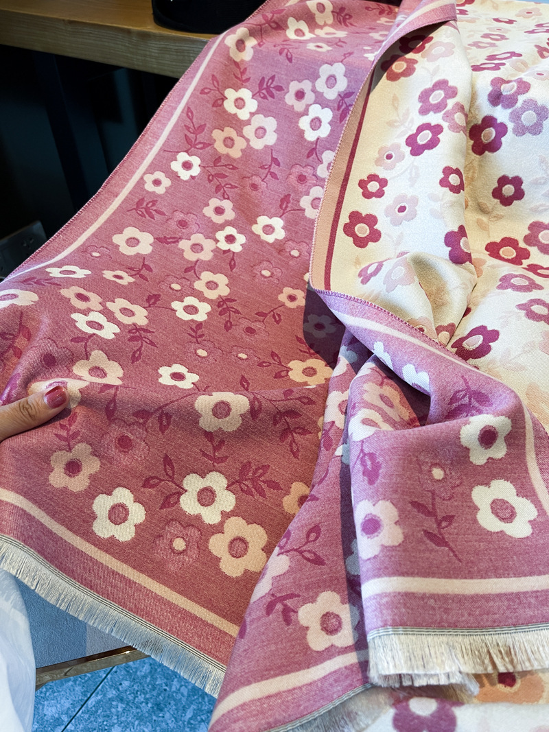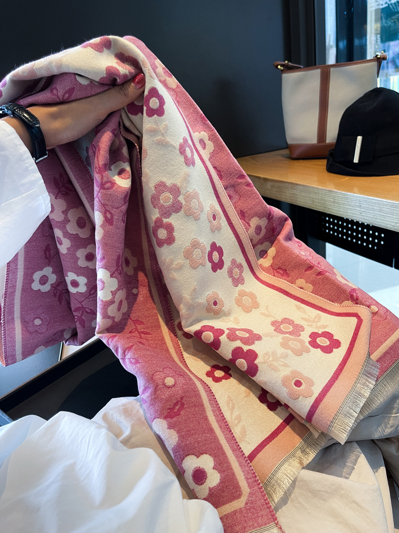 甜美萌萌小花秋冬季双面仿羊绒围巾女加厚保暖大披肩百搭学生围脖