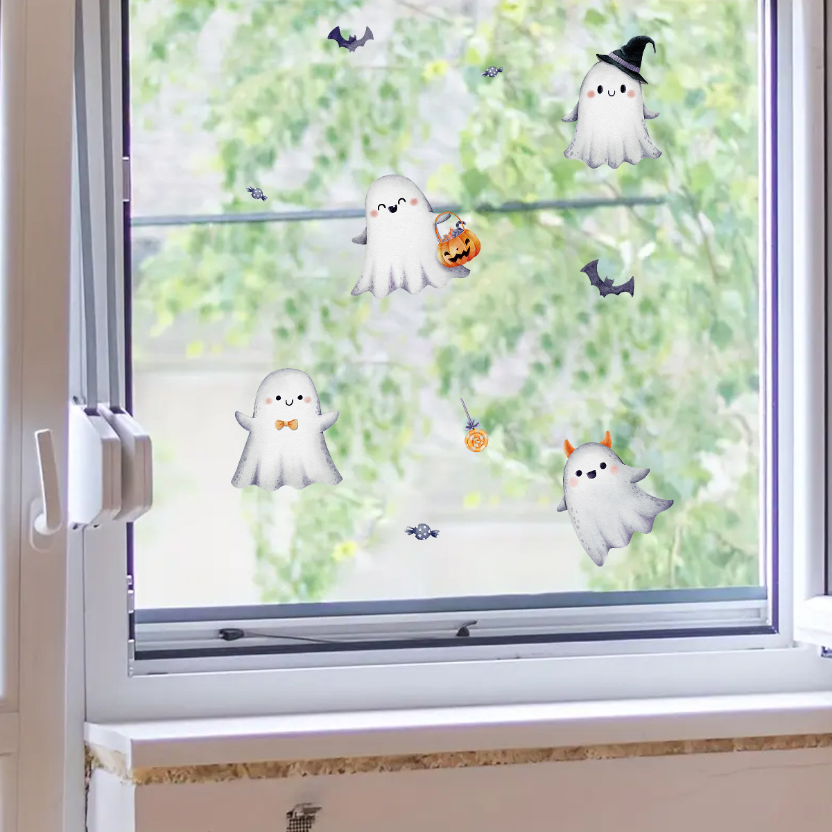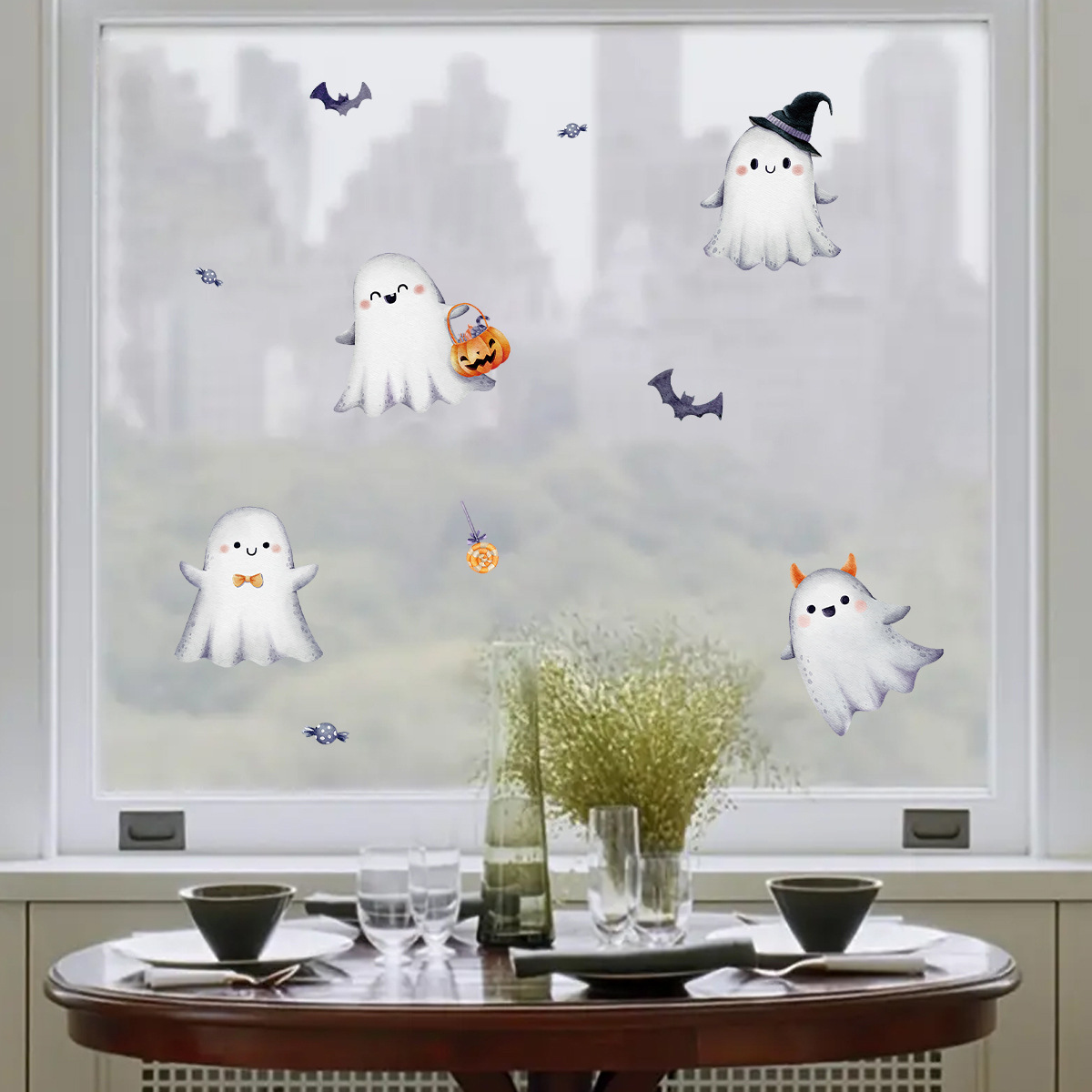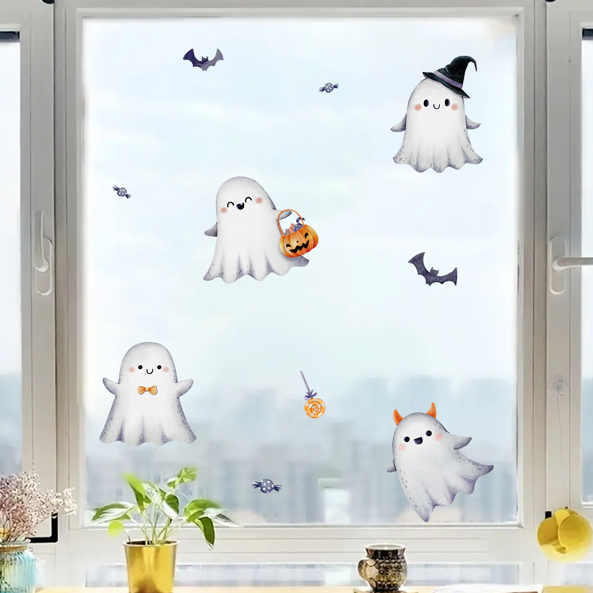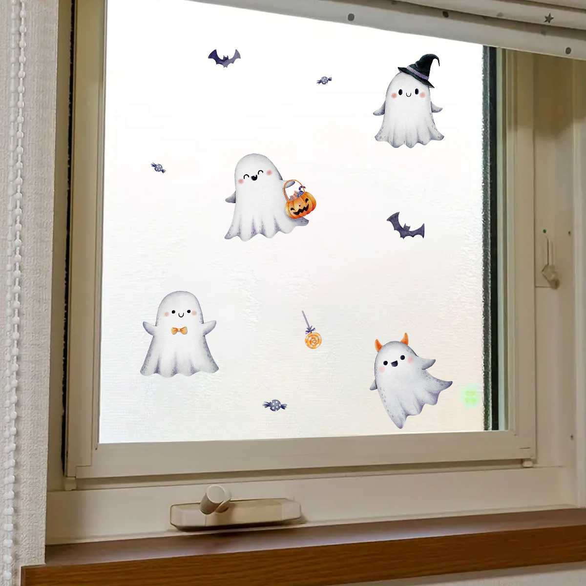 만화 할로윈 귀여운 유령 창 스티커 자체 접착 양면 시각적 도어 및 창 유리 장식 스티커 BR0830