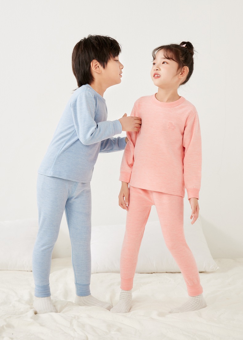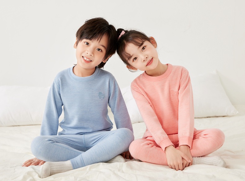남녀 클래스 A 열 속옷 세트 기본 가을 옷과 가을 바지 아기의 가을과 겨울 탑 칼라 줄무늬 잠옷과 잠옷스토어 가기