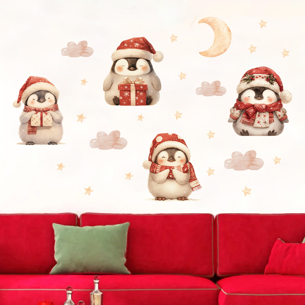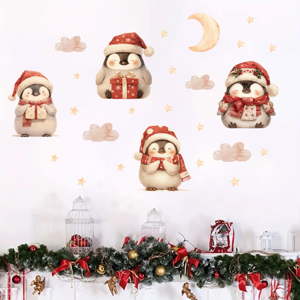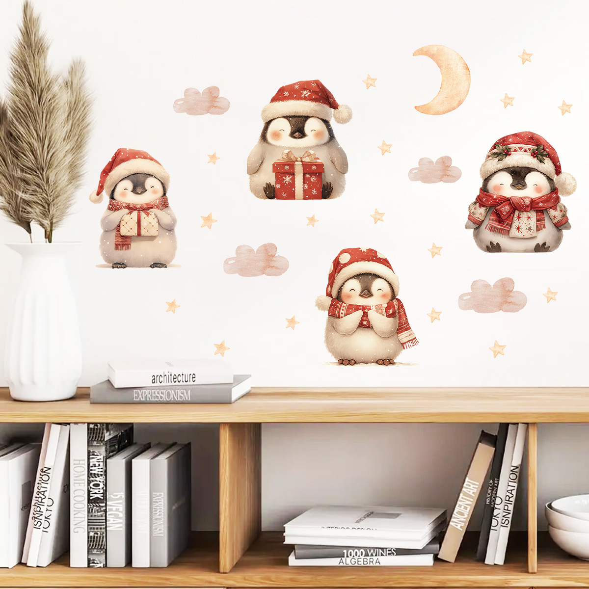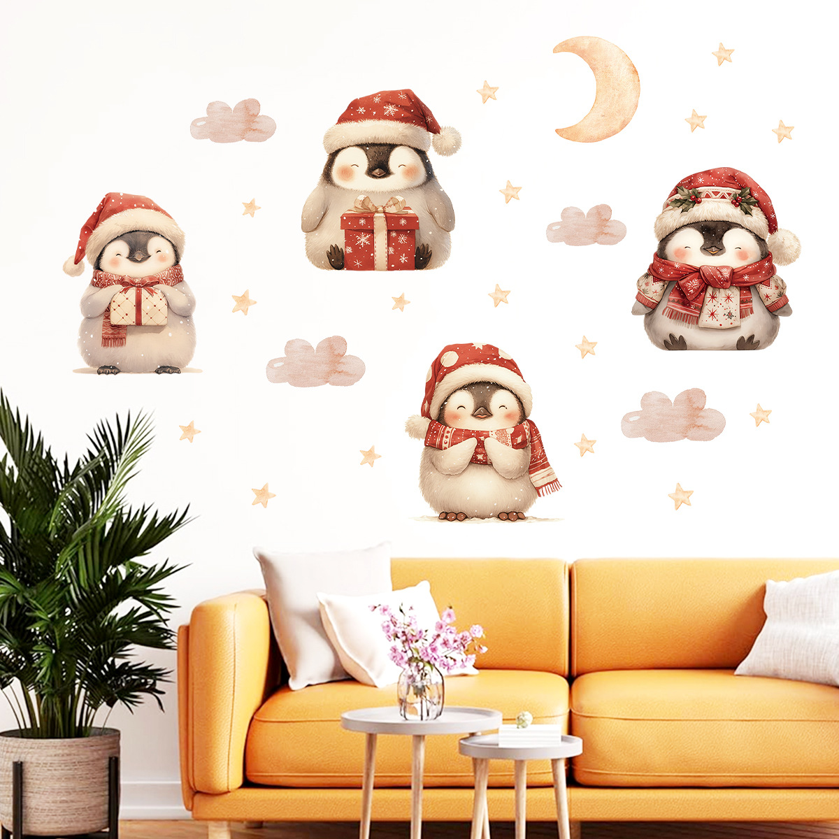 크리스마스 만화 구름 귀여운 작은 펭귄 자기 접착 벽 스티커 방 거실 침실 장식 스티커 BR0828F