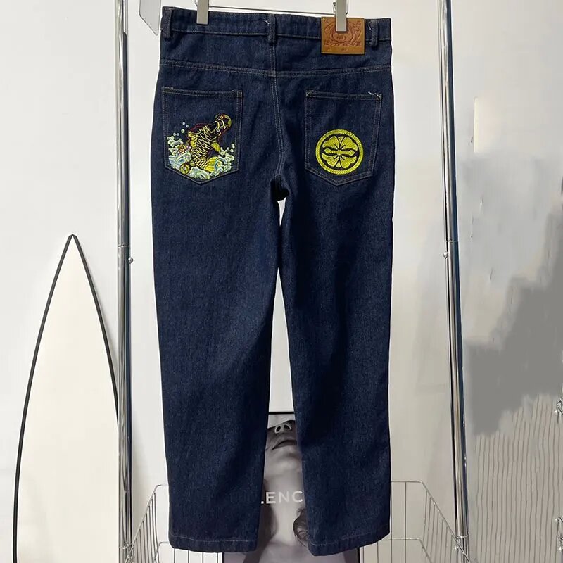 아메리칸 스트리트 레트로 힙합 프린트 스트레이트 청바지 남성 패셔너블 캐주얼 올 매치 슬림 핏 청바지스토어 가기