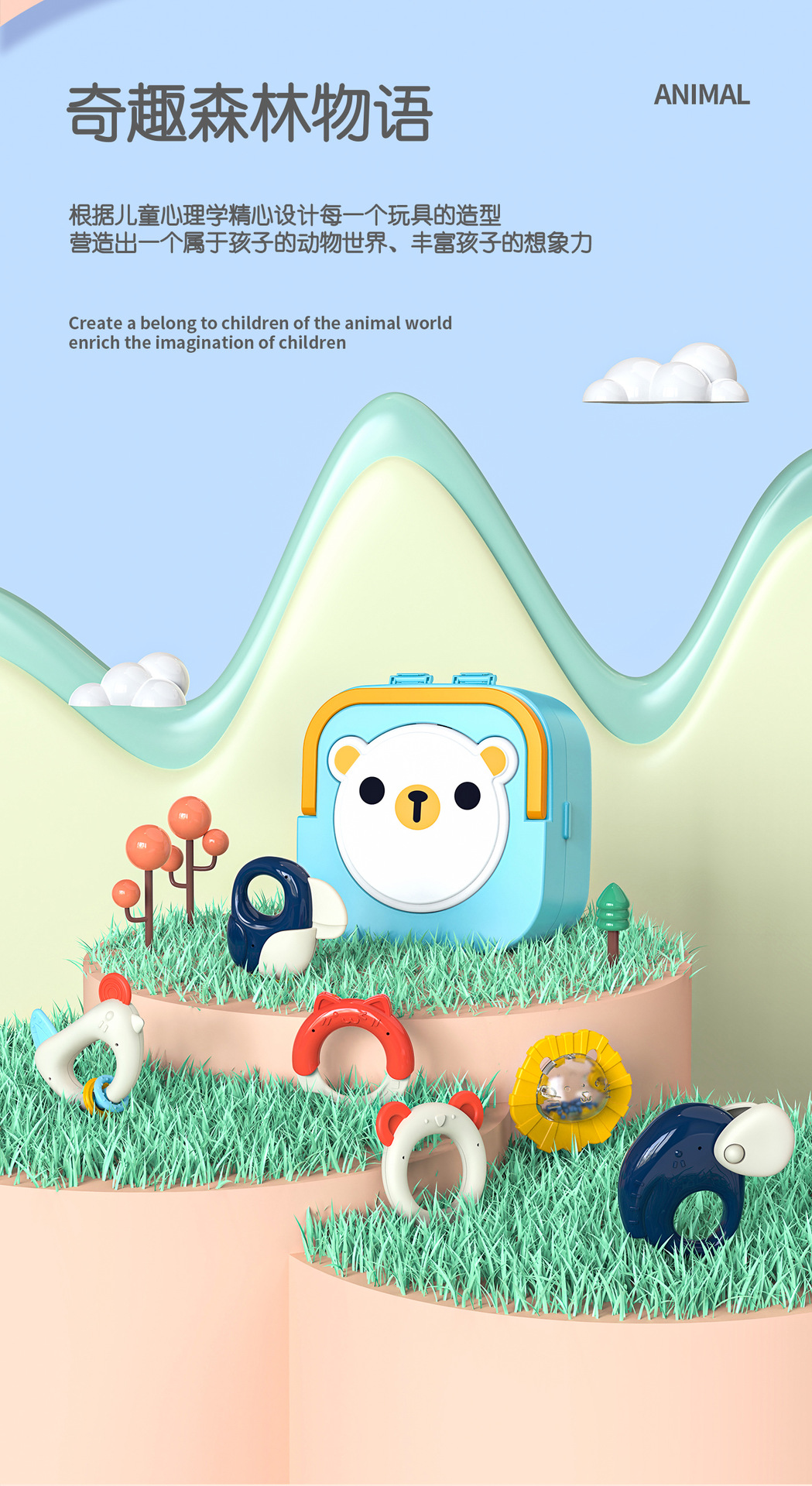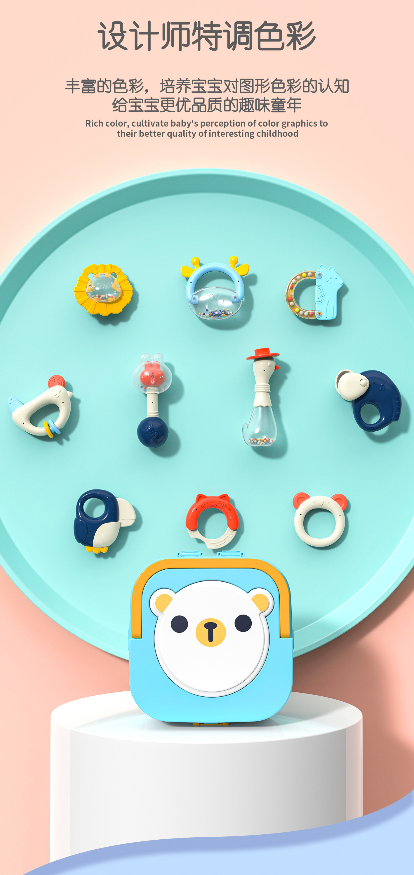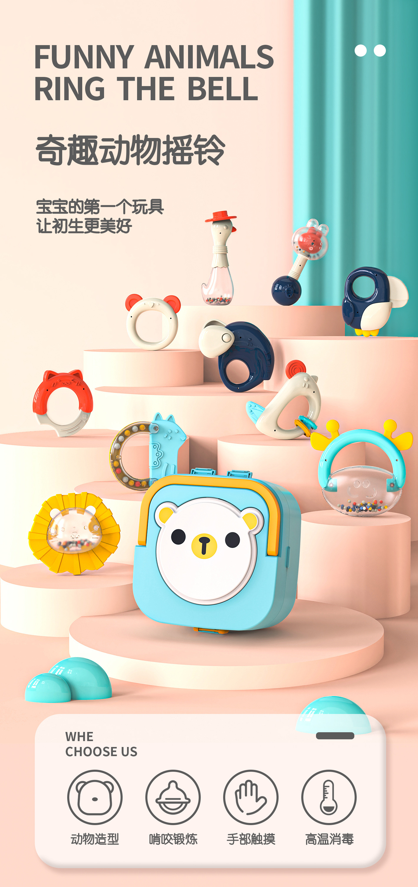 어린이 아기 딸랑이 휴대용 음악 진정 장난감 아기 물린 삶은 Molar Gum 손 딸랑이 도매스토어 가기