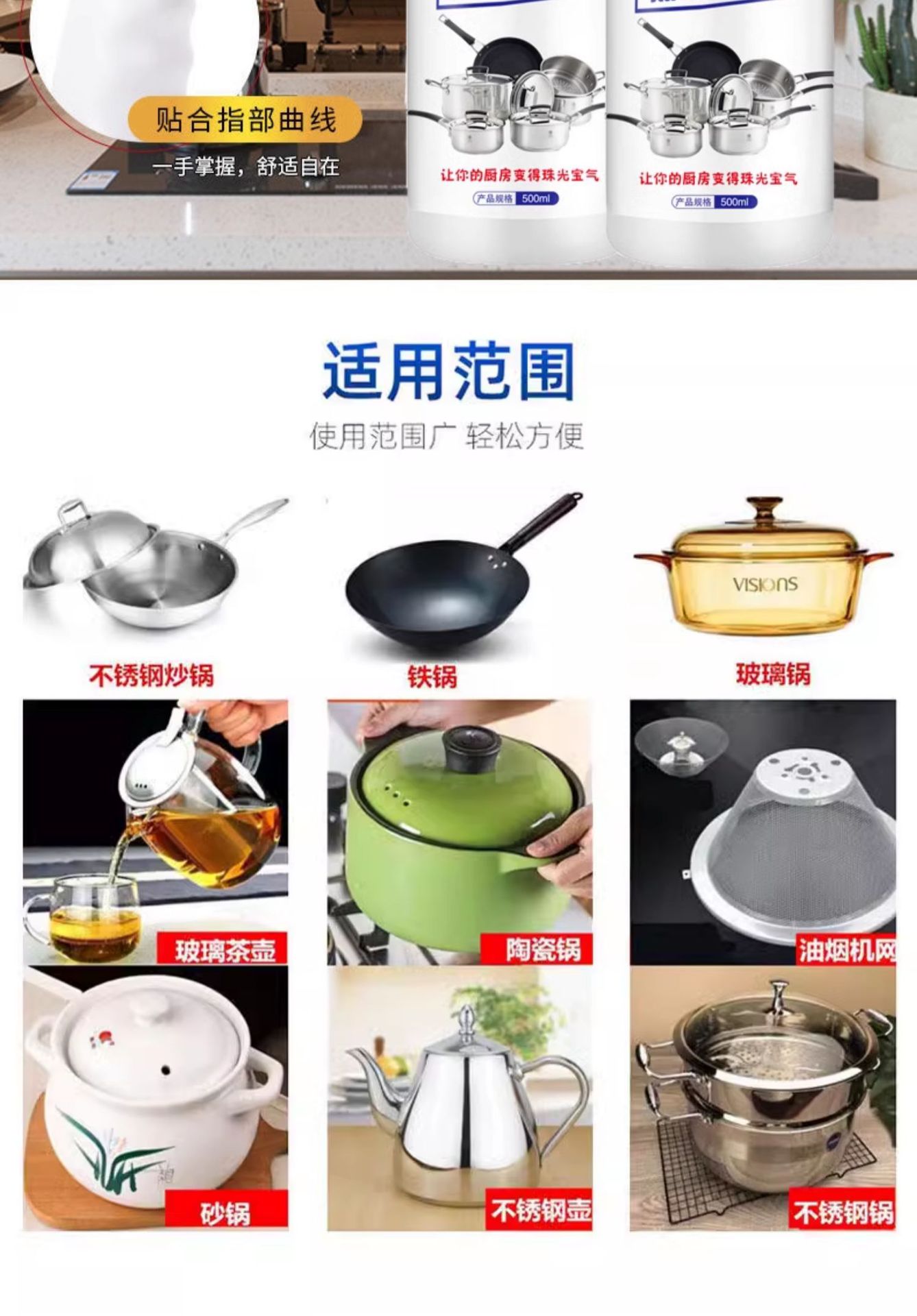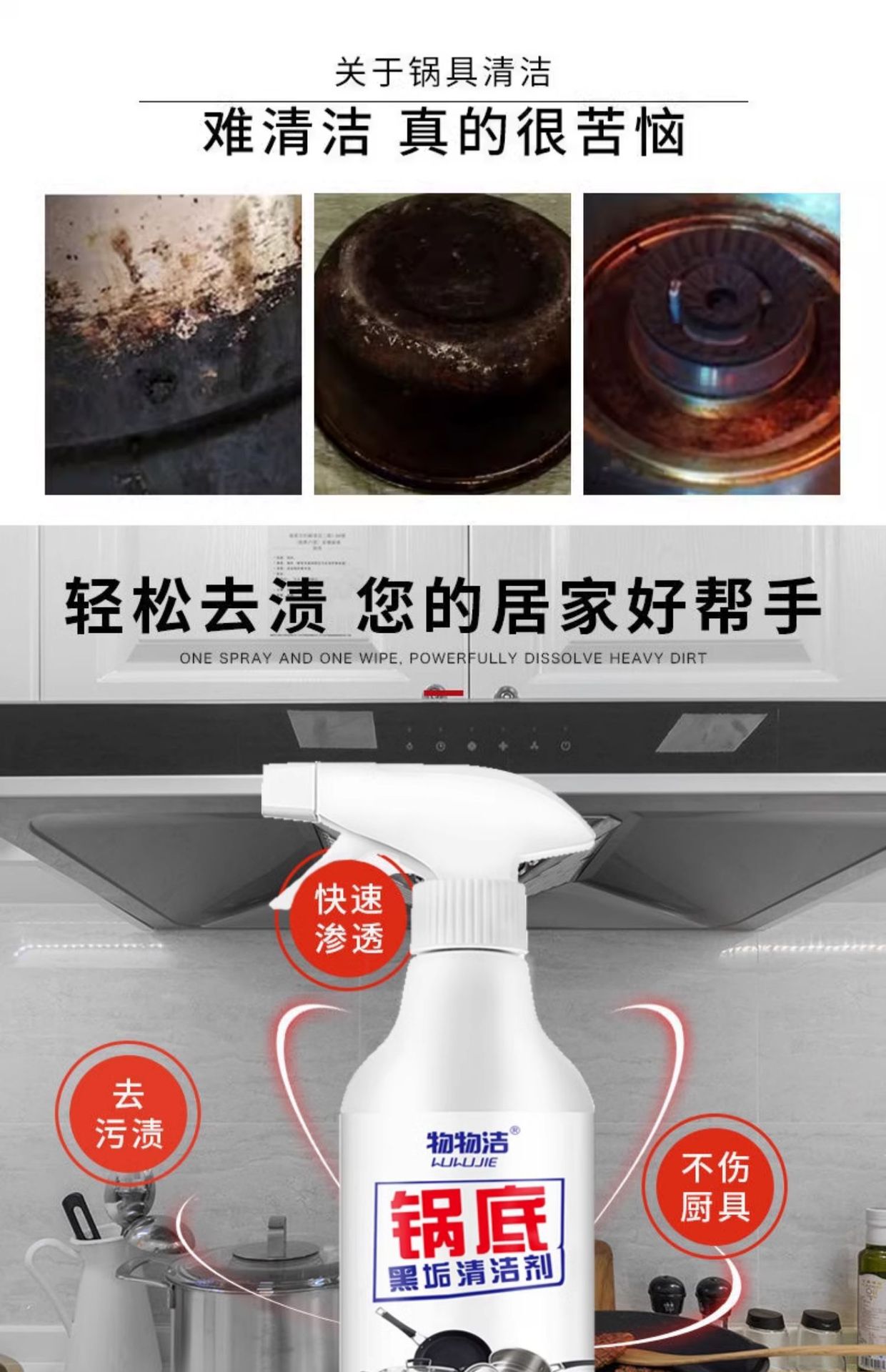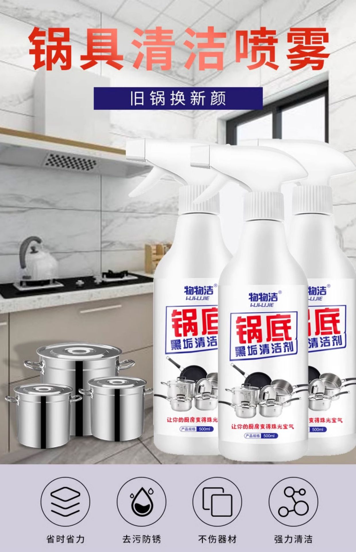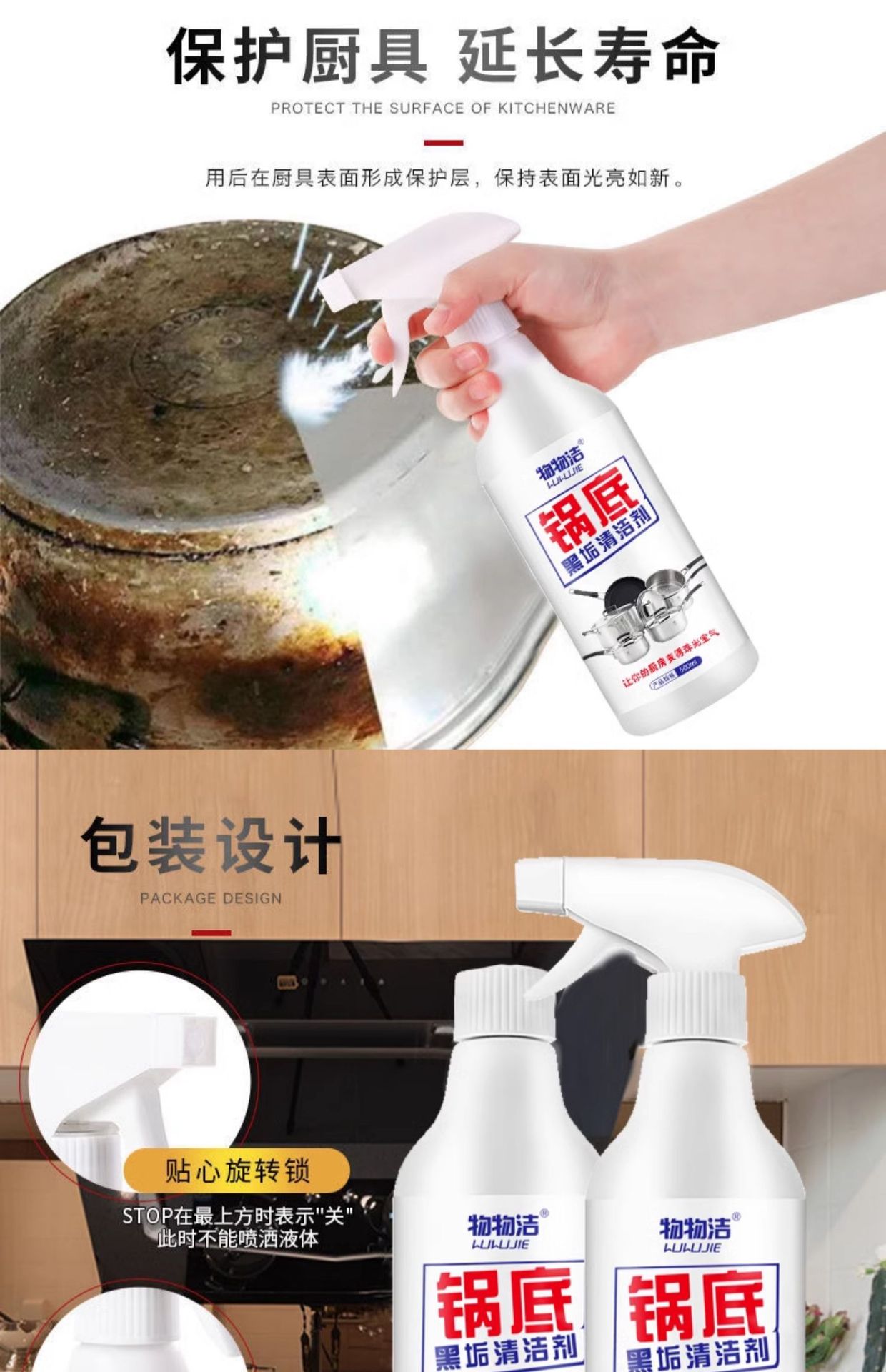 • 냄비 바닥 블랙 스케일 클리너 500ml*5병(스프레이 헤드를 포함한 전체 세트)