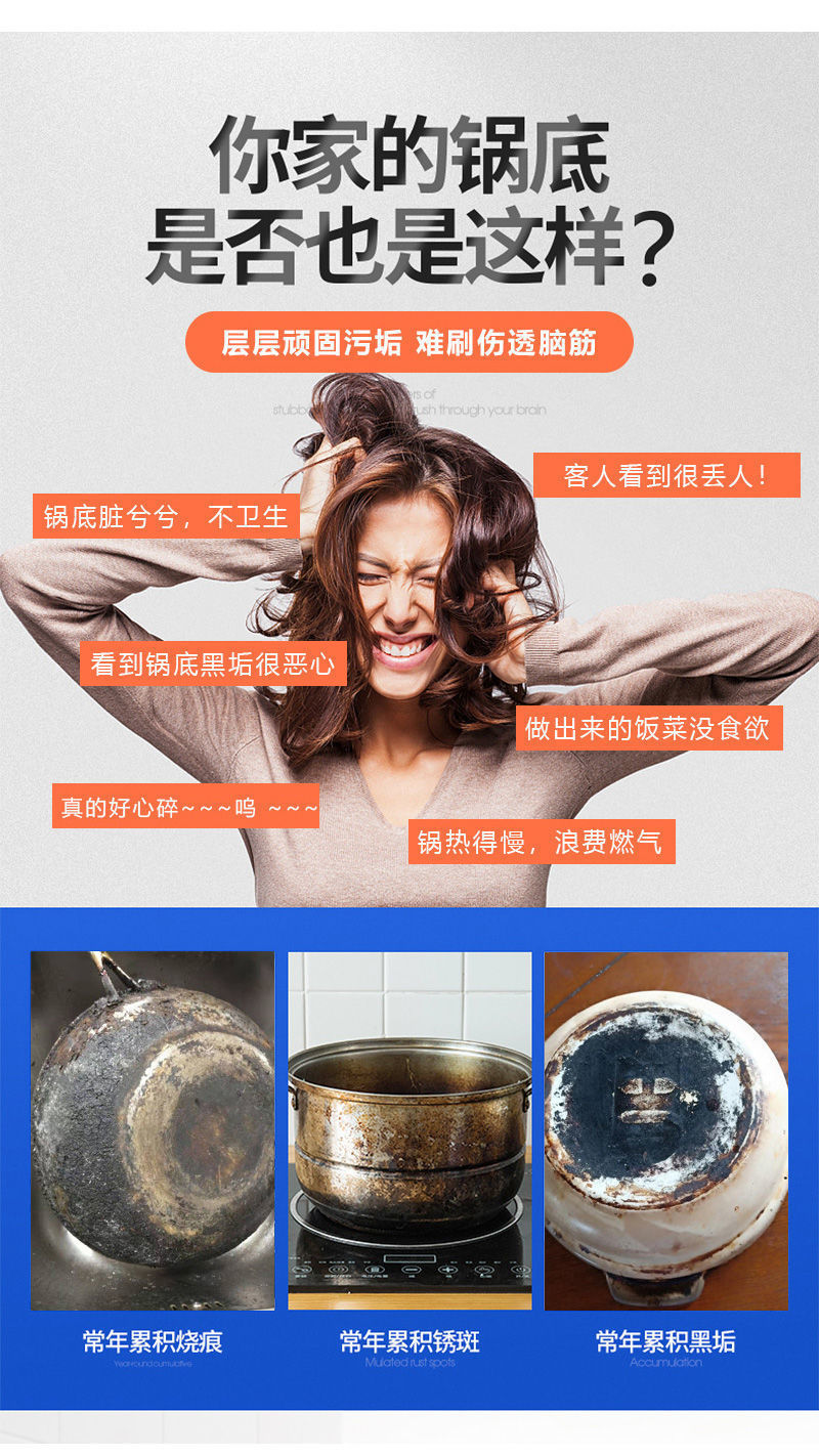 냄비 바닥 검은 비늘 청소기 강한 오염 제거 스테인레스 스틸 냄비 검은 코크스 descaling 중유 청소 아티팩트 배치를 제거하기 위해스토어 가기