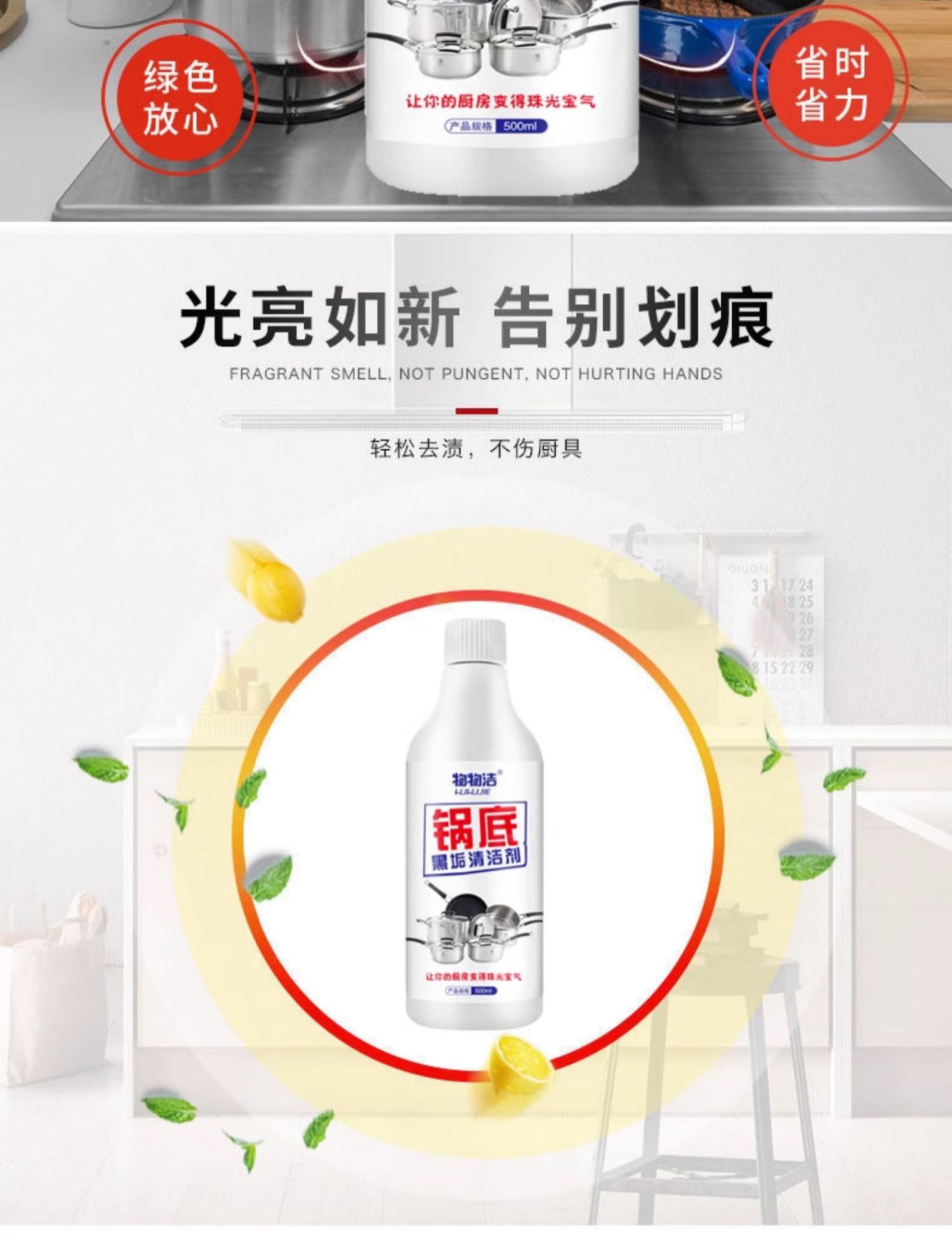 • 냄비 바닥 블랙 스케일 클리너 500ml*2병(전체 세트에는 노즐 포함)