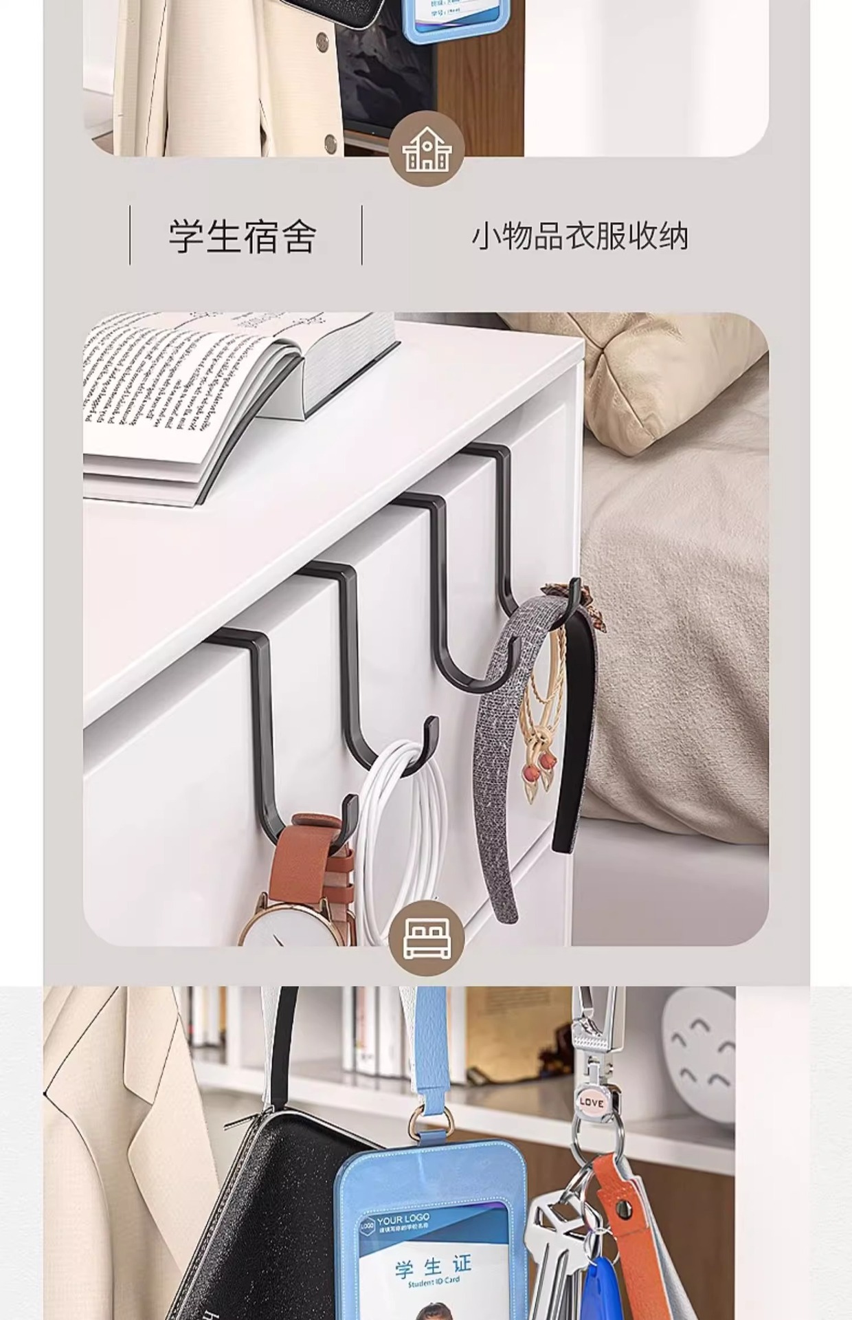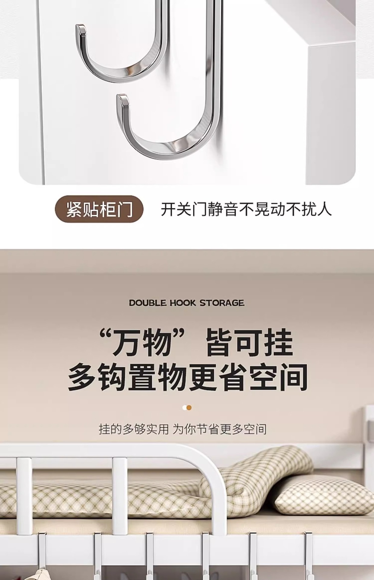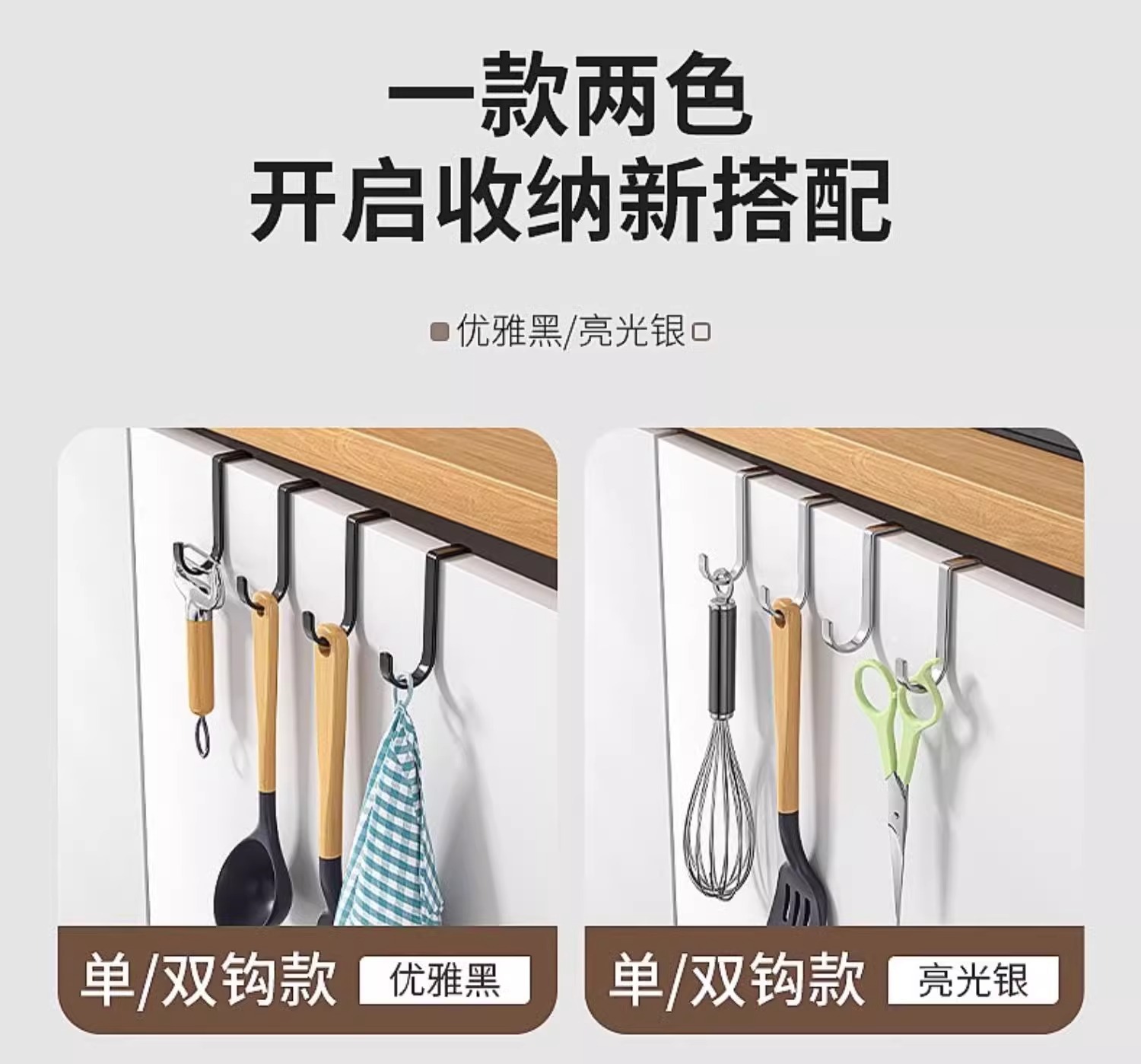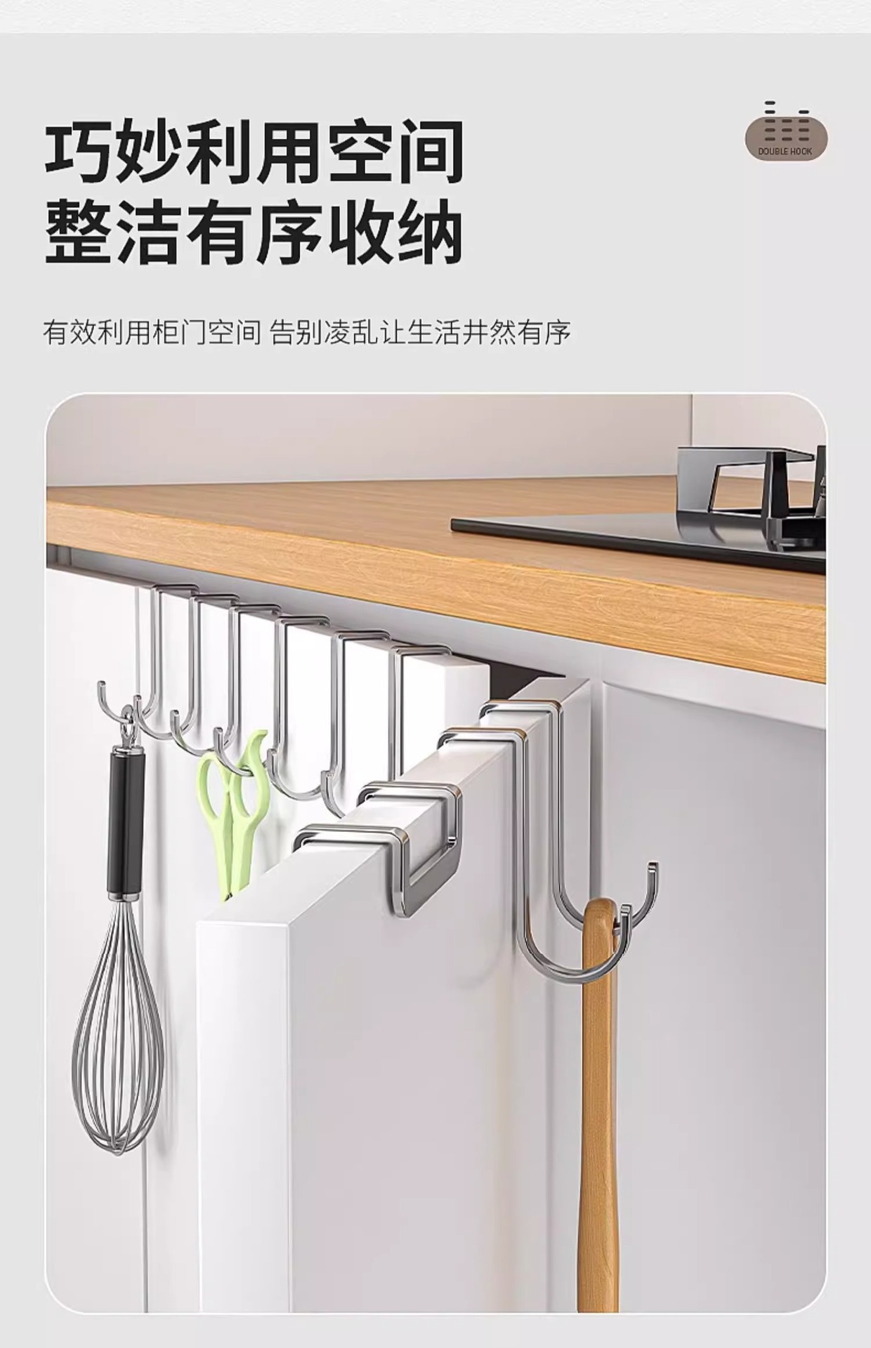 두꺼운 스테인리스 스틸 S자형 후크, 무타공 강력 하중 지지, 문 뒤 다용도 캐비닛 도어 수납용 이중 후크 걸이