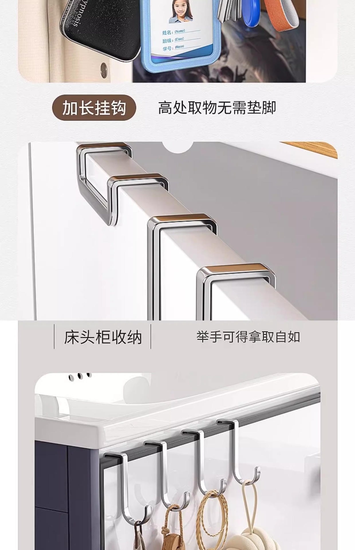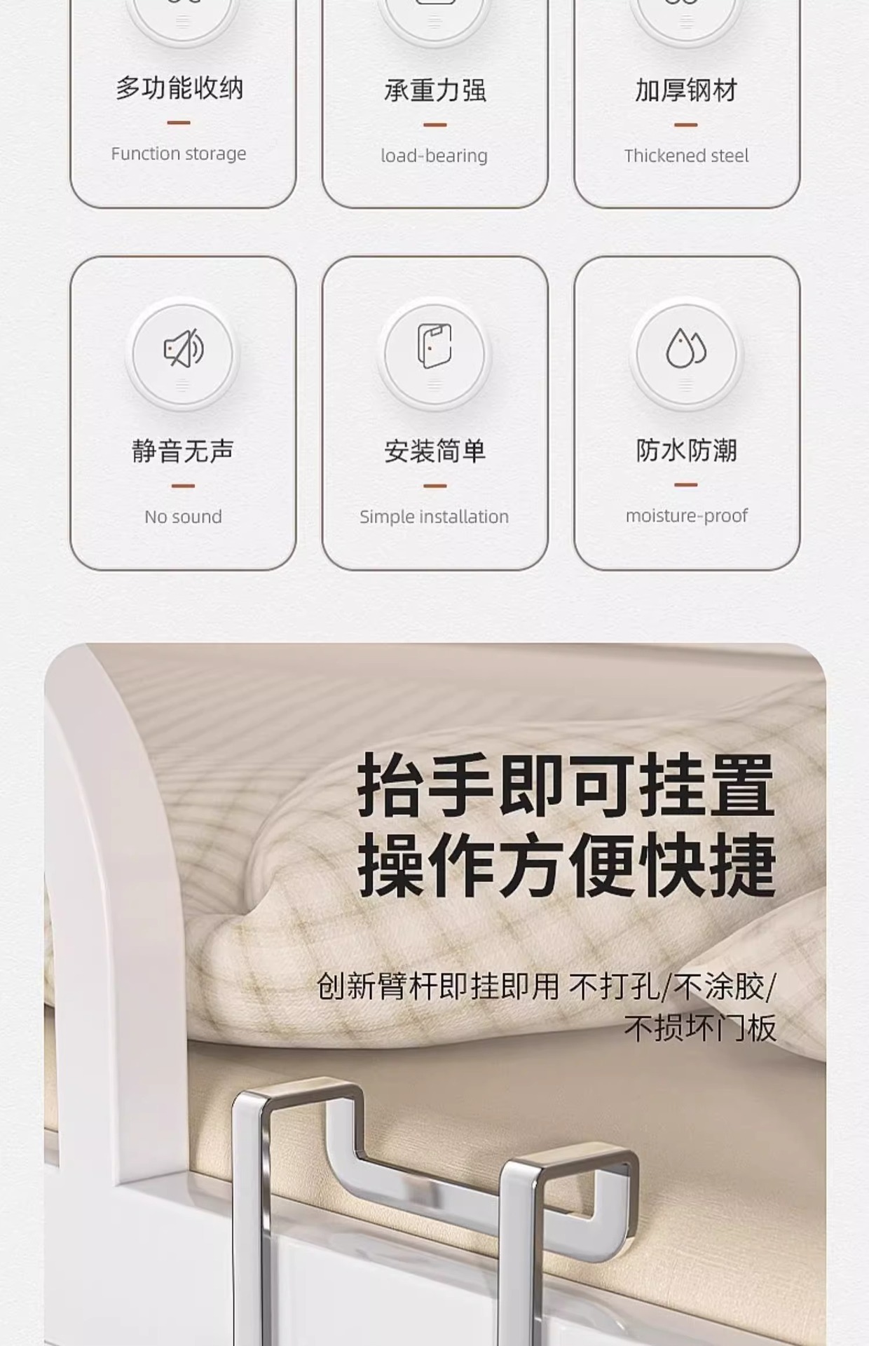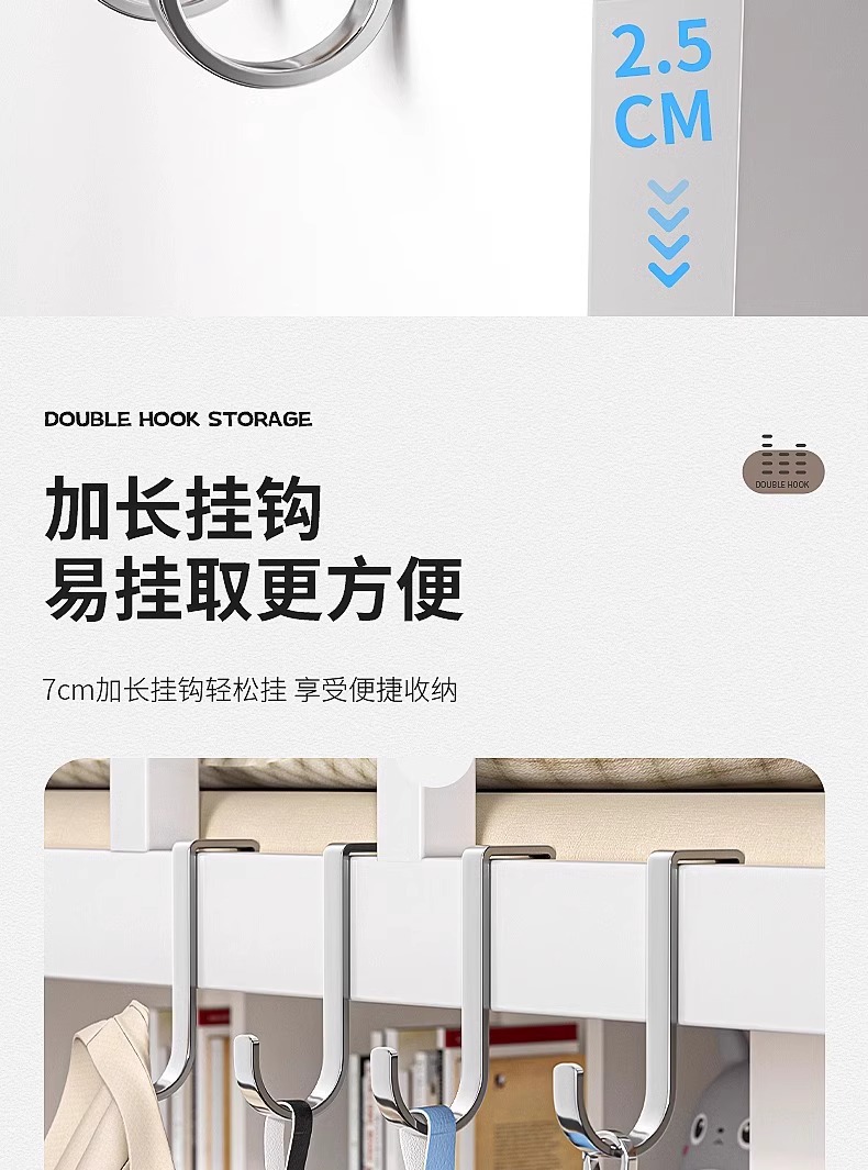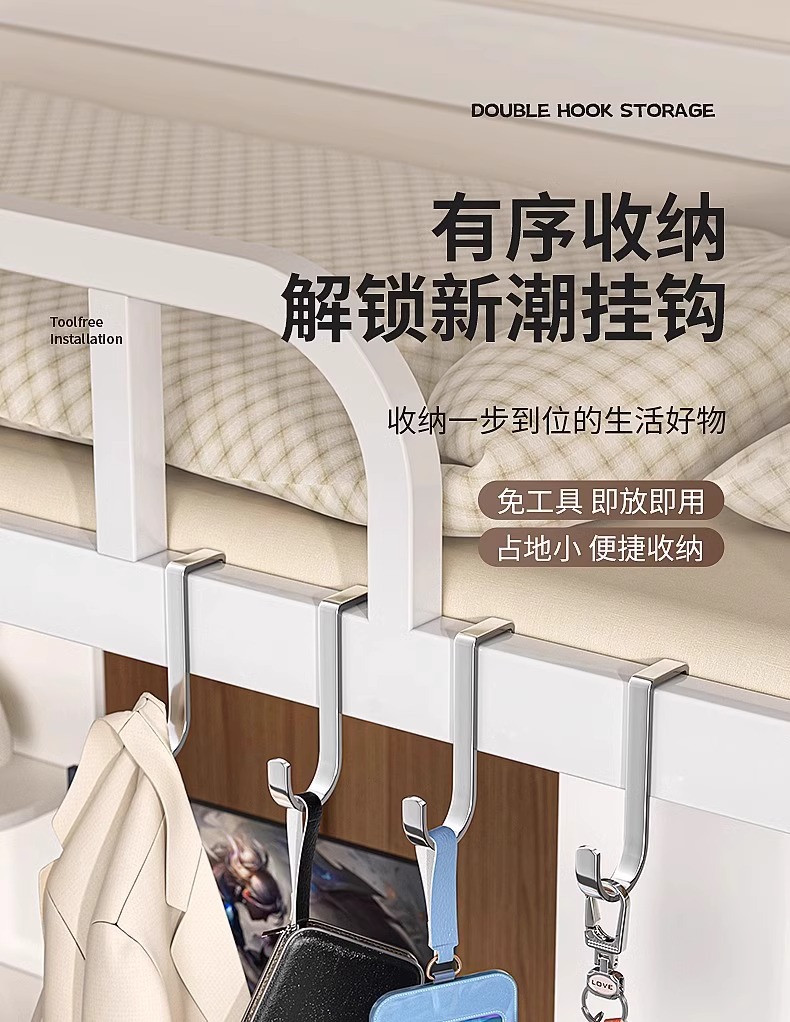 두꺼운 스테인리스 스틸 S자형 후크, 무타공 강력 하중 지지, 문 뒤 다용도 캐비닛 도어 수납용 이중 후크 걸이
