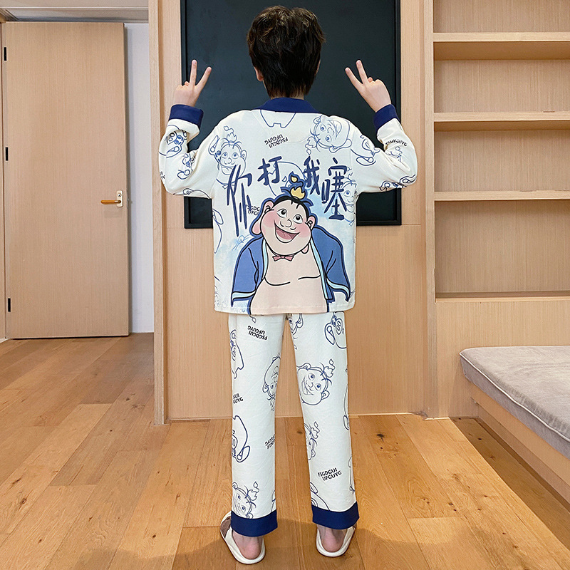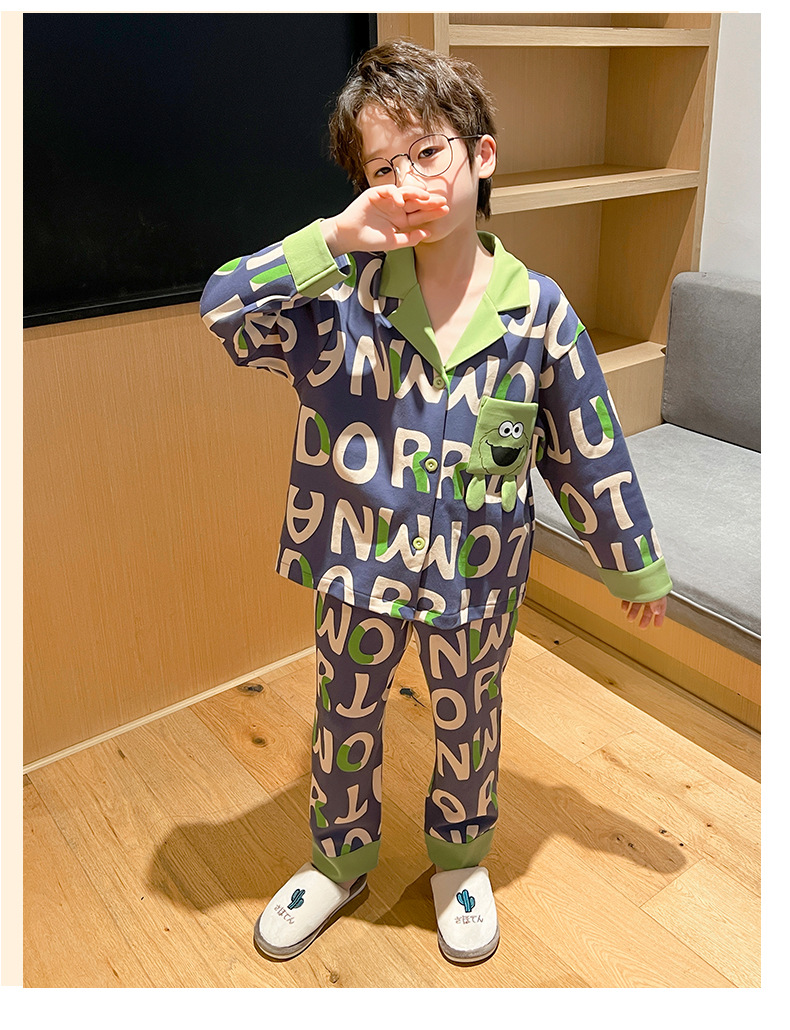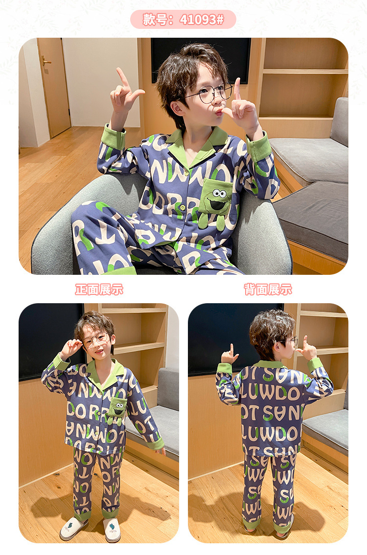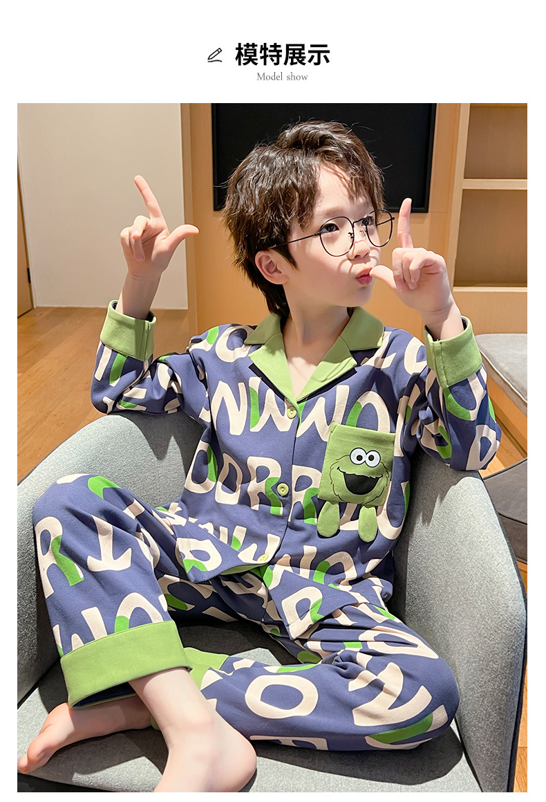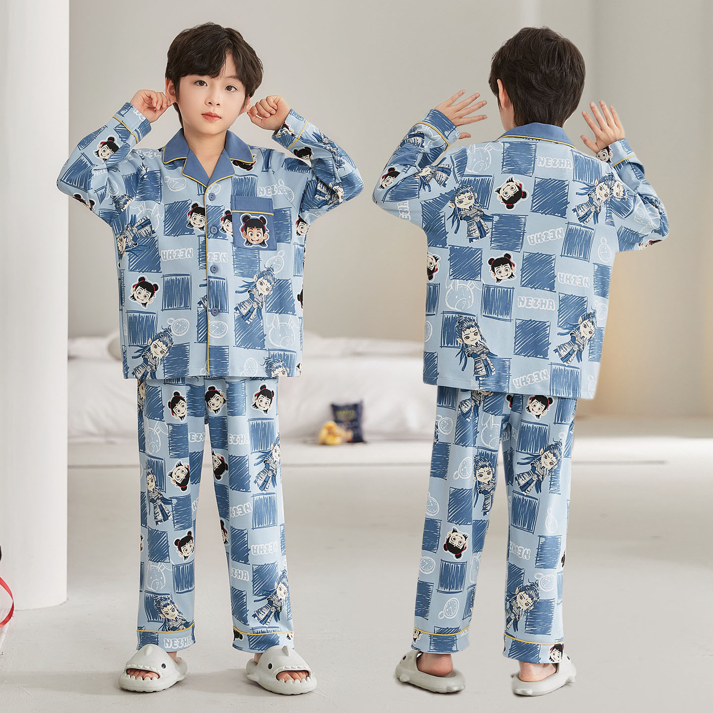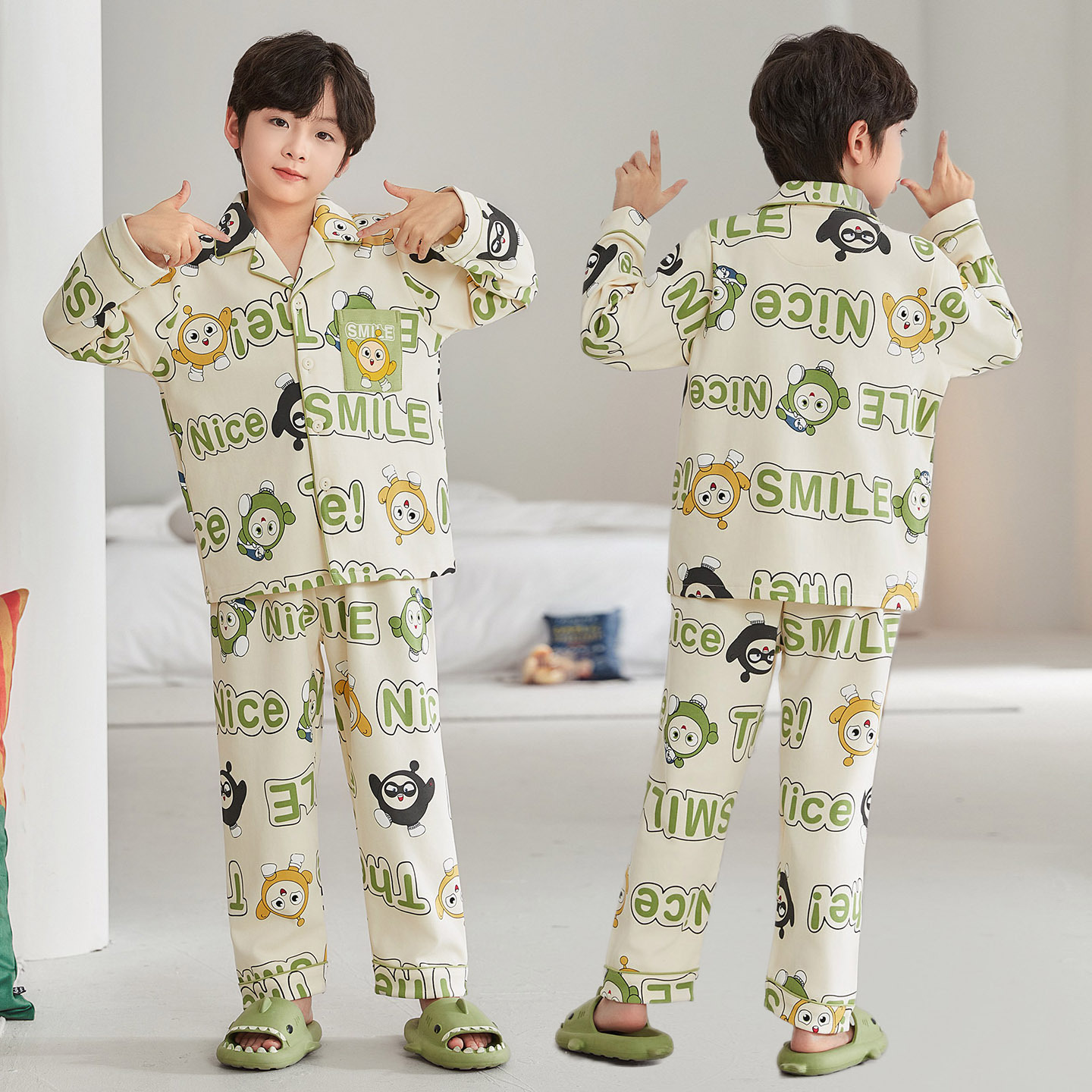 2025 새로운 어린이 잠옷 봄과 가을 소년 순면 긴팔 중대형 어린이 및 청소년 소년 가정 의류 여름스토어 가기