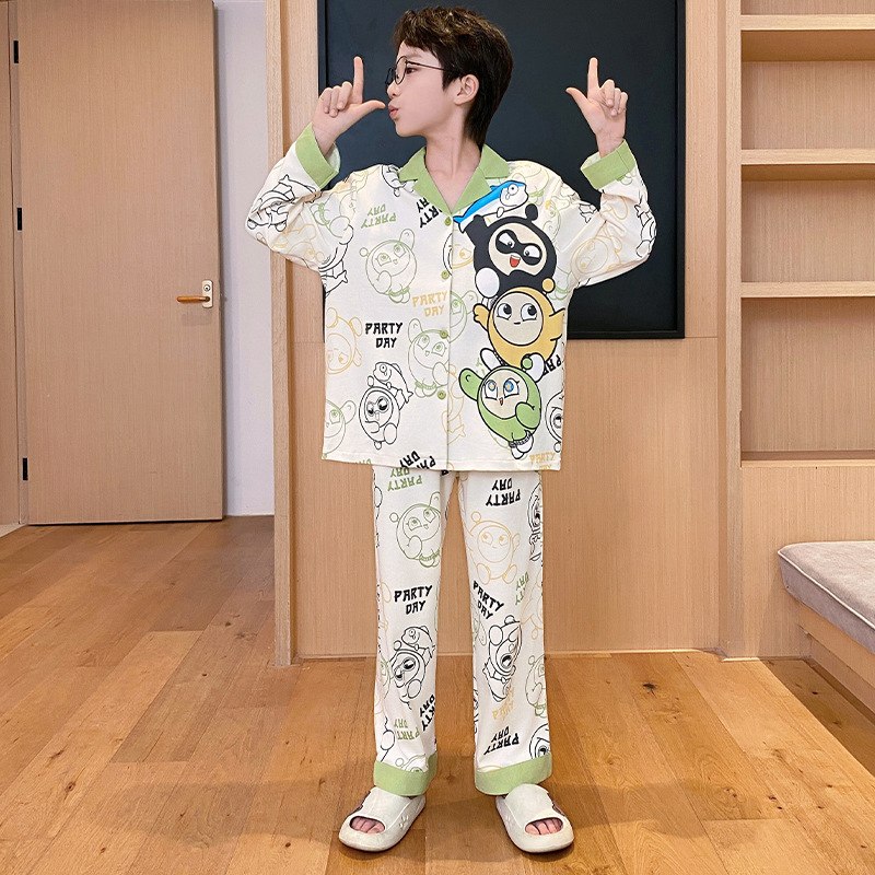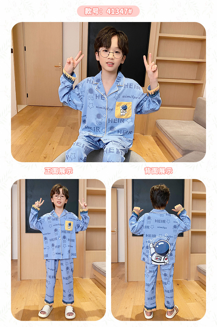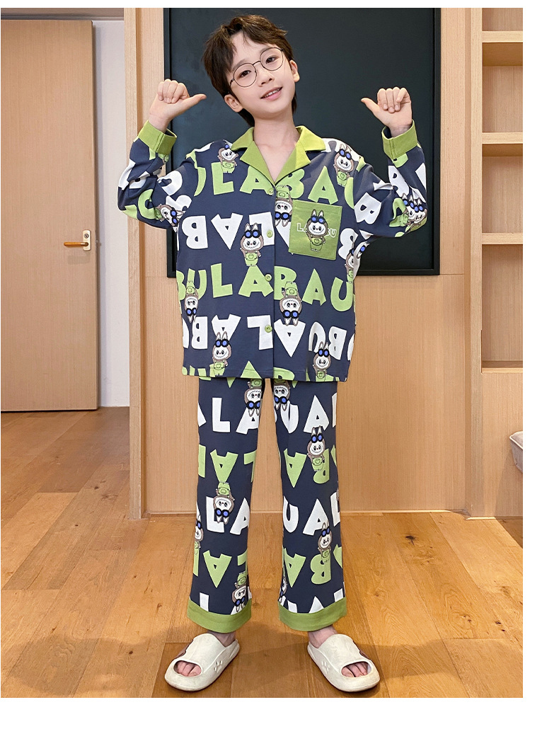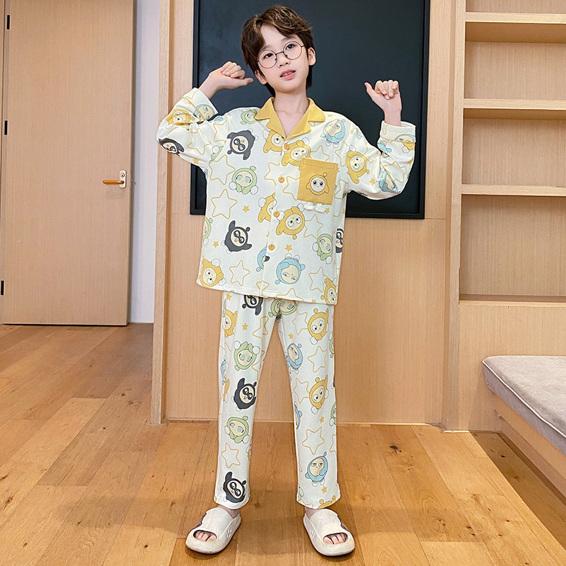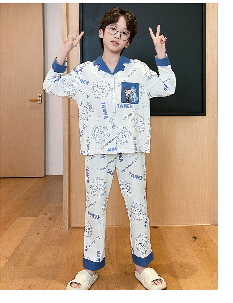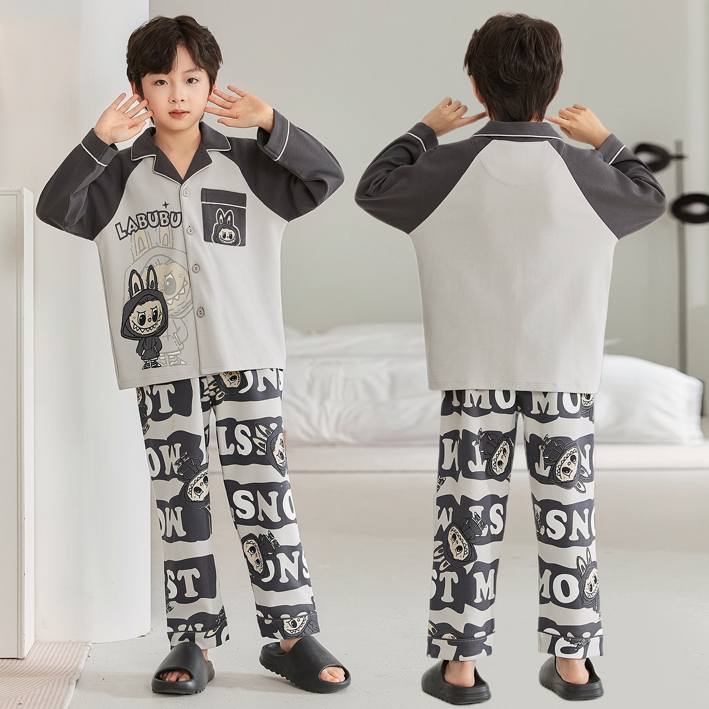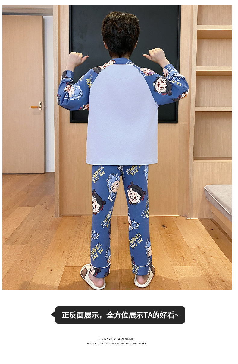 2025 새로운 어린이 잠옷 봄과 가을 소년 순면 긴팔 중대형 어린이 및 청소년 소년 가정 의류 여름스토어 가기
