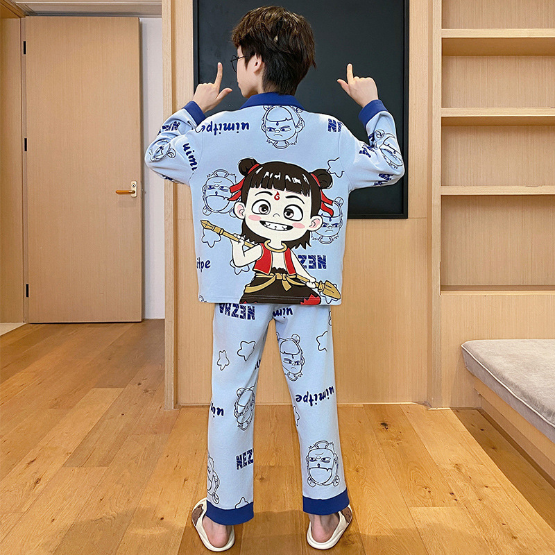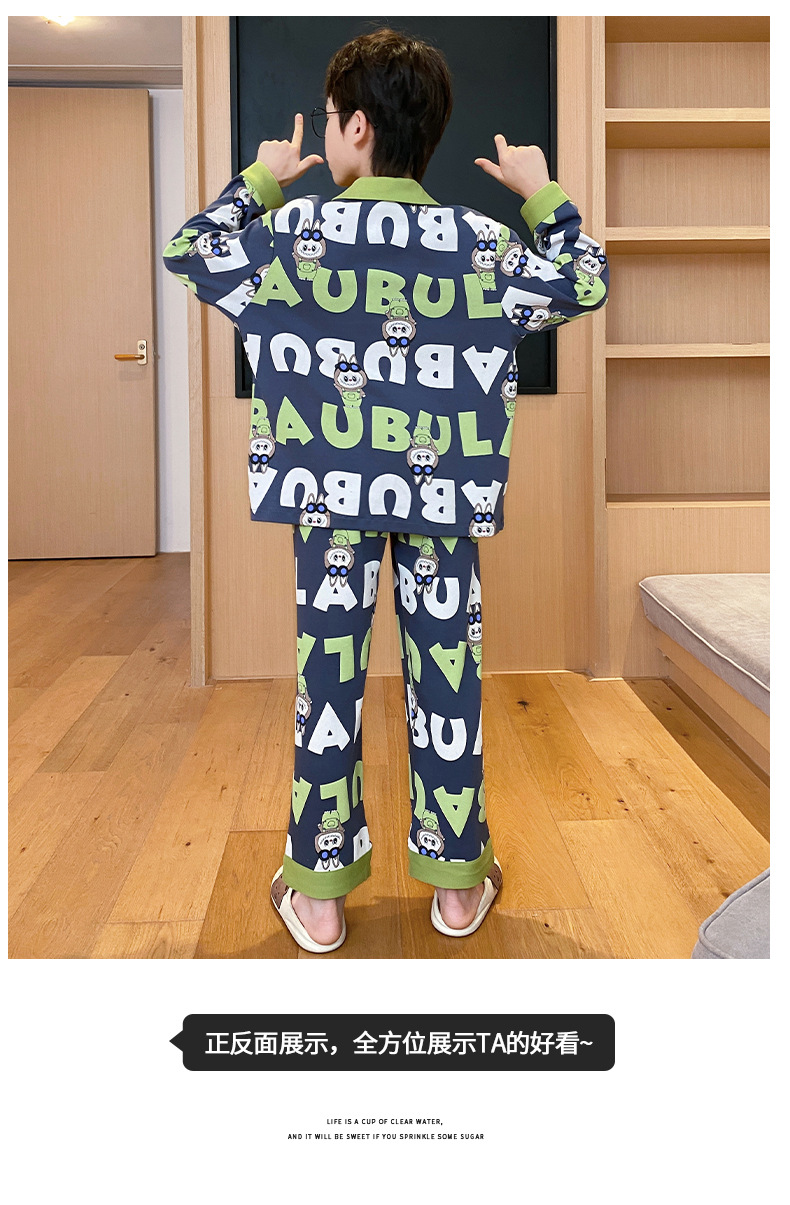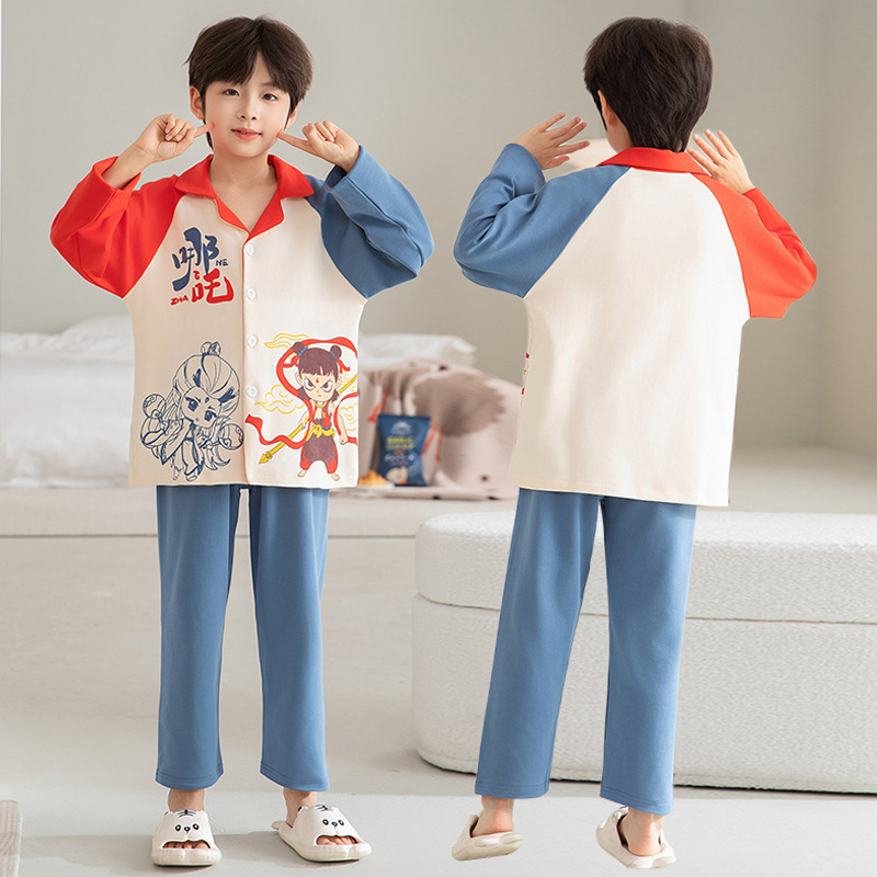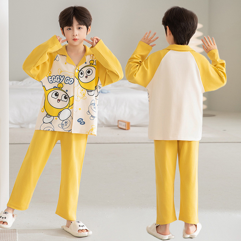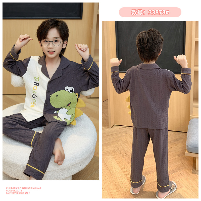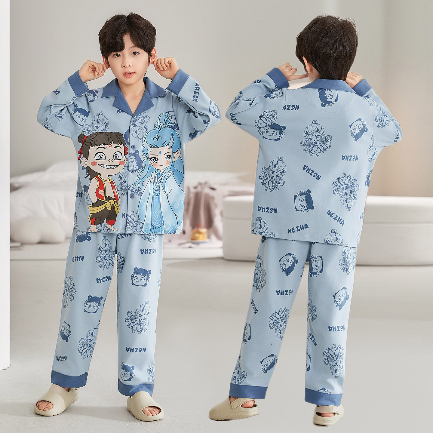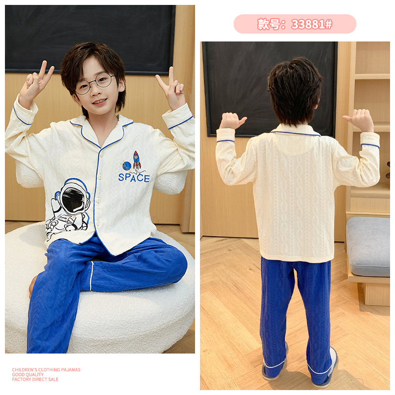 2025 새로운 어린이 잠옷 봄과 가을 소년 순면 긴팔 중대형 어린이 및 청소년 소년 가정 의류 여름스토어 가기