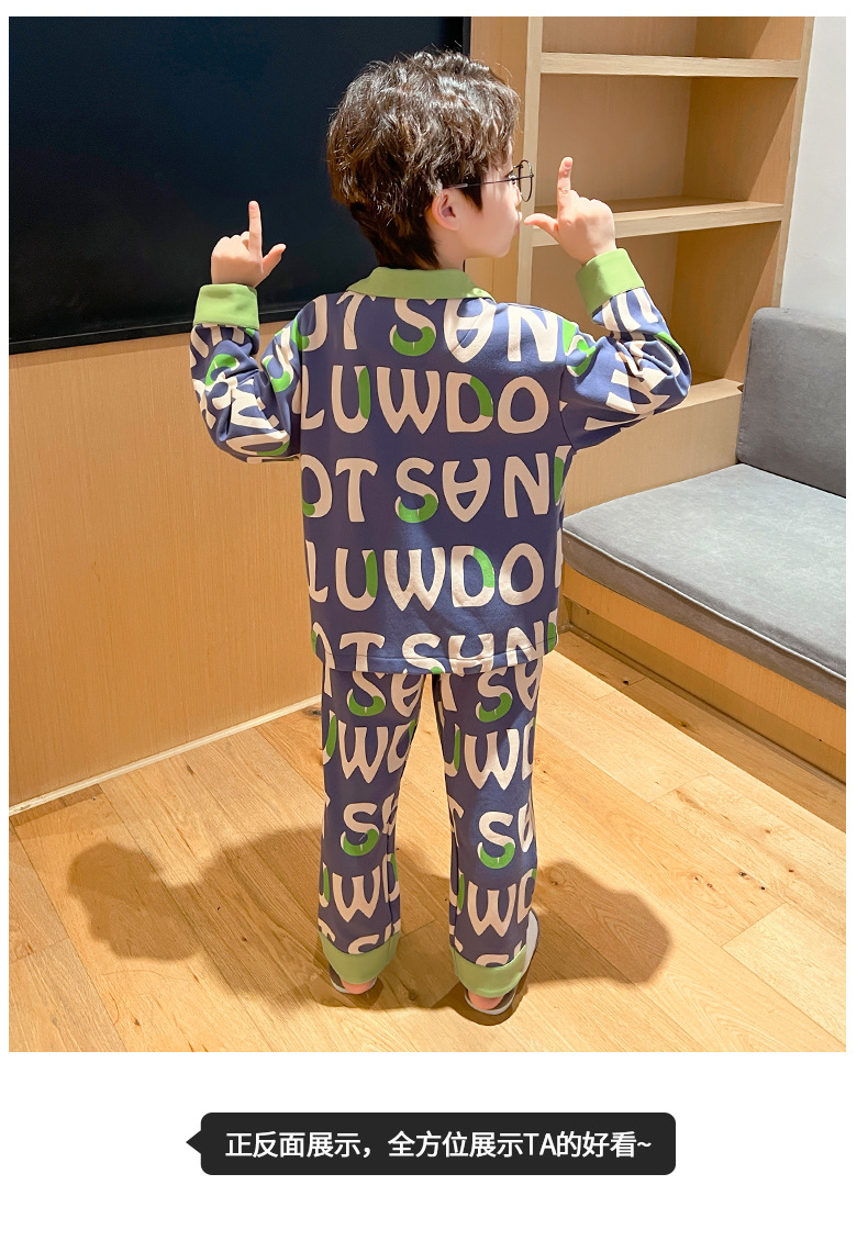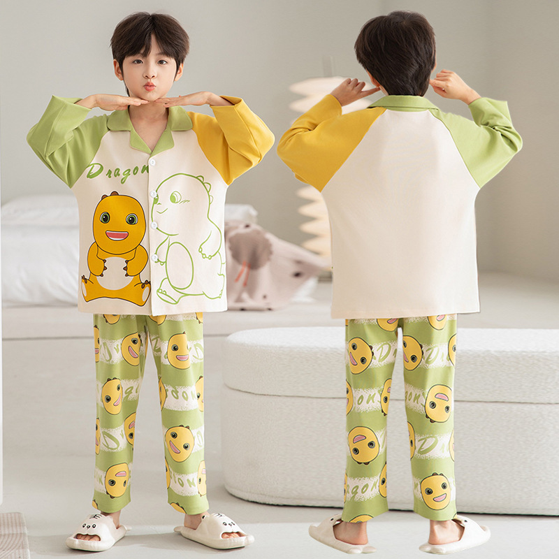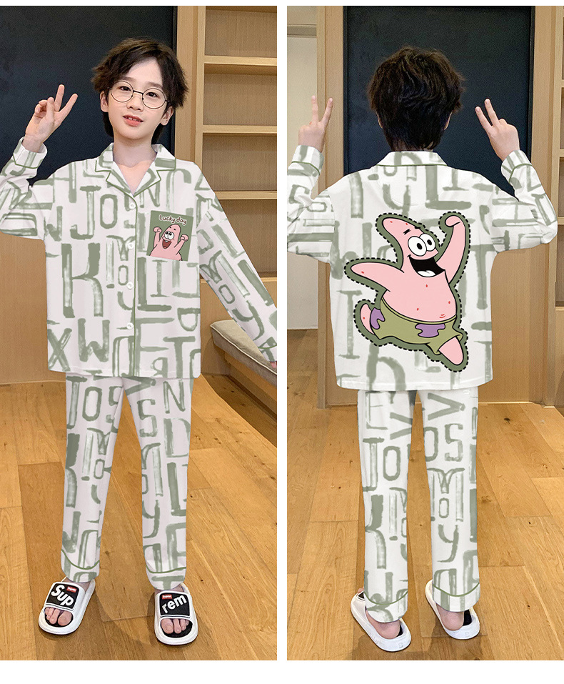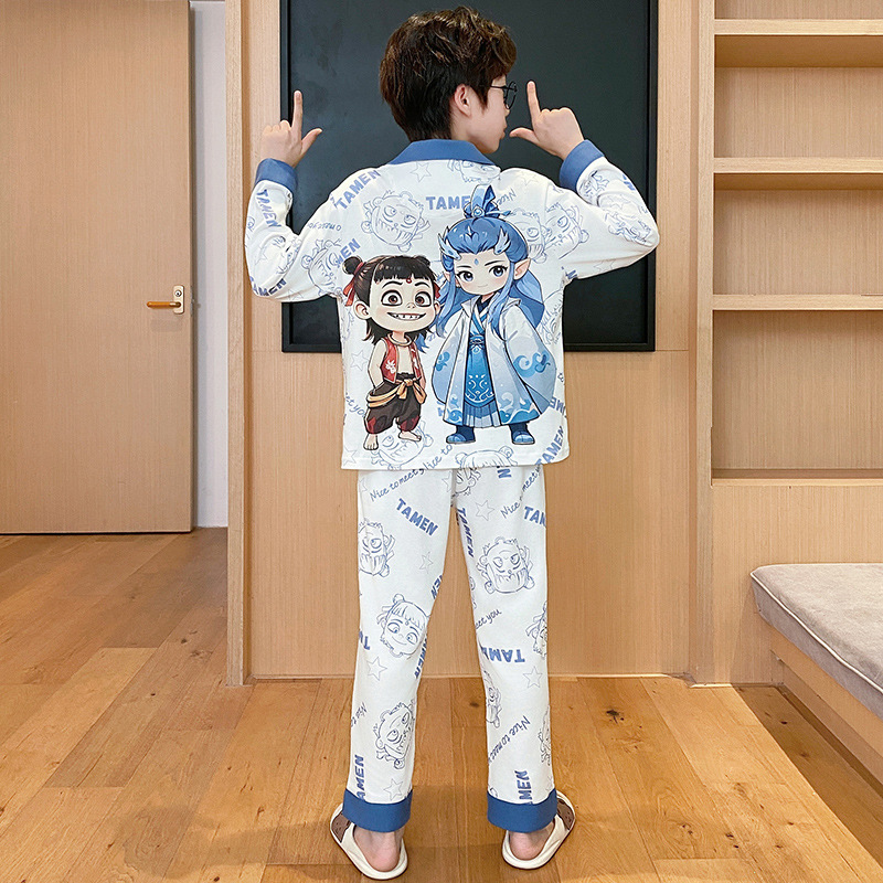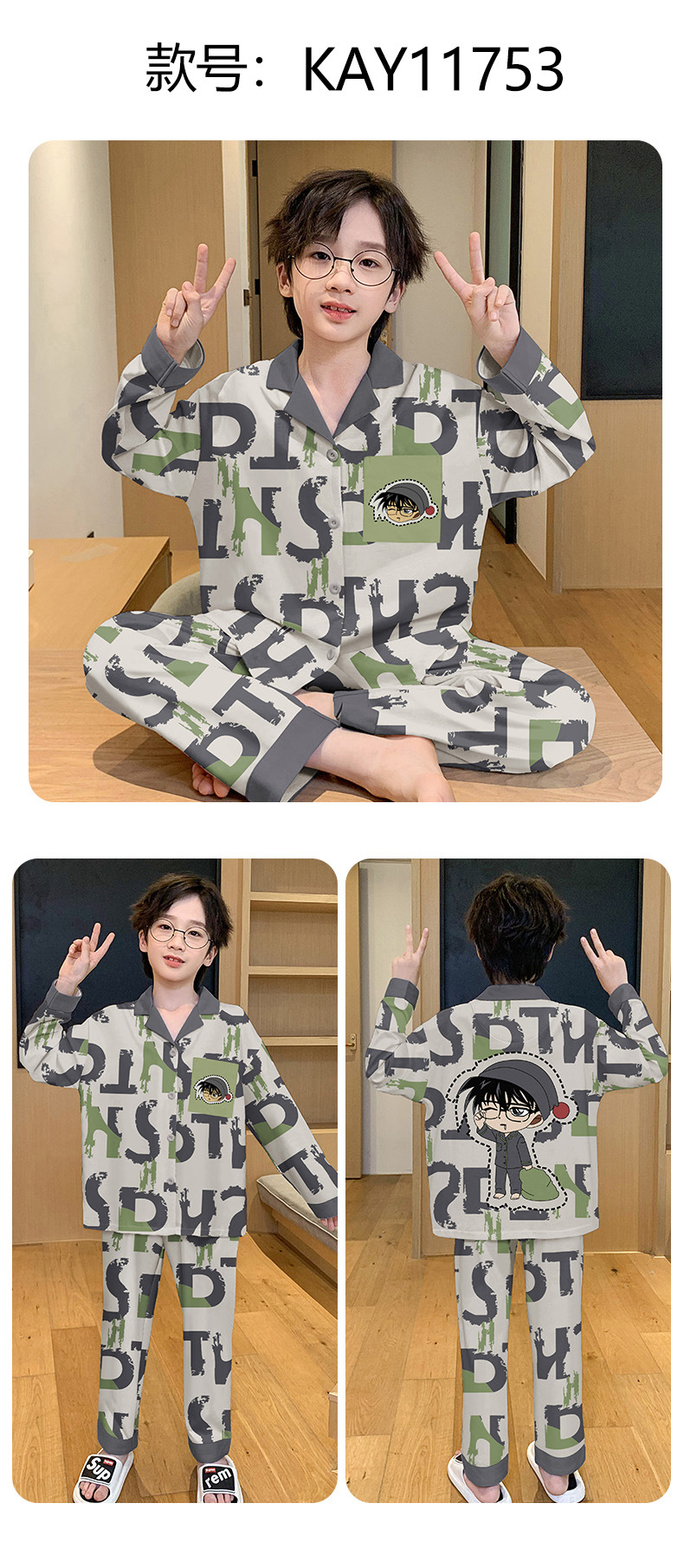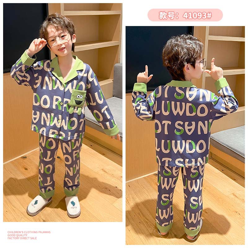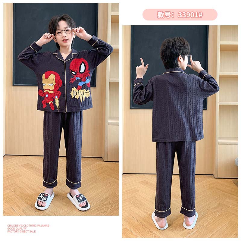2025 새로운 어린이 잠옷 봄과 가을 소년 순면 긴팔 중대형 어린이 및 청소년 소년 가정 의류 여름스토어 가기